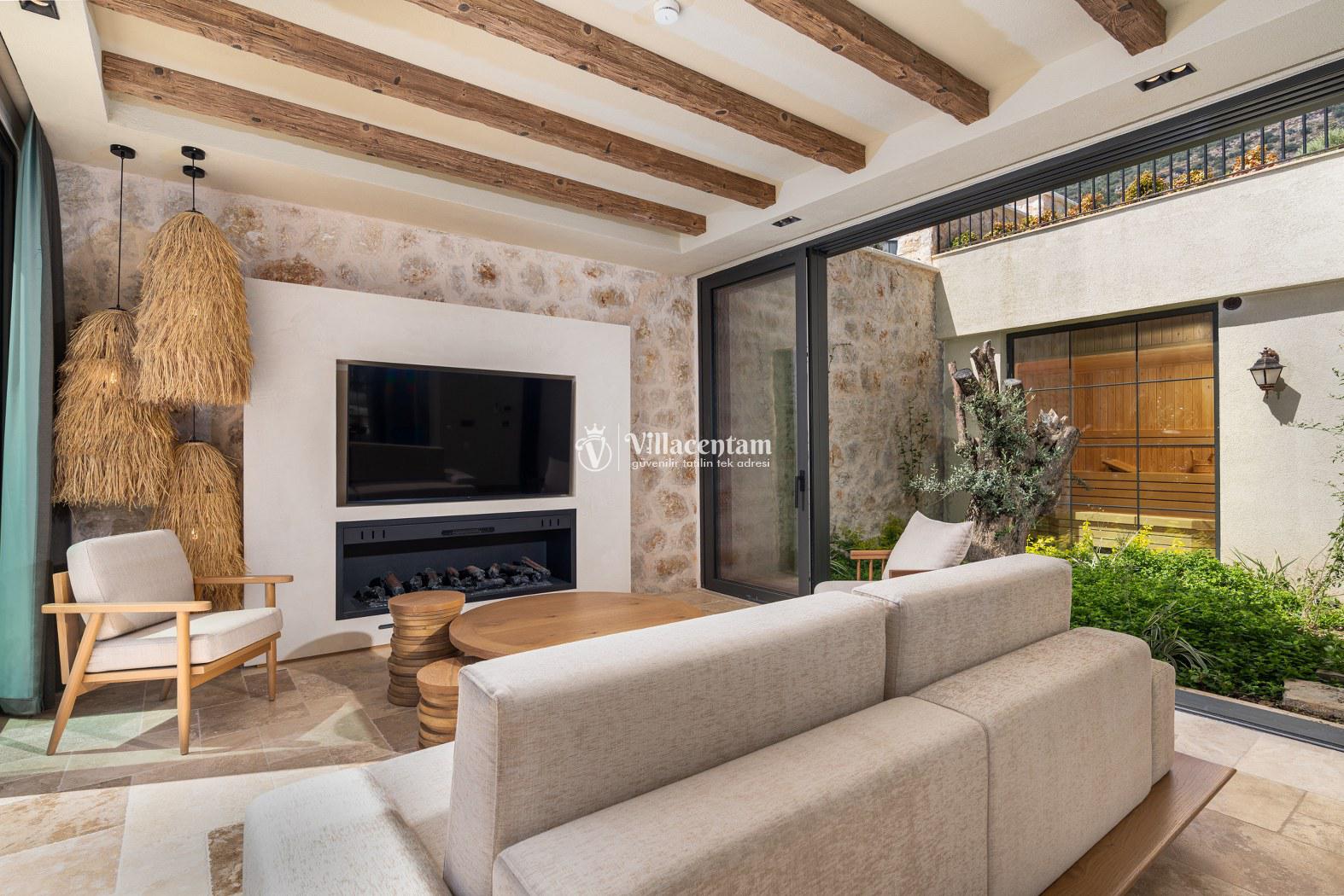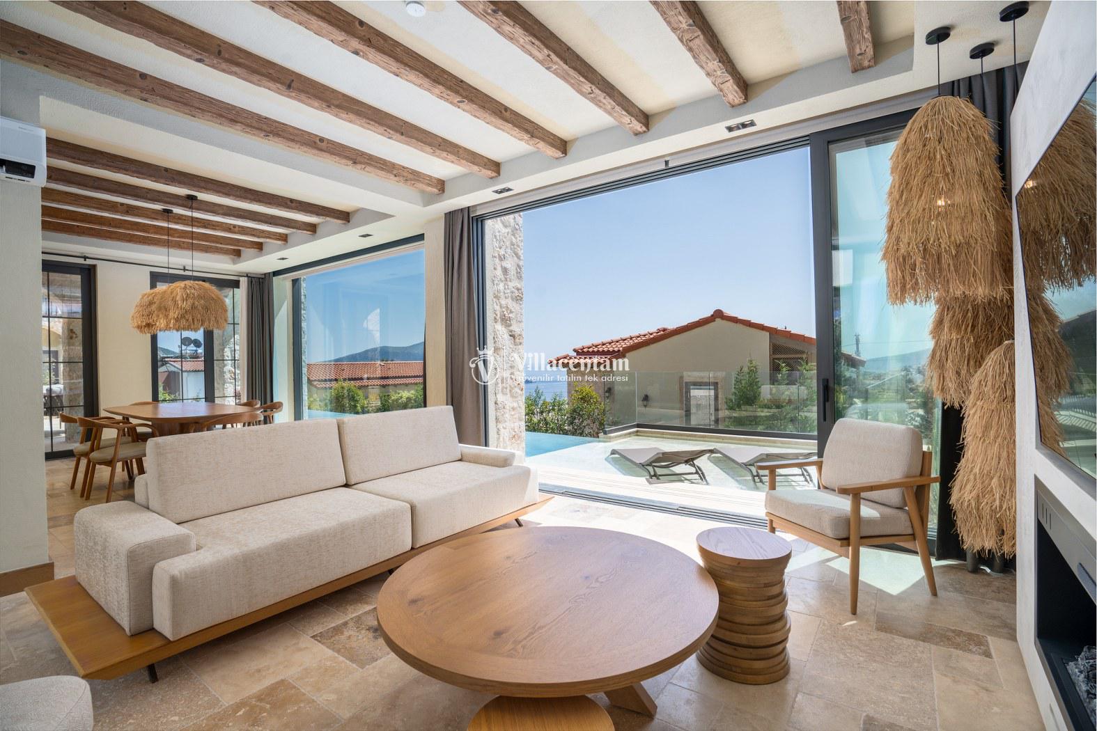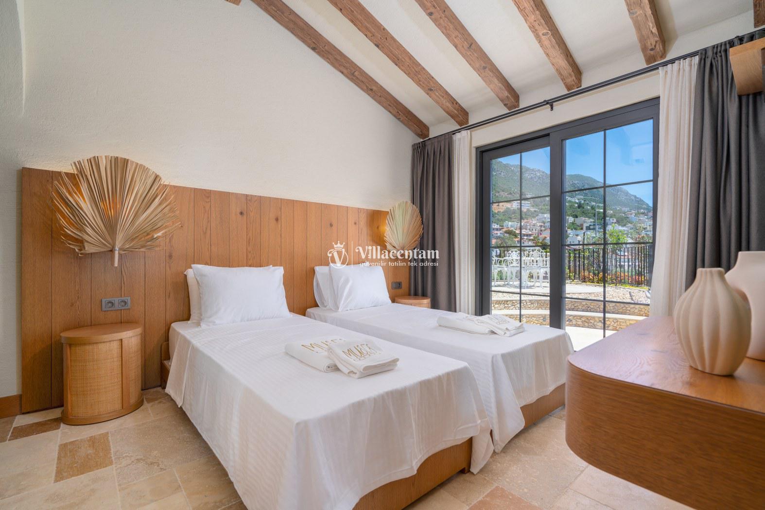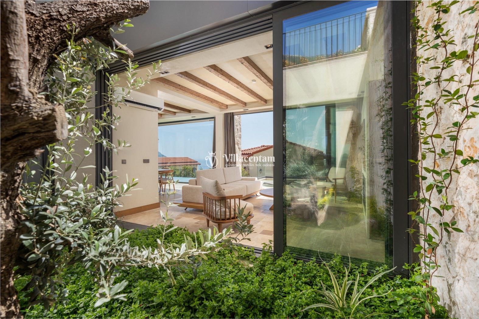 Villa Calliope, Kalkan Kızıltaş bölgesinde konumlanan, eşsiz deniz ve doğa manzarasına sahip lüks bir tatil villasıdır. 3 yatak odası, 4 banyosu ve 6 kişi konaklama kapasitesiyle aileler ve arkadaş grupları için konforlu bir tatil imkânı sunar. Modern mimarisi, geniş yaşam alanları, tam donanımlı mutfağı, özel havuzu, küveti ve keyifli veranda alanı ile misafirlerine ayrıcalıklı bir konaklama deneyimi yaşatır. Şehir merkezine yakın konumu sayesinde hem huzurlu hem de ulaşımı kolay bir tatil arayanlar için ideal bir seçenektir.