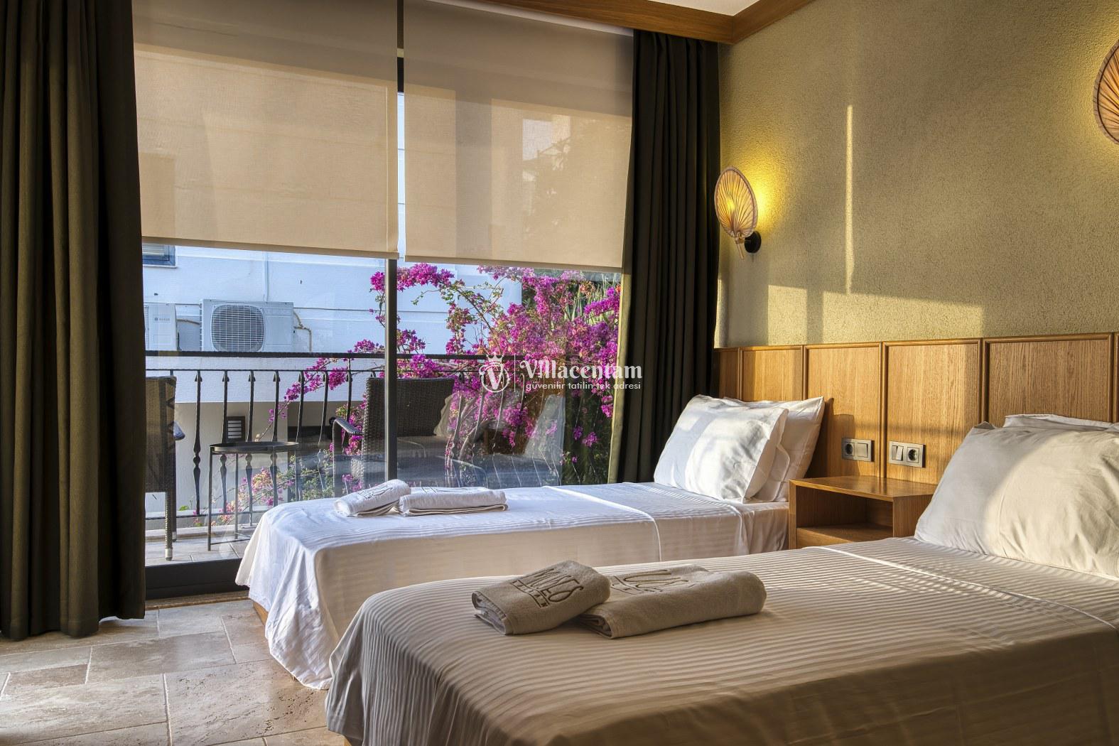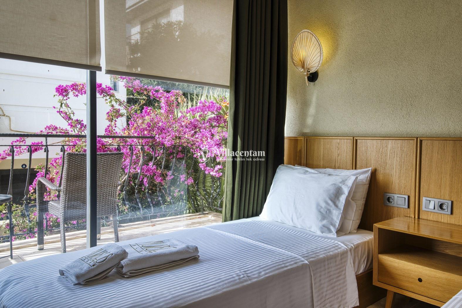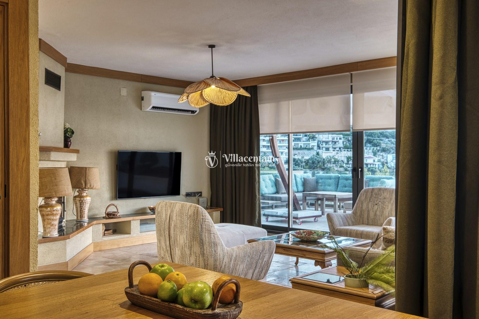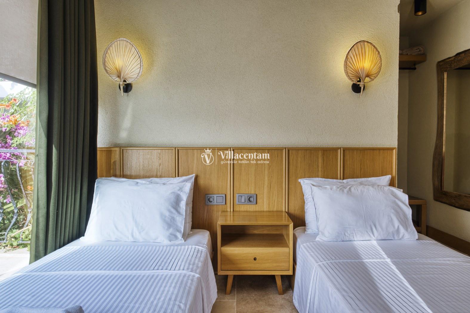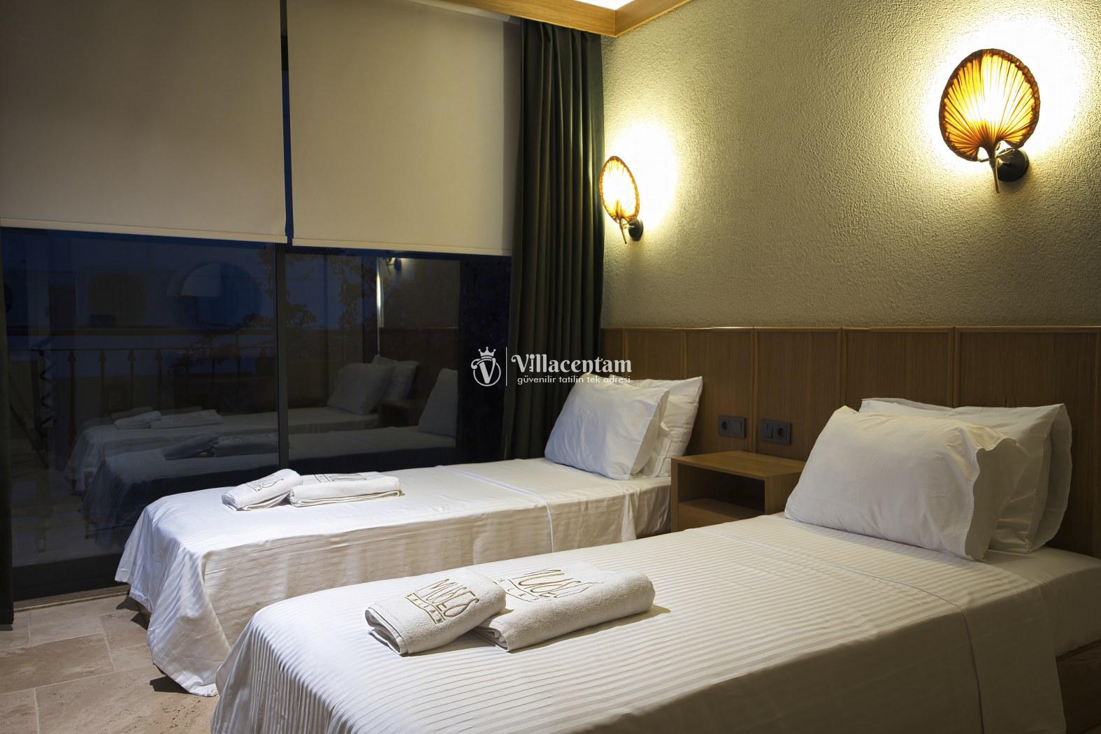 *Villalarda sıcak su için güneş enerjili su ısıtma sistemleri kullanılmaktadır. Çok yoğun sıcak su kullanımında, yoğunluğa ve su tankının büyüklüğüne bağlı olarak su tankında sıcak su tükenebilmekte ve tekrar suyun ısınması için belirli bir süre geçmesi gerekmektedir. Bu not sadece bu villa ile ilgili değil, tüm villalarımız için geçerli bir durumdur.