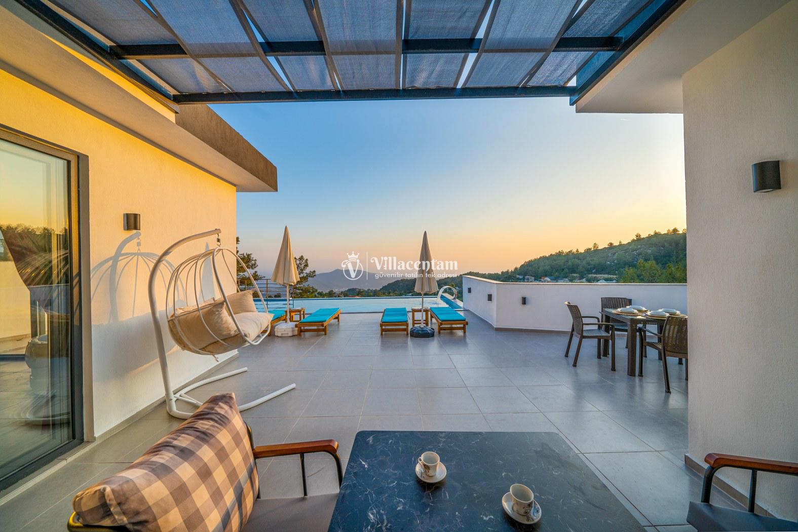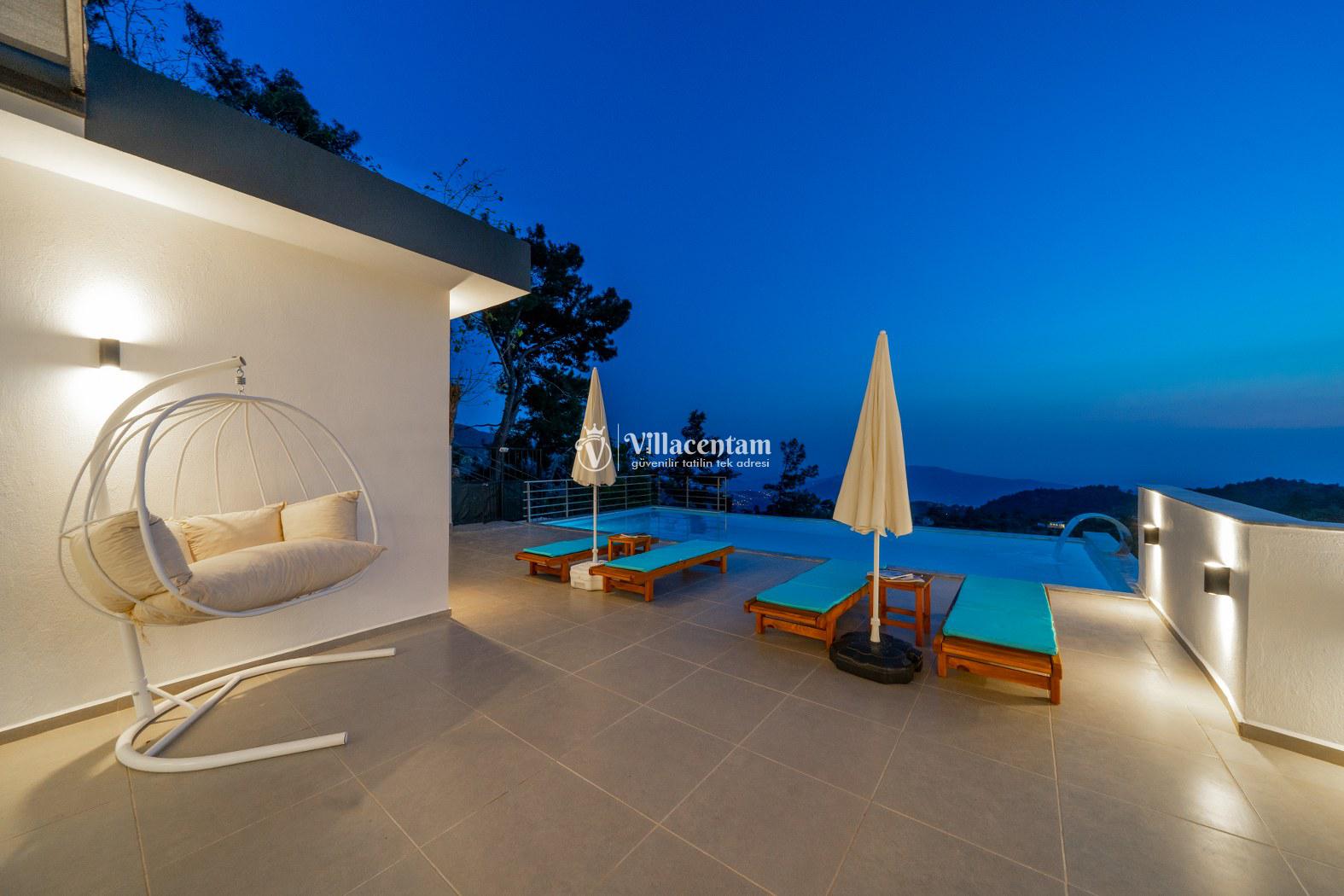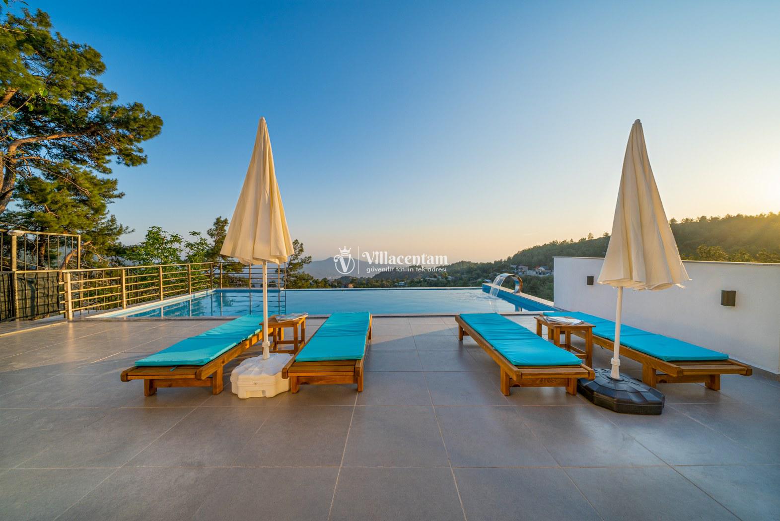 Dış alanda yer alan özel yüzme havuzu ve havuz terası, şezlonglar, barbekü ve oturma grubu gibi donanımlarla tatilinizi dış mekânda da keyifli hale getirir. Korunaklı havuz alanı sayesinde mahremiyet ön plandadır ve doğa manzarası eşliğinde dinlenme imkânı sunar.