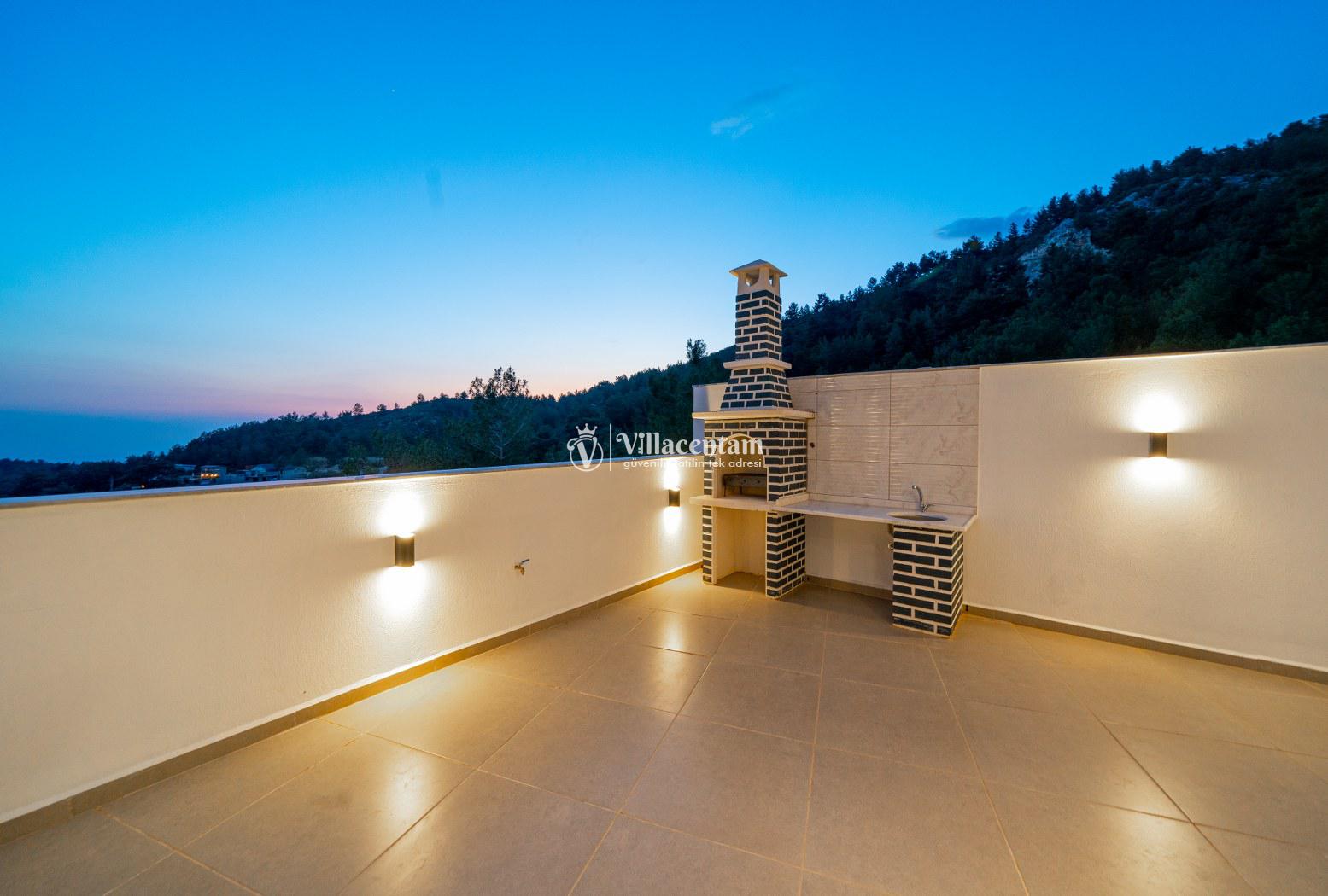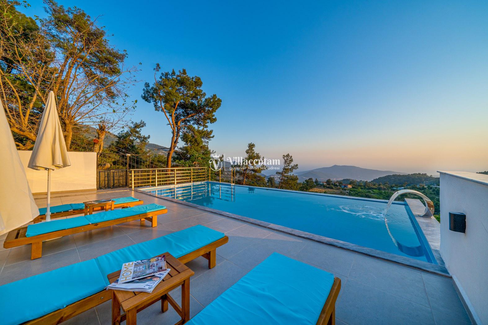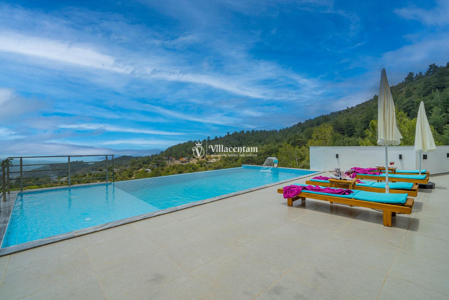 Dış alanda yer alan özel yüzme havuzu ve havuz terası, şezlonglar, barbekü ve oturma grubu gibi donanımlarla tatilinizi dış mekânda da keyifli hale getirir. Korunaklı havuz alanı sayesinde mahremiyet ön plandadır ve doğa manzarası eşliğinde dinlenme imkânı sunar.