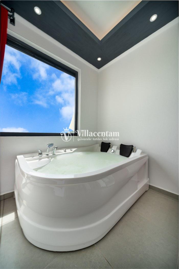 *Villalarda sıcak su için güneş enerjili su ısıtma sistemleri kullanılmaktadır. Çok yoğun sıcak su kullanımında, yoğunluğa ve su tankının büyüklüğüne bağlı olarak su tankında sıcak su tükenebilmekte ve tekrar suyun ısınması için belirli bir süre geçmesi gerekmektedir. Bu not sadece bu villa ile ilgili değil, tüm villalarımız için geçerli bir durumdur.