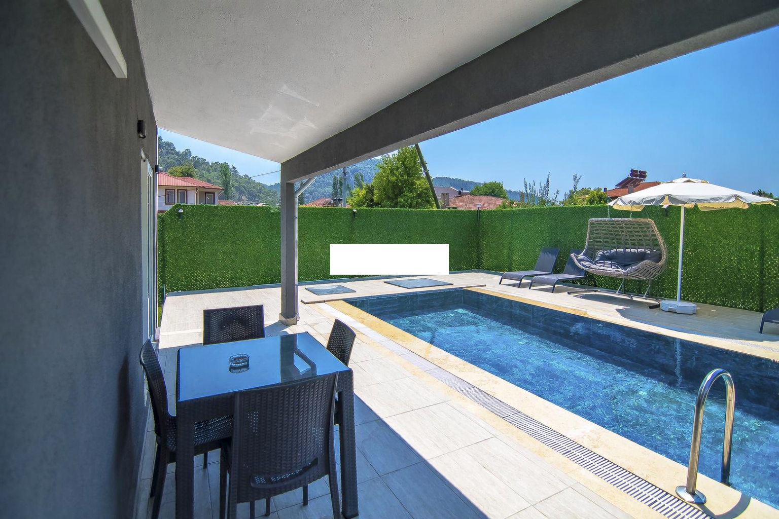 Dış mekânda yer alan özel yüzme havuzu ve geniş bahçe terası, hem dinlenmek hem de eğlenceli anlar yaşamak için mükemmel bir ortam sunar. Havuz çevresindeki şezlong ve barbekü alanı sayesinde tatiliniz boyunca açık havada konforlu vakit geçirebilirsiniz.