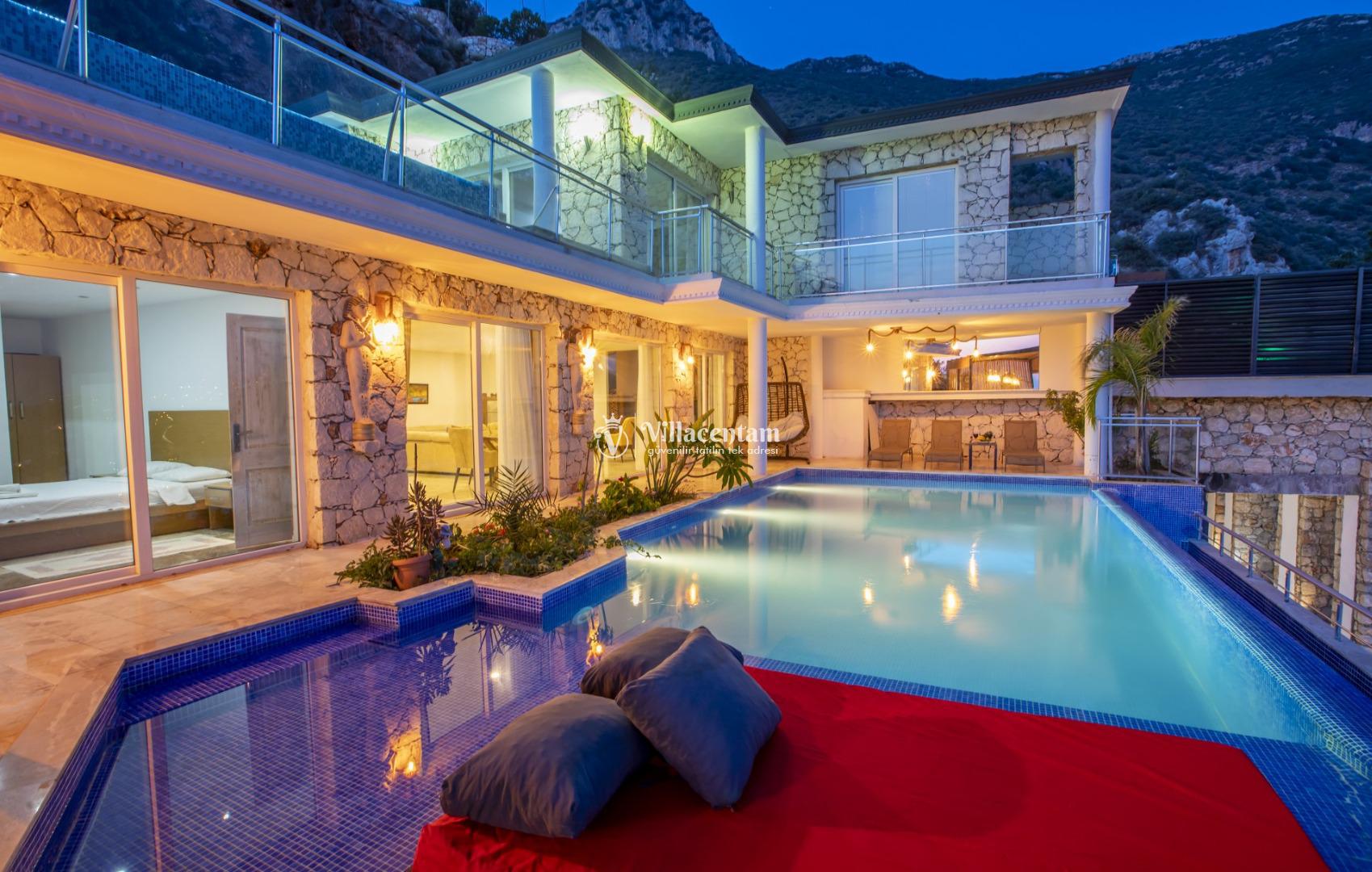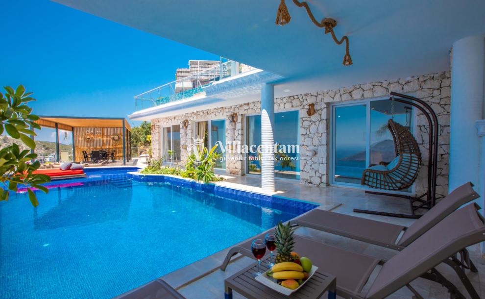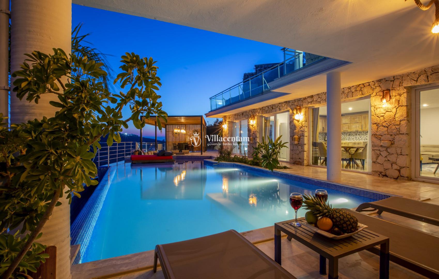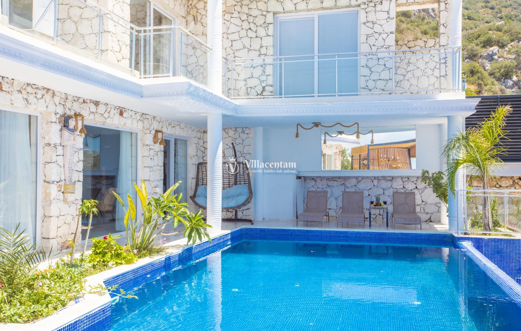 Villa Çırağan, Kalkan Akbel mevkiinde konumlanmakta olan deniz manzarasına hakim kiralık villalarımız arasında yer almaktadır. Yazlık villamızda 4 adet yatak odası bulunmakta olup, 8 kişiye konaklama imkanı sağlamaktadır. Geniş aileler ve kalabalık arkadaş grupları rahatlıkla tercih edebilirler. Ferah ve donanımlı bir havuz terasına sahip kiralık villamızda sevdiklerinizle birlikte havuzunuzda keyif yapabilir, yeme ve içmenizi en güzel hale getirebilirsiniz.
