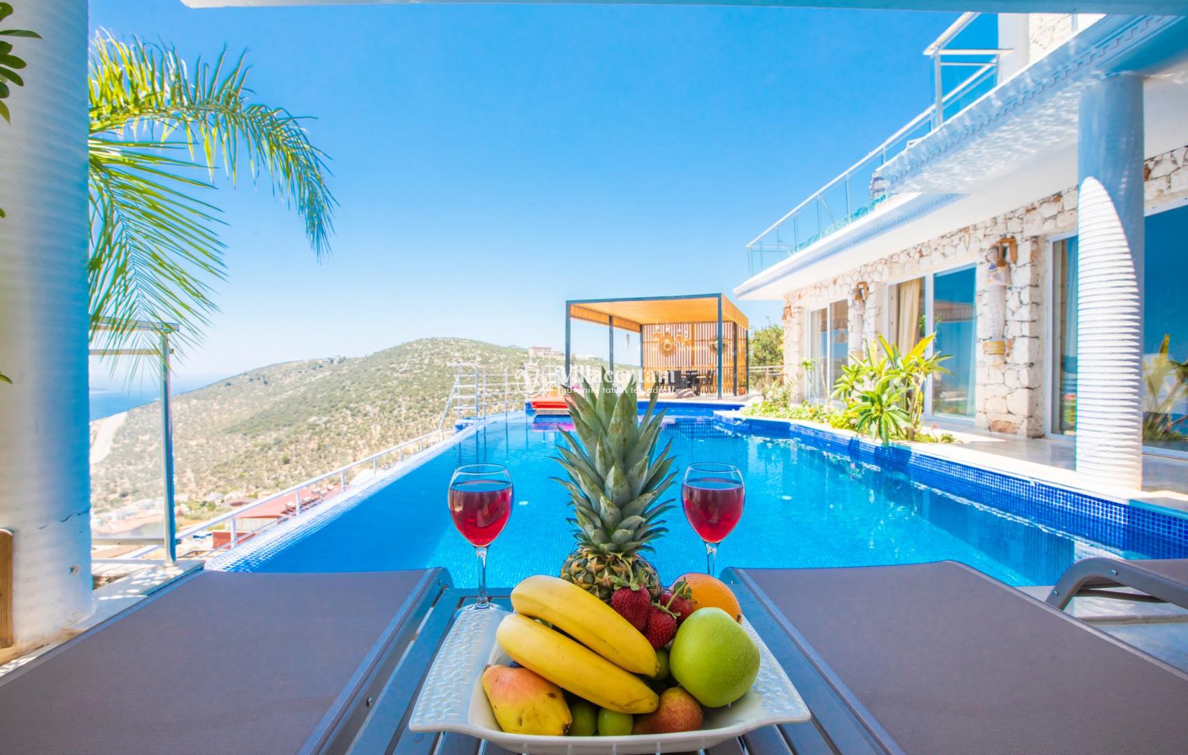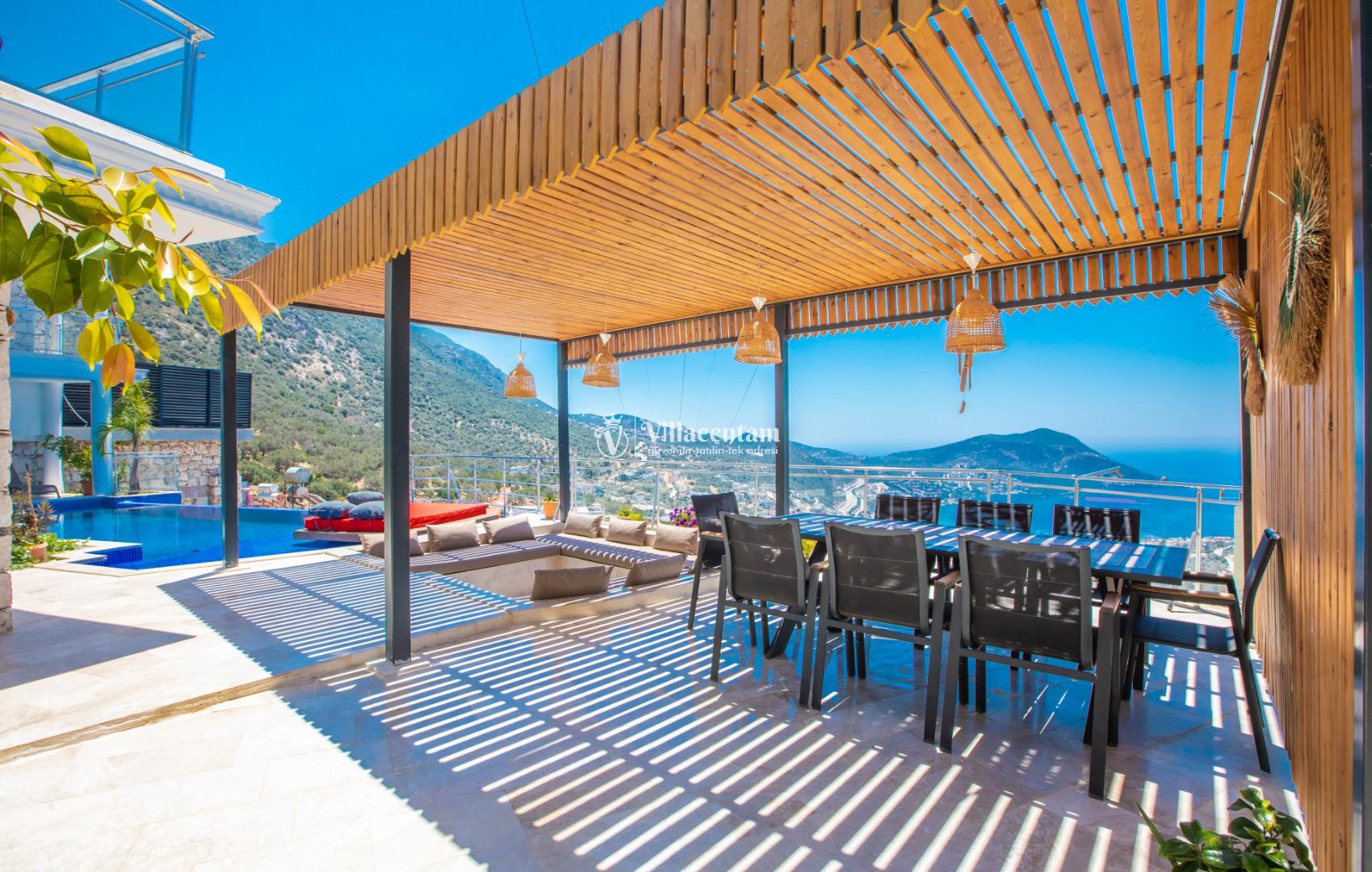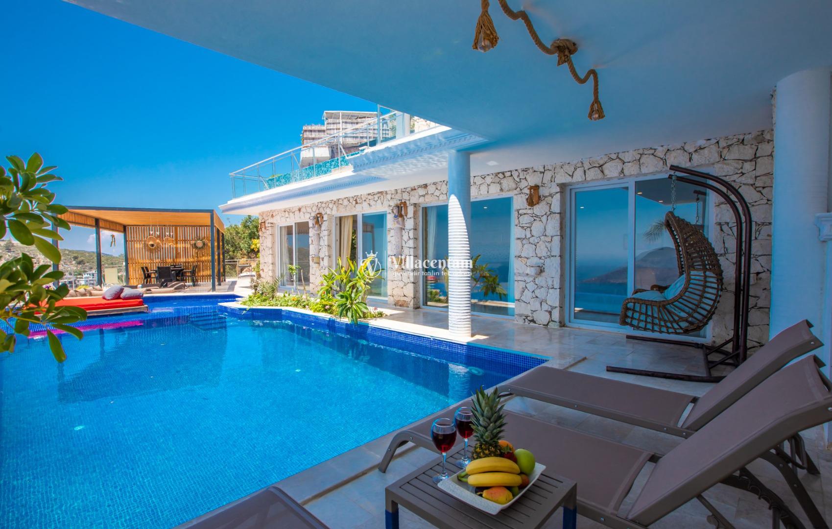 Villa Çırağan, Kalkan Akbel mevkiinde konumlanmakta olan deniz manzarasına hakim kiralık villalarımız arasında yer almaktadır. Yazlık villamızda 4 adet yatak odası bulunmakta olup, 8 kişiye konaklama imkanı sağlamaktadır. Geniş aileler ve kalabalık arkadaş grupları rahatlıkla tercih edebilirler. Ferah ve donanımlı bir havuz terasına sahip kiralık villamızda sevdiklerinizle birlikte havuzunuzda keyif yapabilir, yeme ve içmenizi en güzel hale getirebilirsiniz.