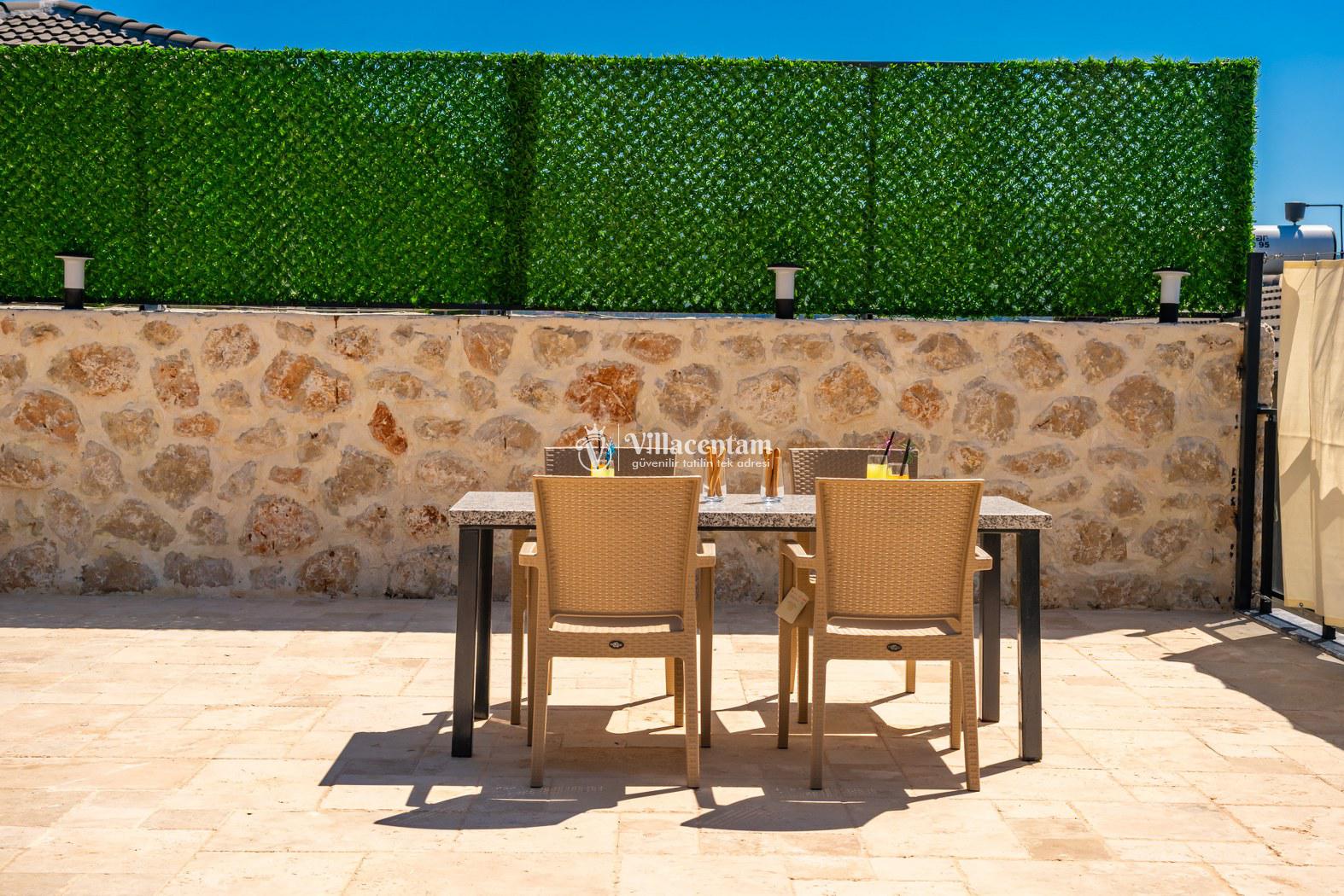 Villa Colombia, Kalkan Yeşilköy doğanın huzurunu modern konforla buluşturan 4 kişilik özel villamız, aileler ve küçük gruplar için ideal bir tatil deneyimi sunuyor. Geniş bahçesi, özel yüzme havuzu ve çocuklara özel oyun alanıyla hem keyifli hem de güvenli bir konaklama imkânı sağlar.Villanın ferah iç mekânı özenle tasarlanmış olup iki yatak odası, tam donanımlı mutfak ve konforlu bir salon alanı sunar. Doğa manzarasına açılan geniş terasta günün her anı sakinliğin tadını çıkarabilir, özel havuzunuzda serinleyerek tatilinizi unutulmaz kılabilirsiniz. Çocuk oyun parkı sayesinde minik misafirler eğlenceli vakit geçirirken, yetişkinler dingin atmosferde dinlenebilir. Villa çevresindeki yeşil alanlar, kuş sesleri ve doğal güzellikler tatilinizi daha da özel hale getirir. Gizlilik, konfor ve doğayla iç içe bir tatil arayanlar için ideal olan bu villa, hem aileler hem de balayı çiftleri için mükemmel bir seçenektir.
