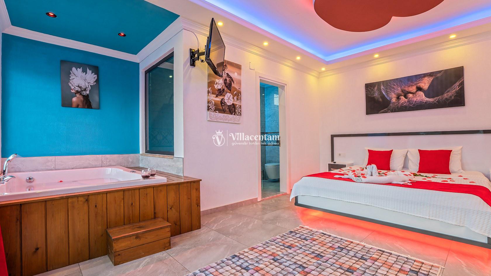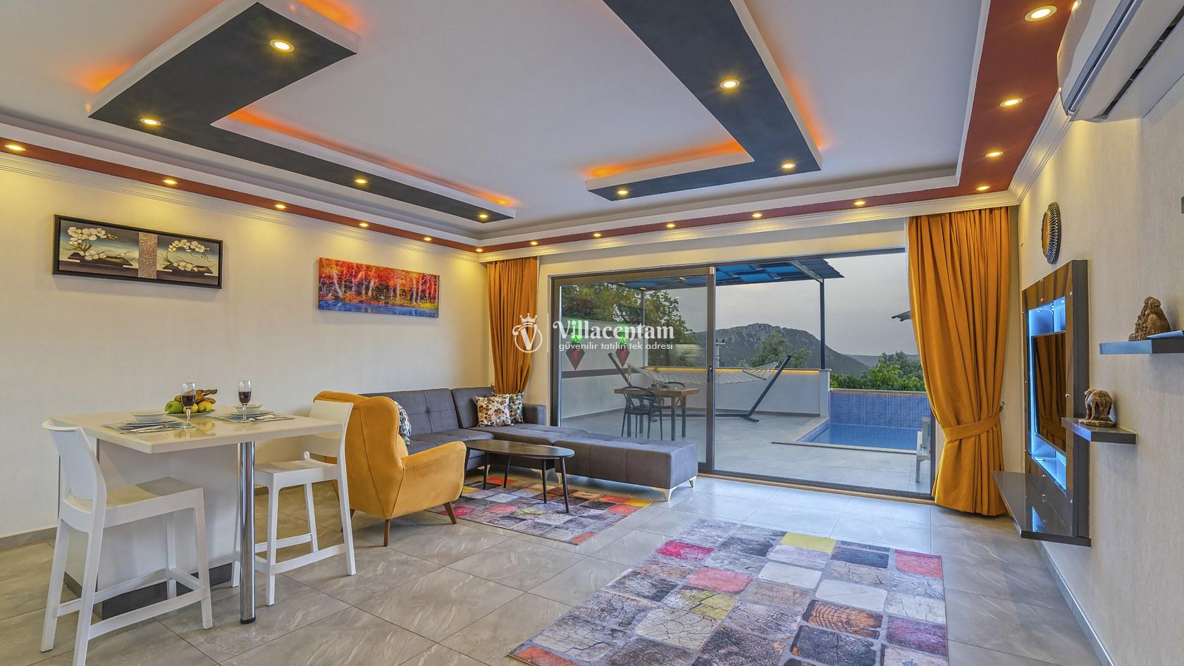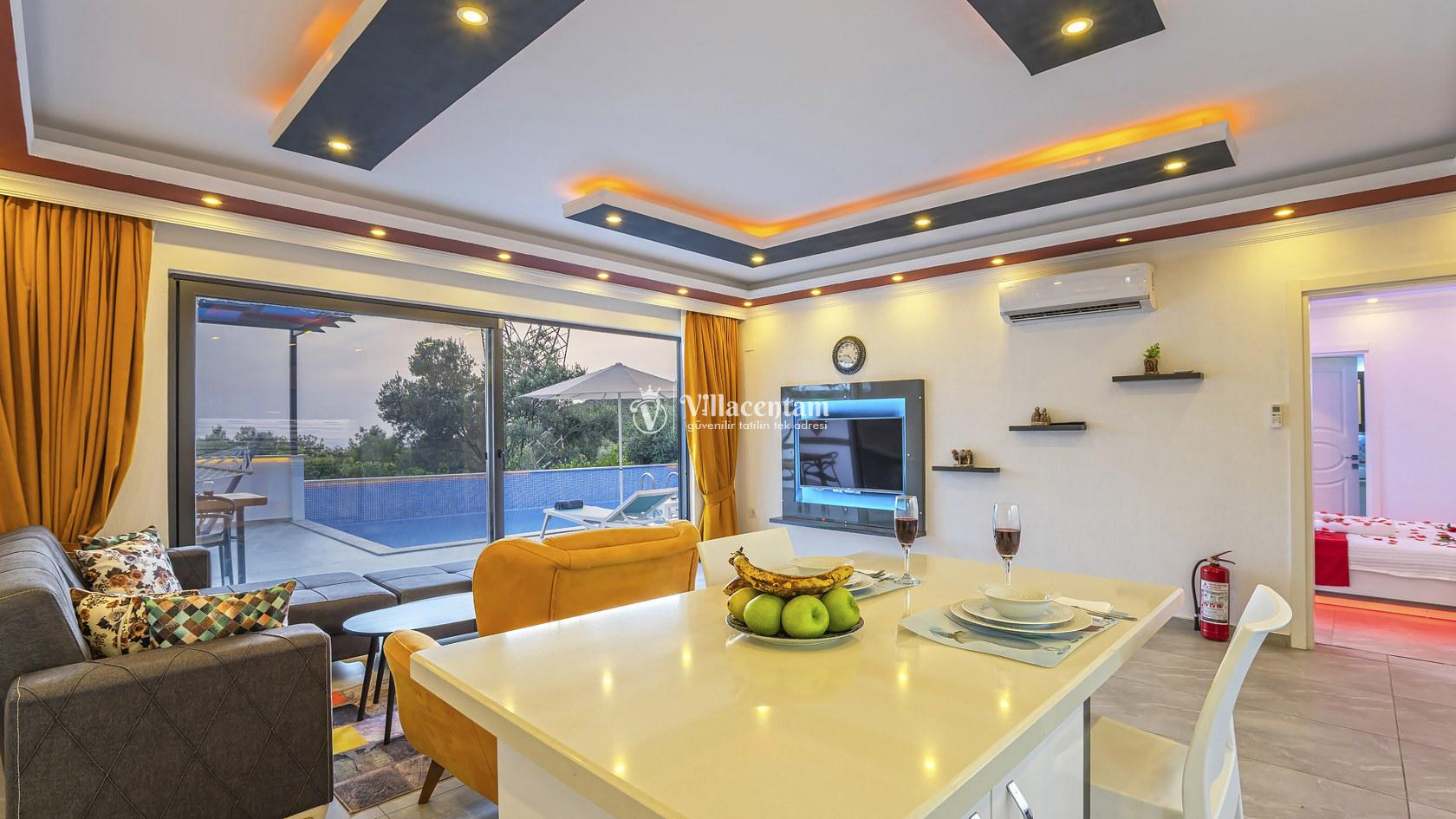 Villa Damla Duo, Kalkan Üzümlü köyünde konumlanmakta olan, yeşilliklerin arasında doğa manzaralı kiralık bir villadır. Modern ve konforlu bir şekilde dizayn edilen yazlık villamızda 1 adet yatak odası bulunmakta olup, 2 kişiye konaklama imkanı sağlamaktadır. Yatak odasının içerisinde tüm yorgunluğunuzu atabileceğiniz jakuzi yer almaktadır. Özellikle balayı çiftlerimize hitap eden yazlık villamızın havuz ve havuz terası korunaklı hale getirilmiştir. Kiralık villamız dışarıdan gözükmemektedir. Muhafazakar çiftlerimiz de gönül rahatlığı ile tercih edebilirler. Sessizlik ve sakinlik içerisinde huzur dolu bir balayı tatili için Villa Damla Duo’ yu tercih edebilirsiniz.