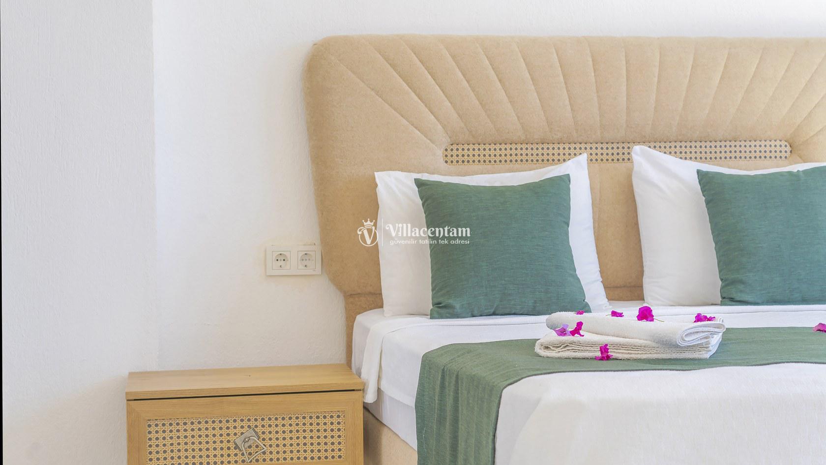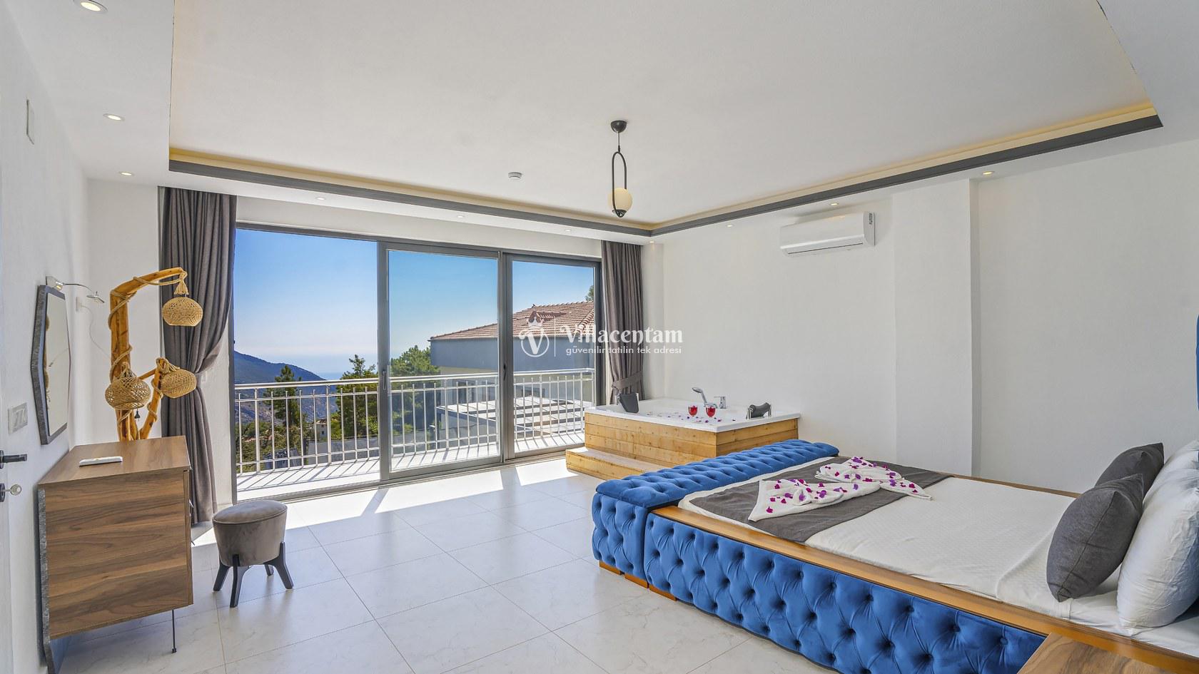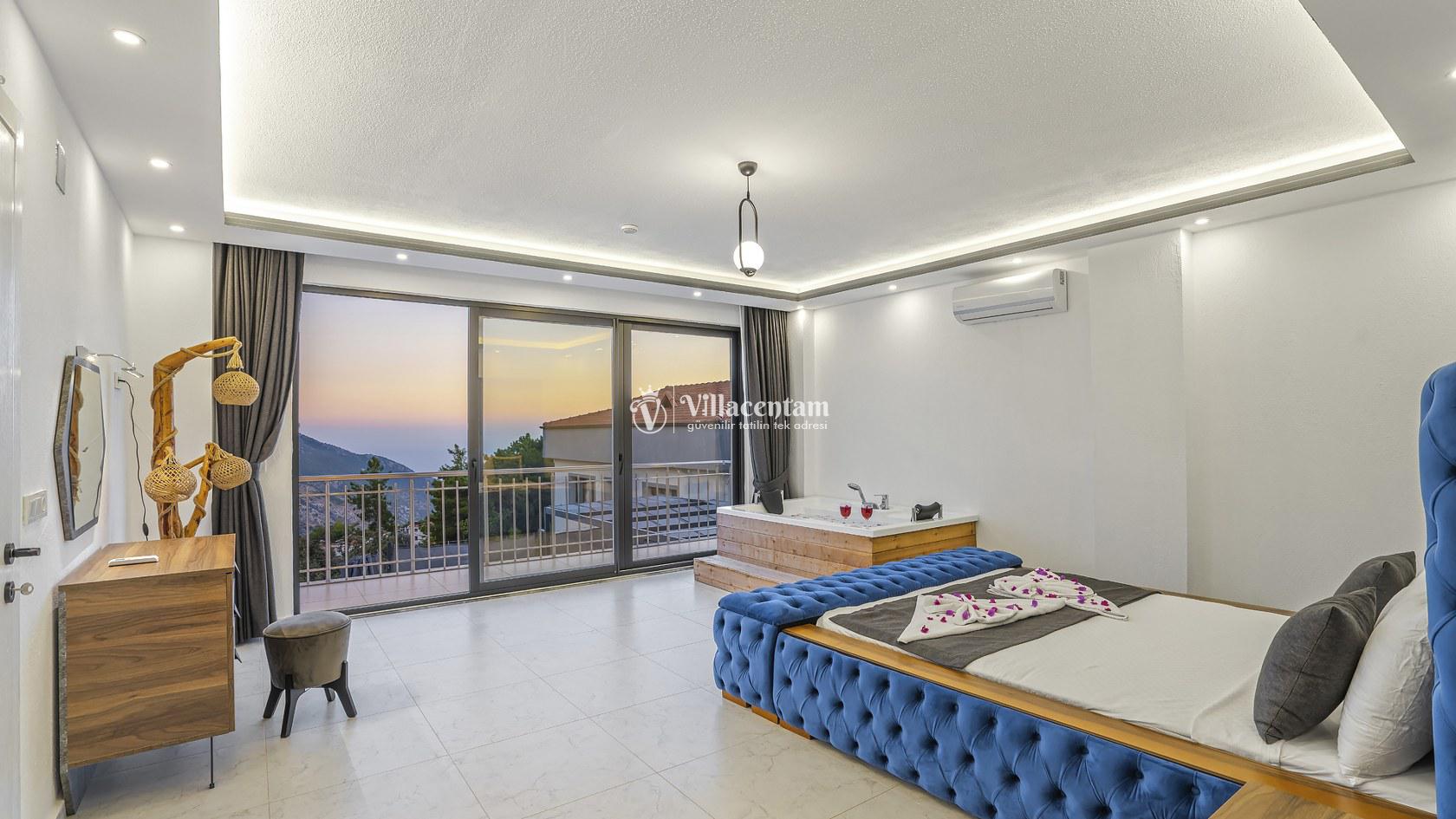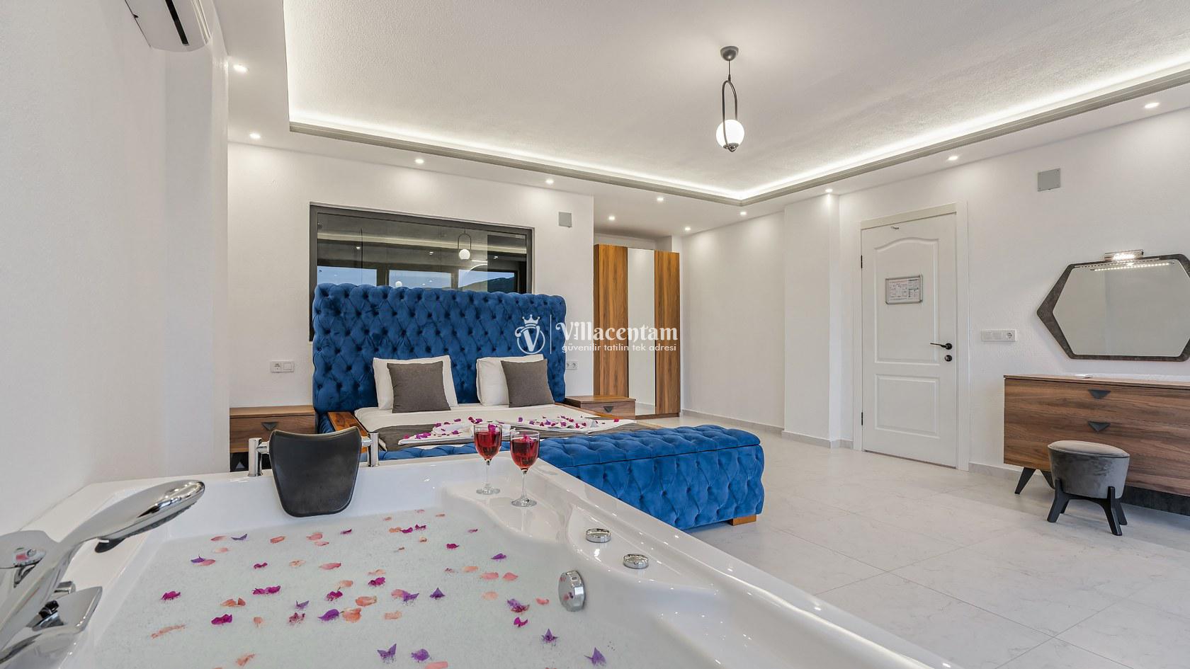 Ana yatak odasında çift kişilik yatak ve tatilinize ayrıcalık katacak çift kişilik jakuzi bulunmaktadır.