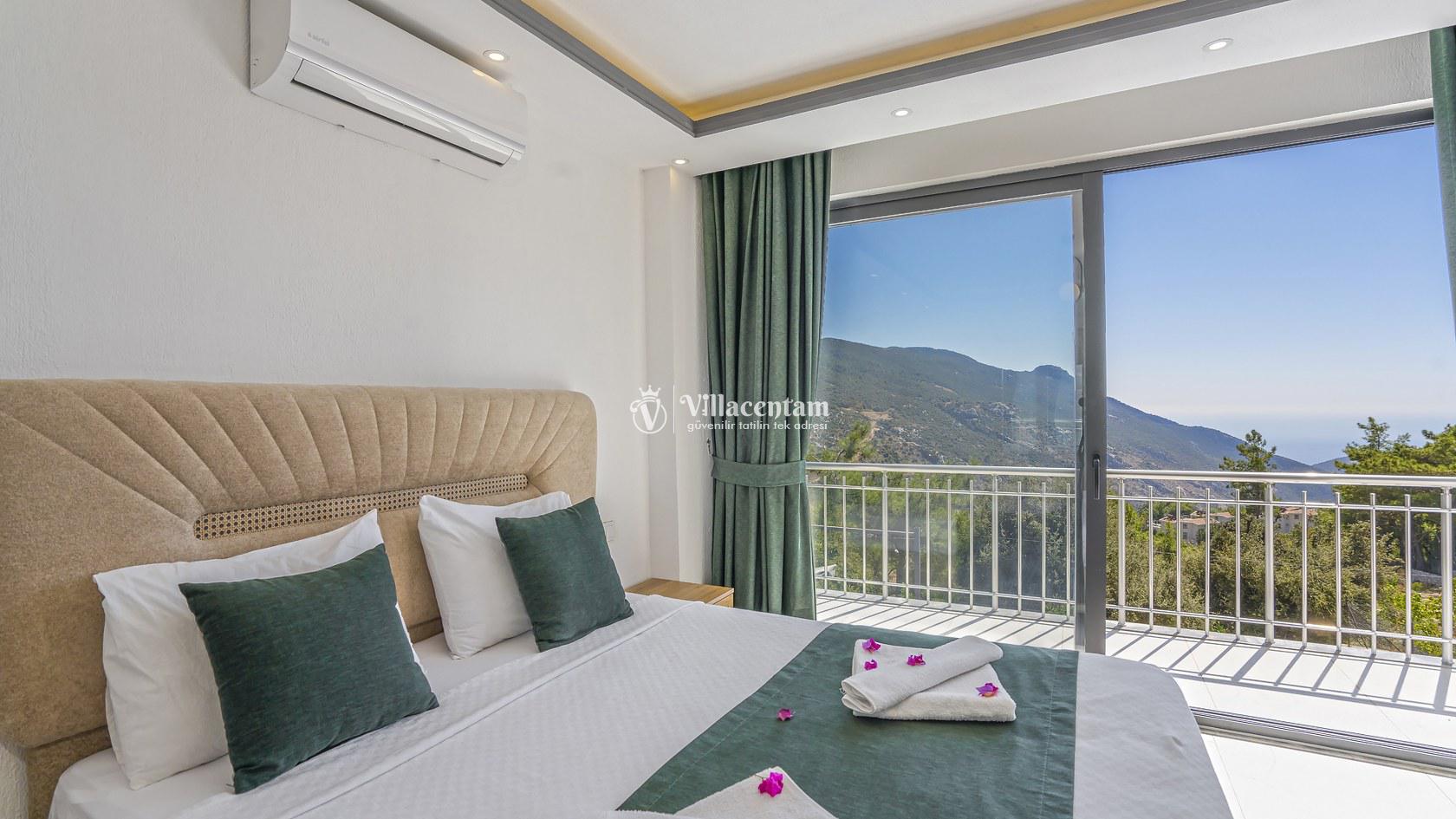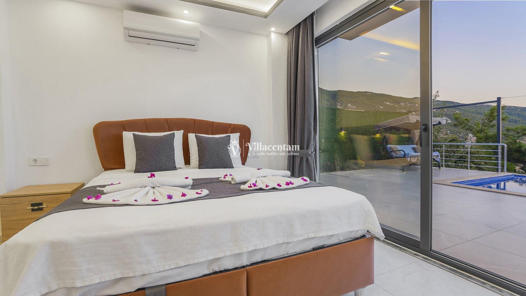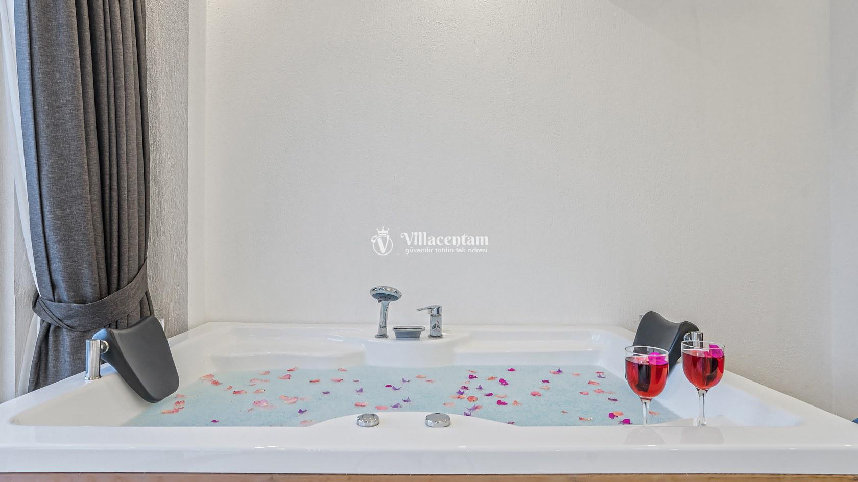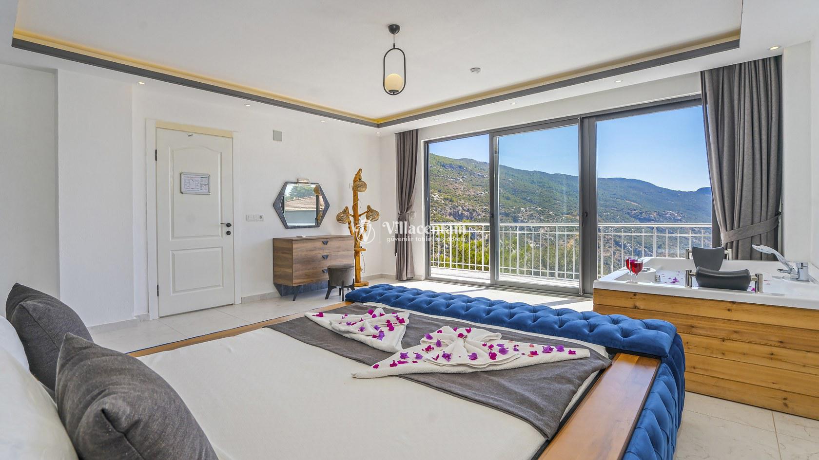 Ana yatak odasında çift kişilik yatak ve tatilinize ayrıcalık katacak çift kişilik jakuzi bulunmaktadır.