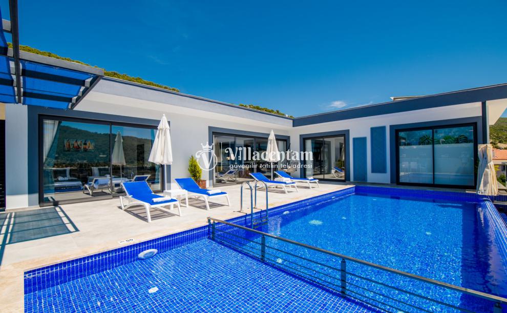 Villa Def, Kalkan Sarıbelen köyünde konumlanmakta olan yeşilliklerle kaplı doğa manzarasına hakim kiralık villalarımız arasında yer almaktadır. Şık ve konforlu bir şekilde konumlanmakta olan yazlık villamızda 2 adet yatak odası bulunmakta olup, 4 kişiye konaklama imkanı sağlamaktadır. Yatak odalarından bir tanesinin içeresinde tüm yılın vermiş olduğu yorgunluğu giderebileceğiniz jakuzi bulunmaktadır. Havuz ve havuz terası korunaklı olan kiralık villamızı muhafazakar aileler ve balayı çiftleri rahatlıkla tercih edebilirler. Her bir detayın en ince ayrıntısına kadar düşünüldüğü yazlık villamızda kış aylarında konaklayan misafirler için kapalı ısıtma havuzu ve sauna yer almaktadır. Ayrıca villamızda masa tenisi ve çocuklar için uygun oyun alanı bulunmaktadır. Dış özel yüzme havuzuna entegre çocuk havuzu yer almaktadır. Tüm gözlerden uzakta sessizlik ve sakinlik içerisinde huzur dolu bir yazlık villada tatili için Villa Def' i tercih edebilirsiniz.