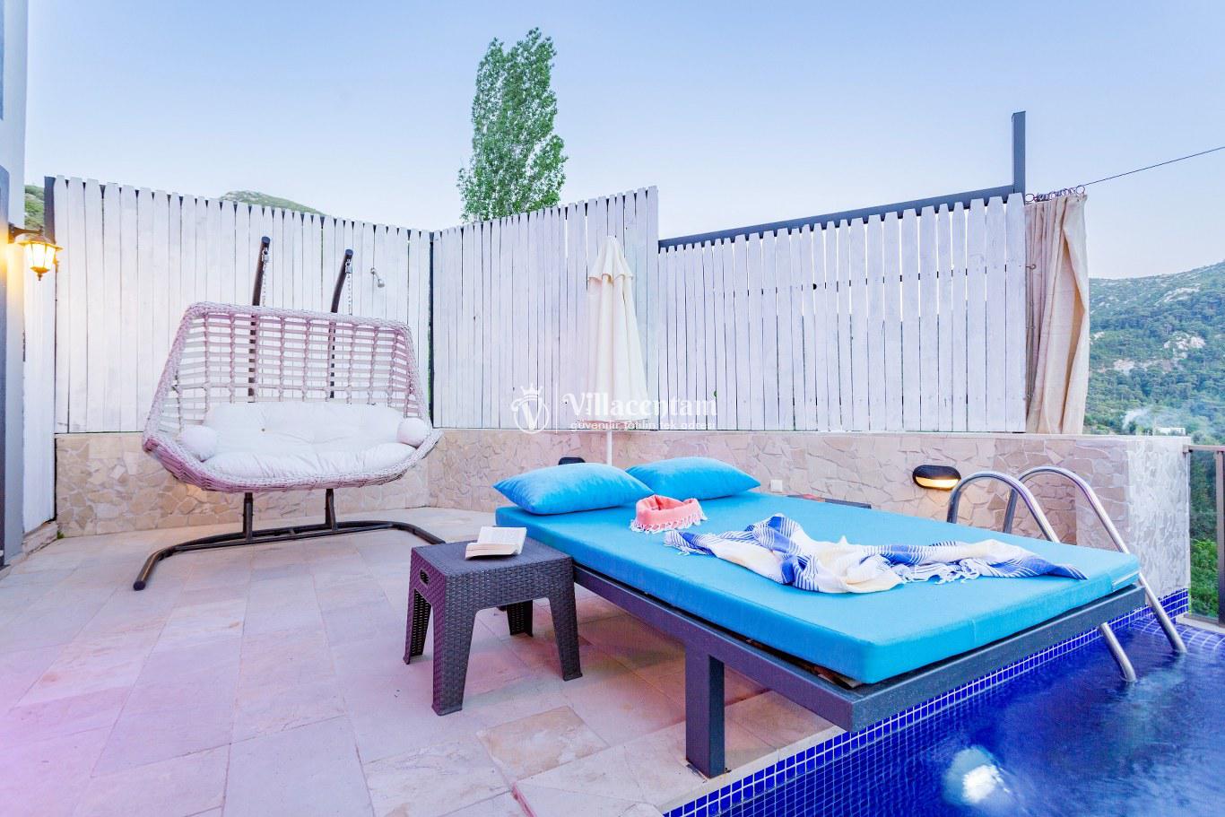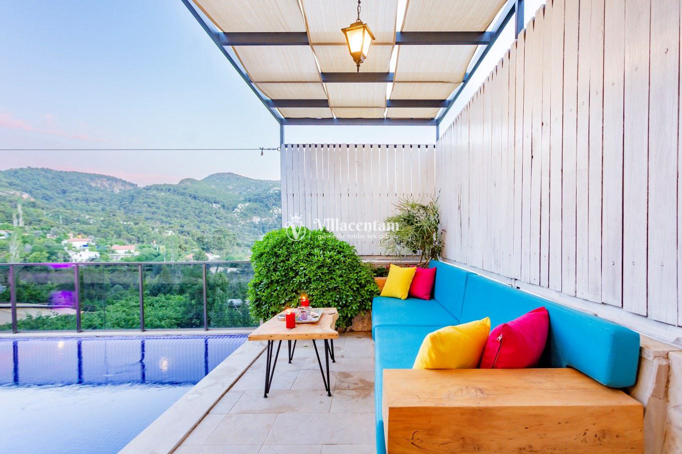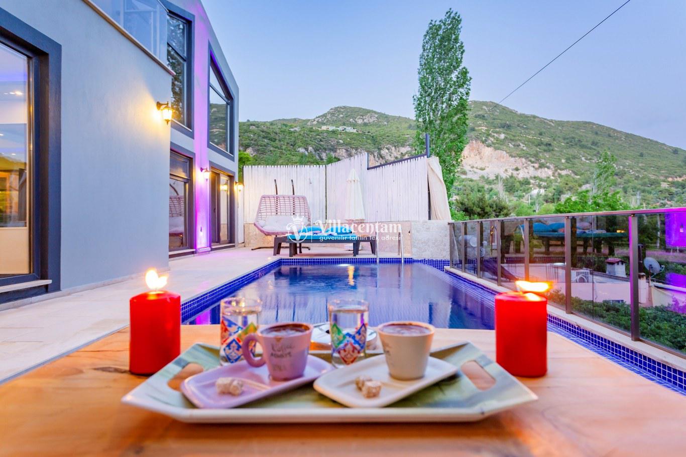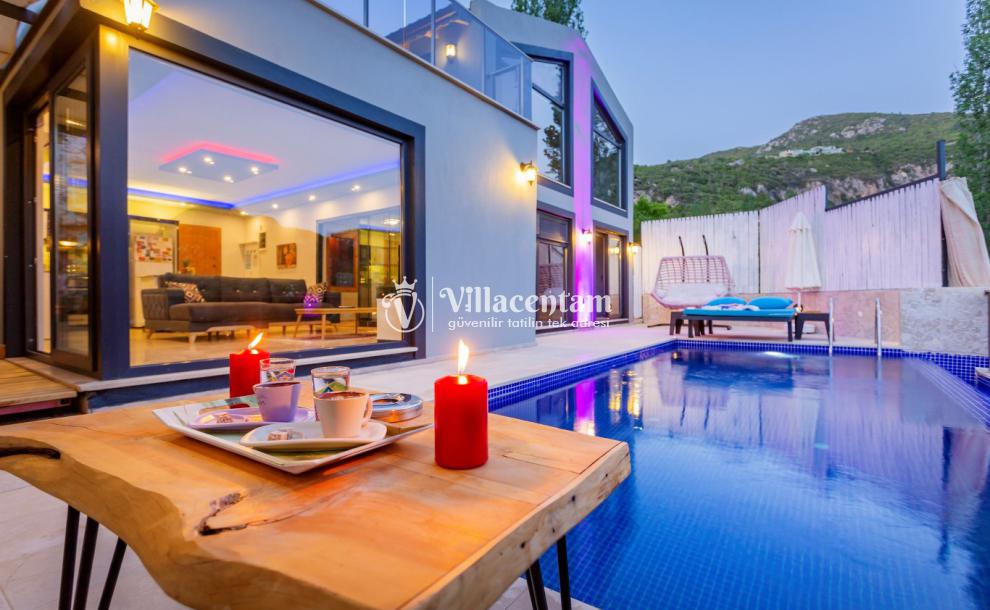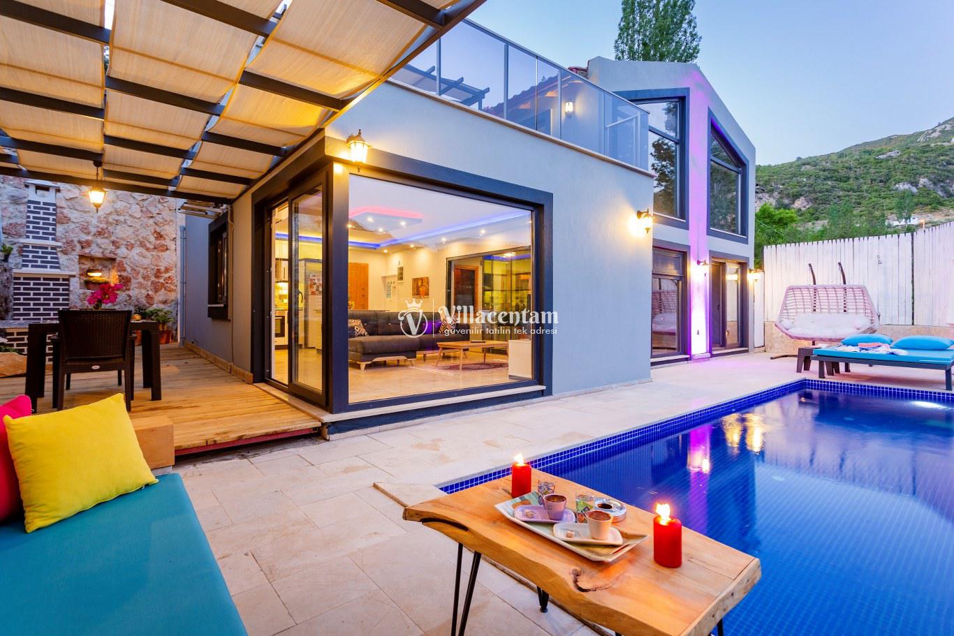 Villa Defne Çınar, Kalkan İslamlar mevkiinde konumlanan doğanın kalbinde, tamamen size ait özel bir yaşam alanı sunan 2 kişilik lüks villamız, konforu, mahremiyeti ve huzuru en üst seviyede yaşamak isteyen misafirler için özenle tasarlanmıştır. Modern mimari çizgilerle şekillenen villamız, gözden uzak konumu, panoramik doğa manzarası ve zengin donanımlarıyla çiftler, balayı misafirleri ve sakin bir tatil arayan misafirler için ideal bir kaçış noktasıdır. Villanın içerisinde yer alan kapalı ısıtmalı havuz, dört mevsim keyifle kullanılabilir şekilde tasarlanmıştır. İster romantik bir akşam, ister güne yumuşak bir başlangıç… Tamamen size özel bu alan, tatilinize ayrıcalık katacak detaylarla donatılmıştır. Spa konseptini ev konforunda yaşamanız için villamızda özel Türk hamamı ve sauna bulunmaktadır. Günün yorgunluğunu sıcak taşların üzerinde atabilir, doğanın dinginliğini hissederken bedeninizin ve zihninizin yenilendiğini keşfedebilirsiniz. Geniş cam paneller sayesinde iç mekân gün boyu doğal ışıkla buluşurken, dışarıda sizi çevreleyen yemyeşil bir manzara her an gözünüzün önündedir. Sessiz, sakin ve huzurlu bir atmosfer sunan villada kuş sesleri eşliğinde kahvenizi yudumlayabilir, doğanın tüm renklerini en saf haliyle deneyimleyebilirsiniz. Özenle dekore edilen yaşam alanlarında modern mobilyalar, tam donanımlı mutfak, konforlu bir yatak odası ve romantik dokunuşlar tatilinizi unutulmaz kılmak için bir araya getirilmiştir. Dilerseniz dış alanda yer alan özel bahçenizde doğayla iç içe vakit geçirebilir, dilerseniz kapalı alanlarda tamamen size ait spa bölümünün keyfini çıkarabilirsiniz.
