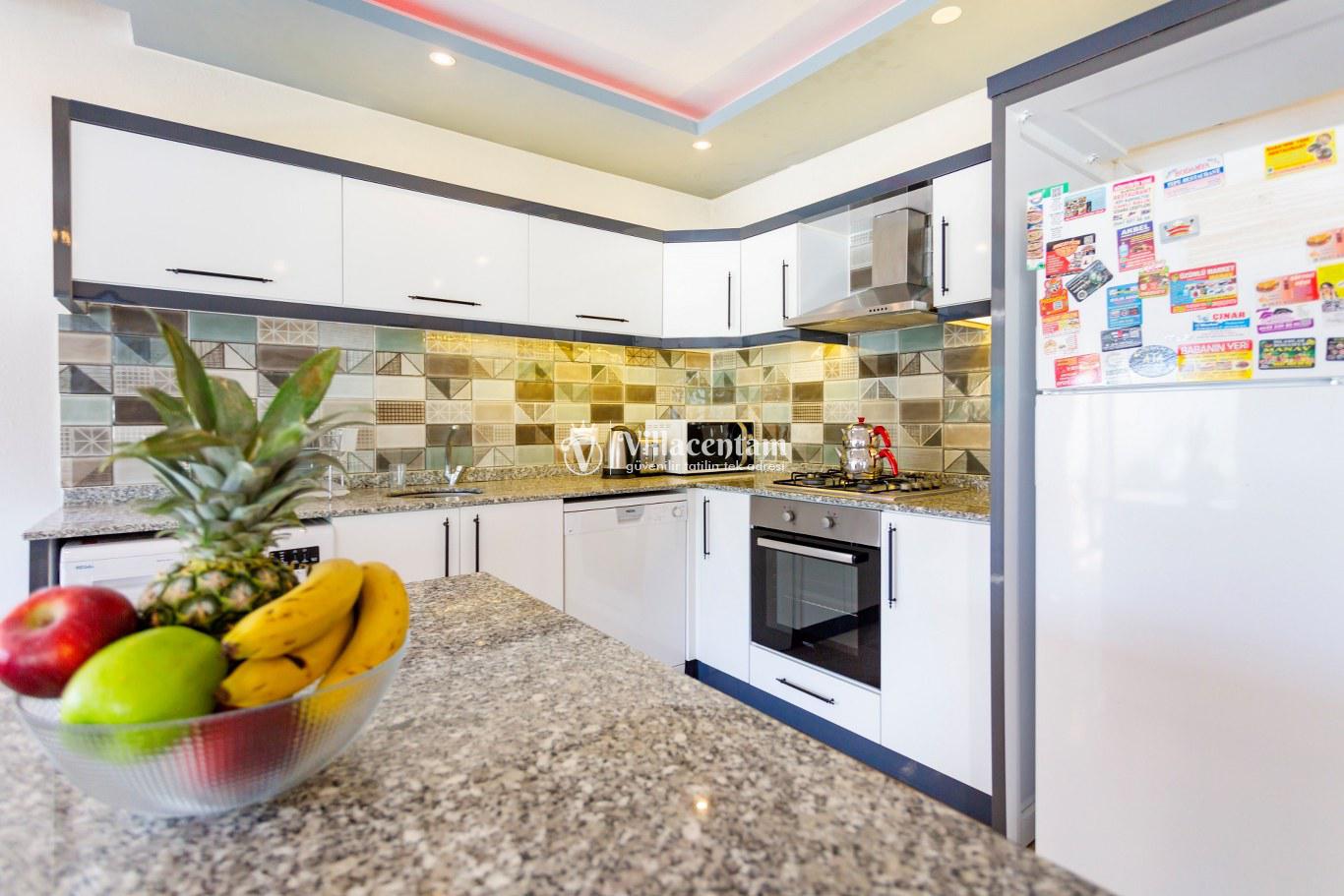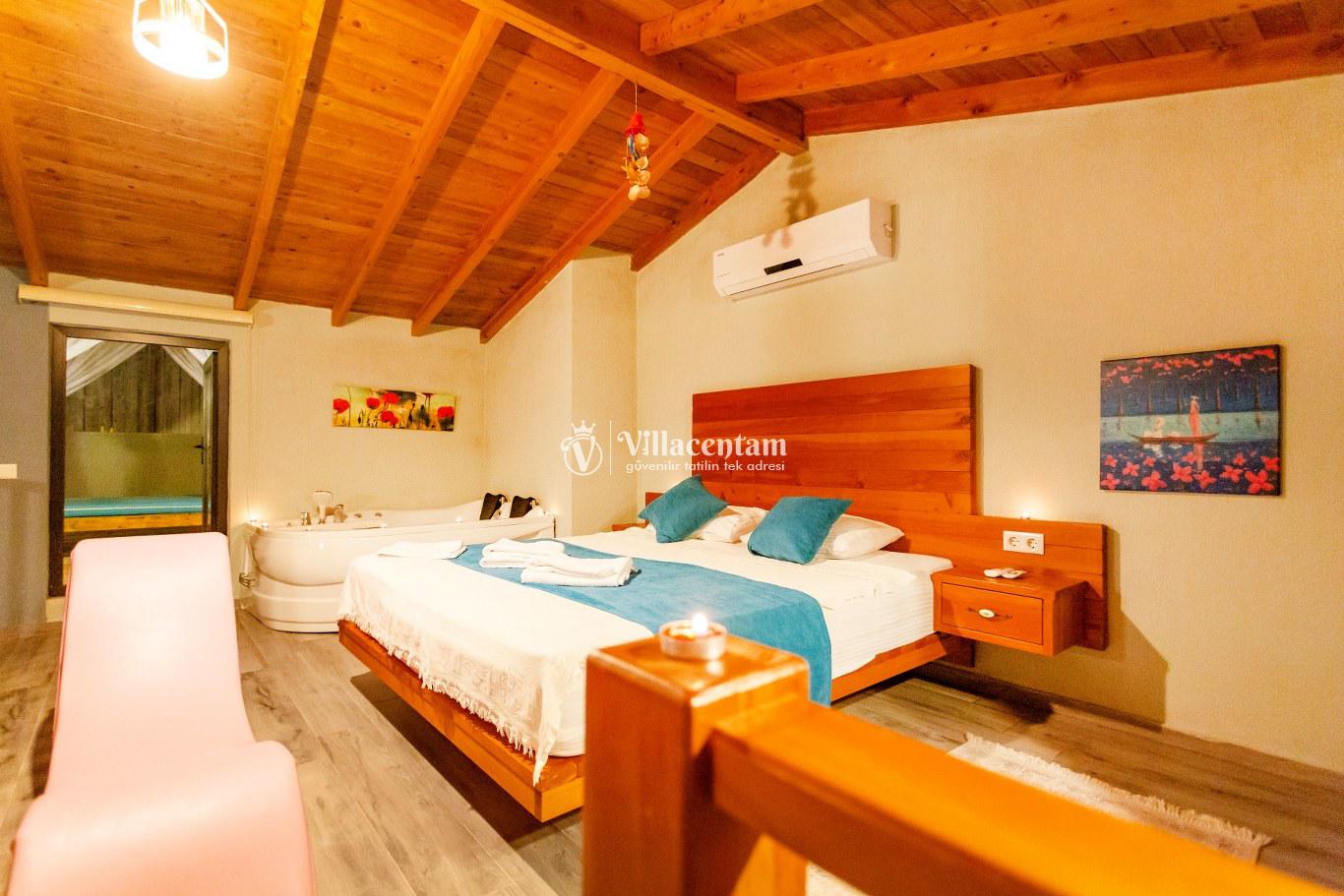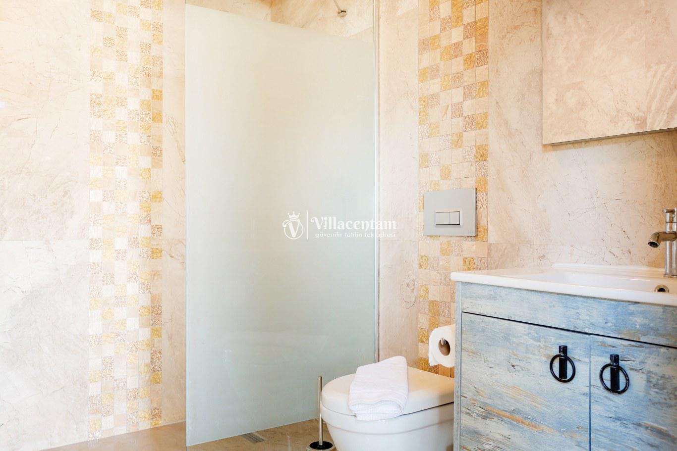 *Villalarda sıcak su için güneş enerjili su ısıtma sistemleri kullanılmaktadır. Çok yoğun sıcak su kullanımında, yoğunluğa ve su tankının büyüklüğüne bağlı olarak su tankında sıcak su tükenebilmekte ve tekrar suyun ısınması için belirli bir süre geçmesi gerekmektedir. Bu not sadece bu villa ile ilgili değil, tüm villalarımız için geçerli bir durumdur.