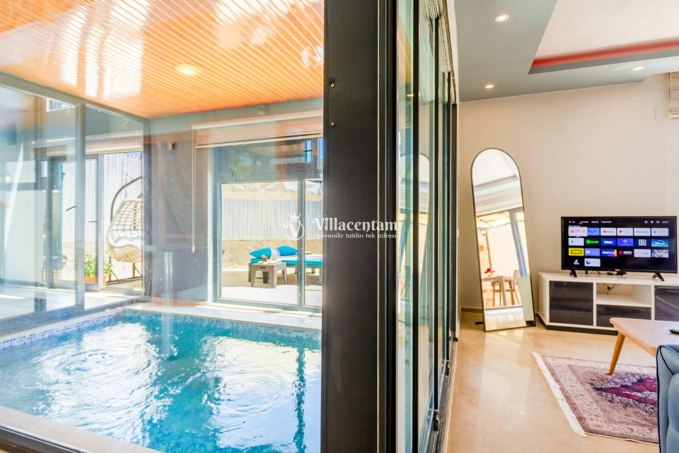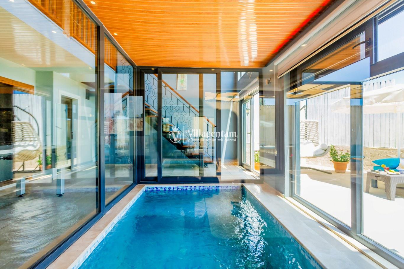 NOT: Villamızda bulunan kapalı ısıtmalı havuz ısıtması 30 Hazirandan sonra gecelik 1.500 TL eksta ücret talep edilmektedir. Havuz sıcaklığı hijen koşulları nedeni ile 28 santigrat derece olarak sunulmaktadır.