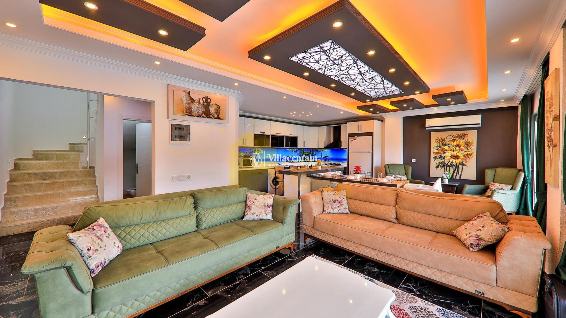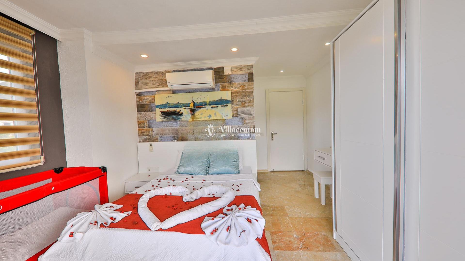 Tamamı süit olarak tasarlanmış 3 yatak odasına sahip villamızda, en üst katta yer alan özel jakuzi odası tatilinize ayrıcalık katar. Geniş, ferah ve modern yaşam alanlarıyla donatılmış villamız; aileler ve arkadaş grupları için rahat, keyifli ve huzur dolu bir tatil deneyimi vadeder.