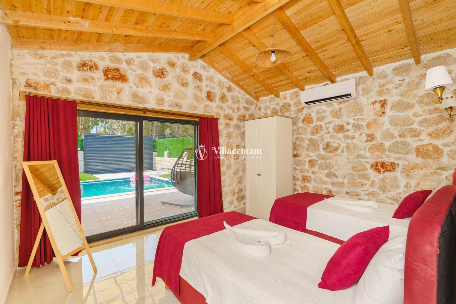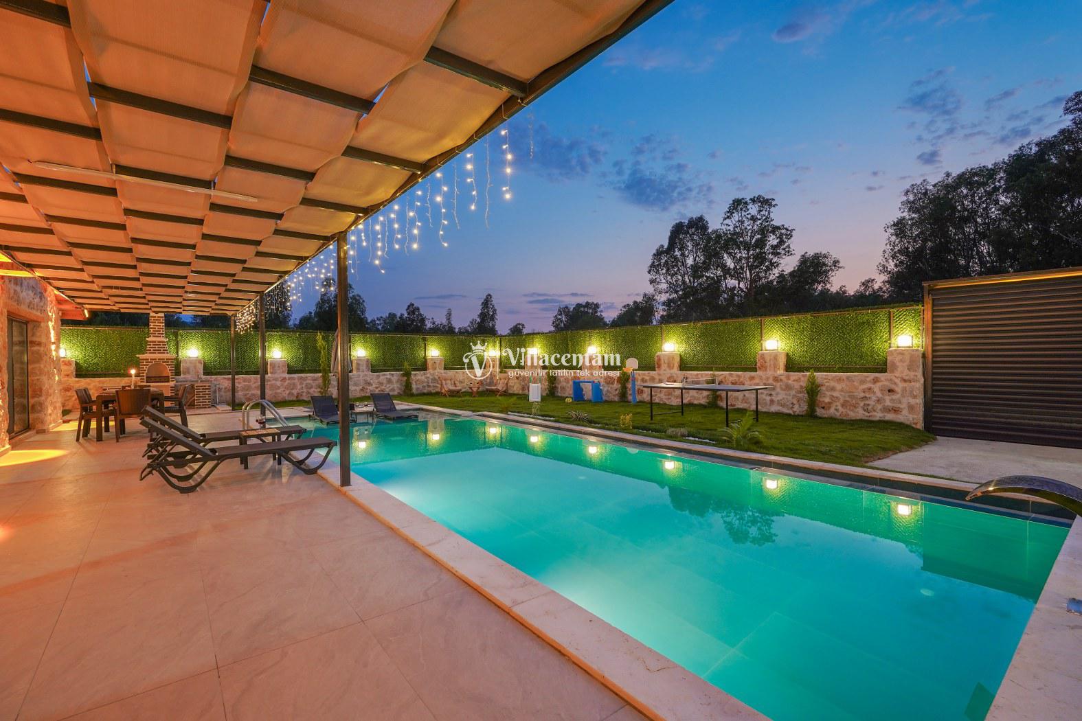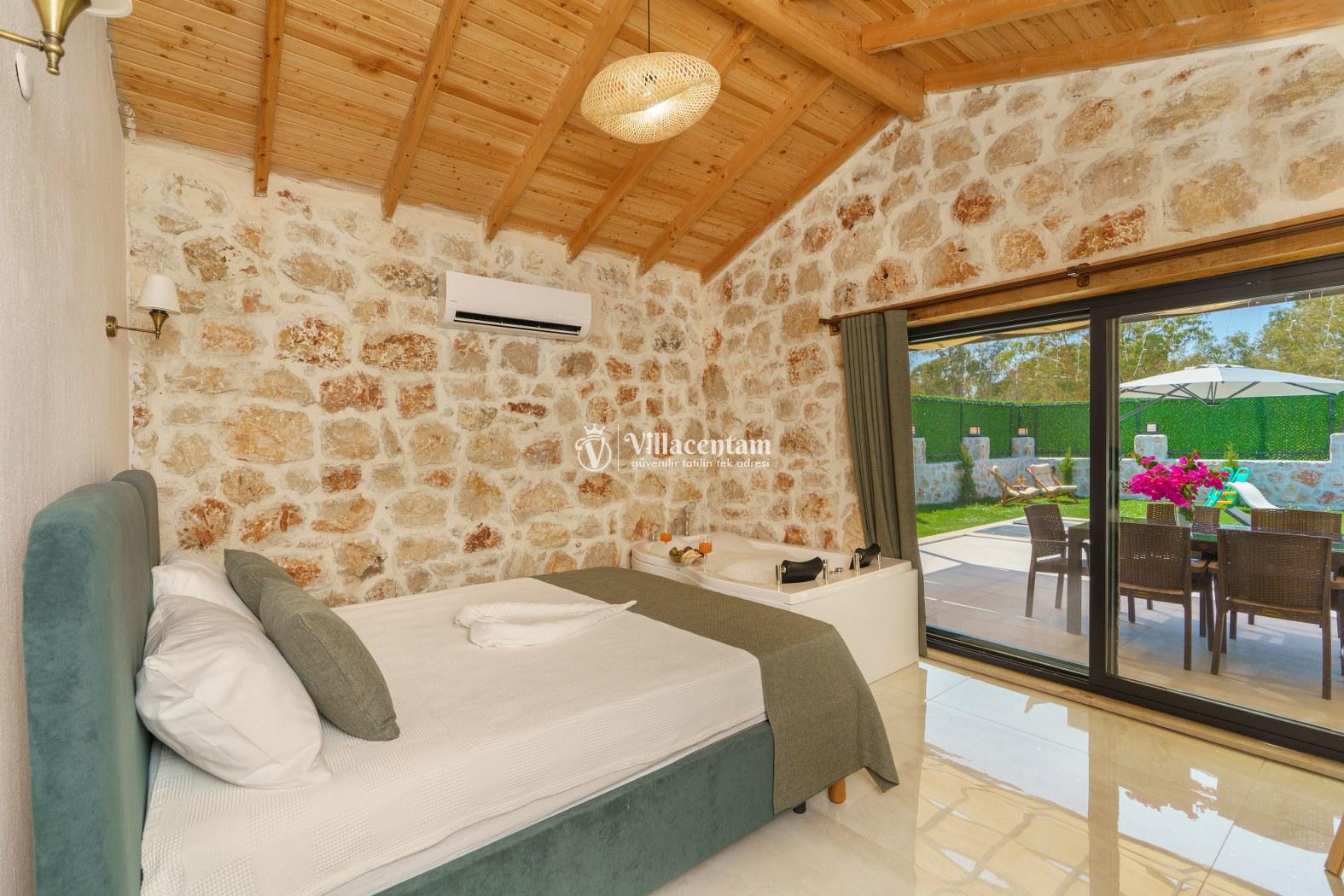 Villa Deniz Yıldızı 1, Kalkan Patara mevkiinde konumlanmakta olan yeşilliklerle kaplı doğa manzarasına hakim kiralık villalarımız arasında yer almaktadır. Modern ve konforlu bir şekilde dizayn edilen yazlık villamızda 2 adet yatak odası bulunmakta olup, 4 kişiye konaklama imkanı sağlamaktadır. Yatak odalarından bir tanesinin içerisinde tüm yılın vermiş olduğu yorgunluğu giderebileceğiniz jakuzi bulunmaktadır. Ferah bir havuz ve havuz terasına sahip yazlık villamız korunaklı hale getirilmiştir. Dışarıdan bir kimse tarafından görülmemesi nedeni ile muhafazakar aileler, balayı çiftleri ve arkadaş grupları rahatlıkla tercih edebilirler. Dış özel yüzme havuzuna entegre sığ havuz mevcuttur. Hayallerinizin de ötesinde sessizlik ve sakinlik içerisinde huzur dolu bir yazlık villada tatil için Villa Deniz Yıldızı 1' i tercih edebilirsiniz