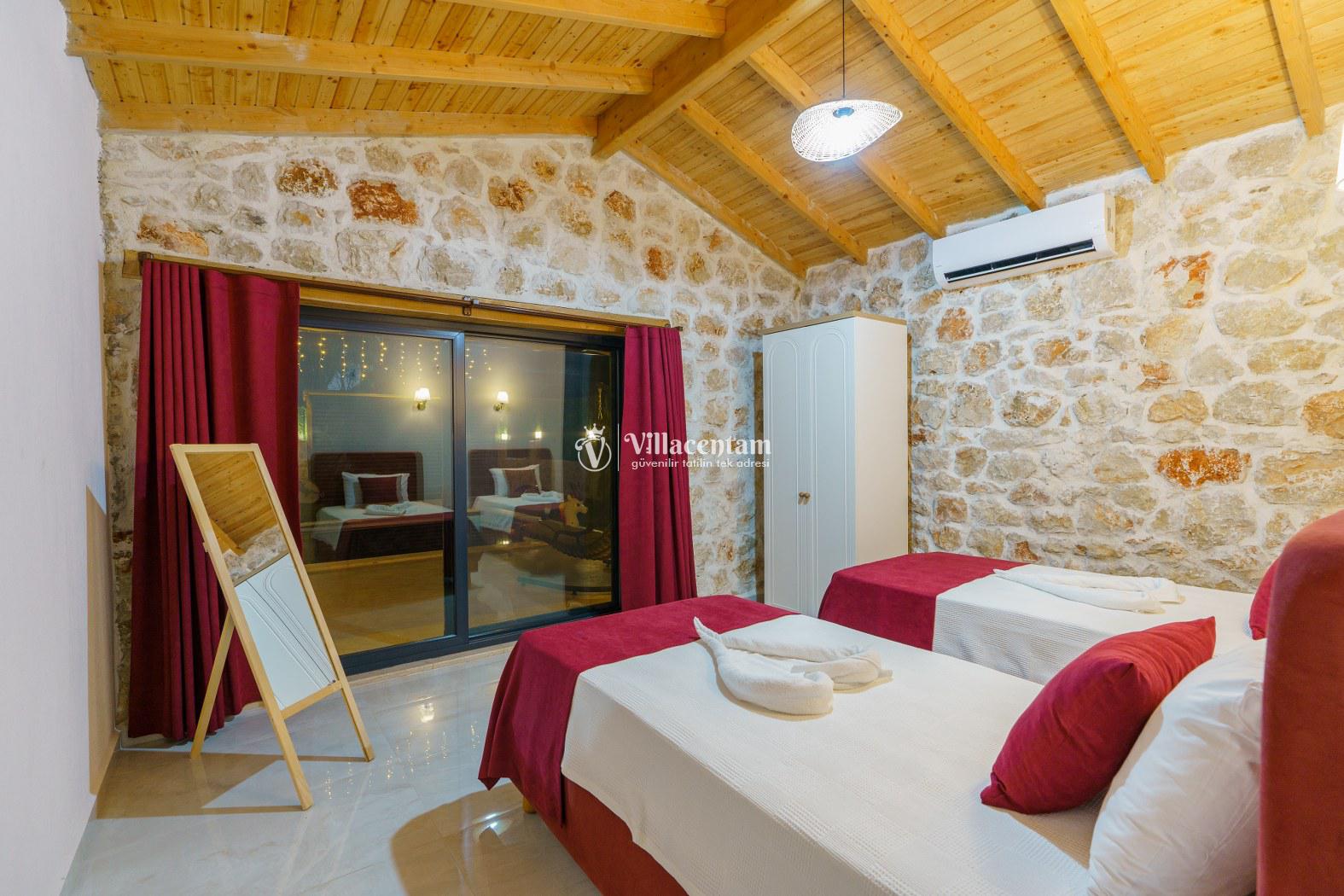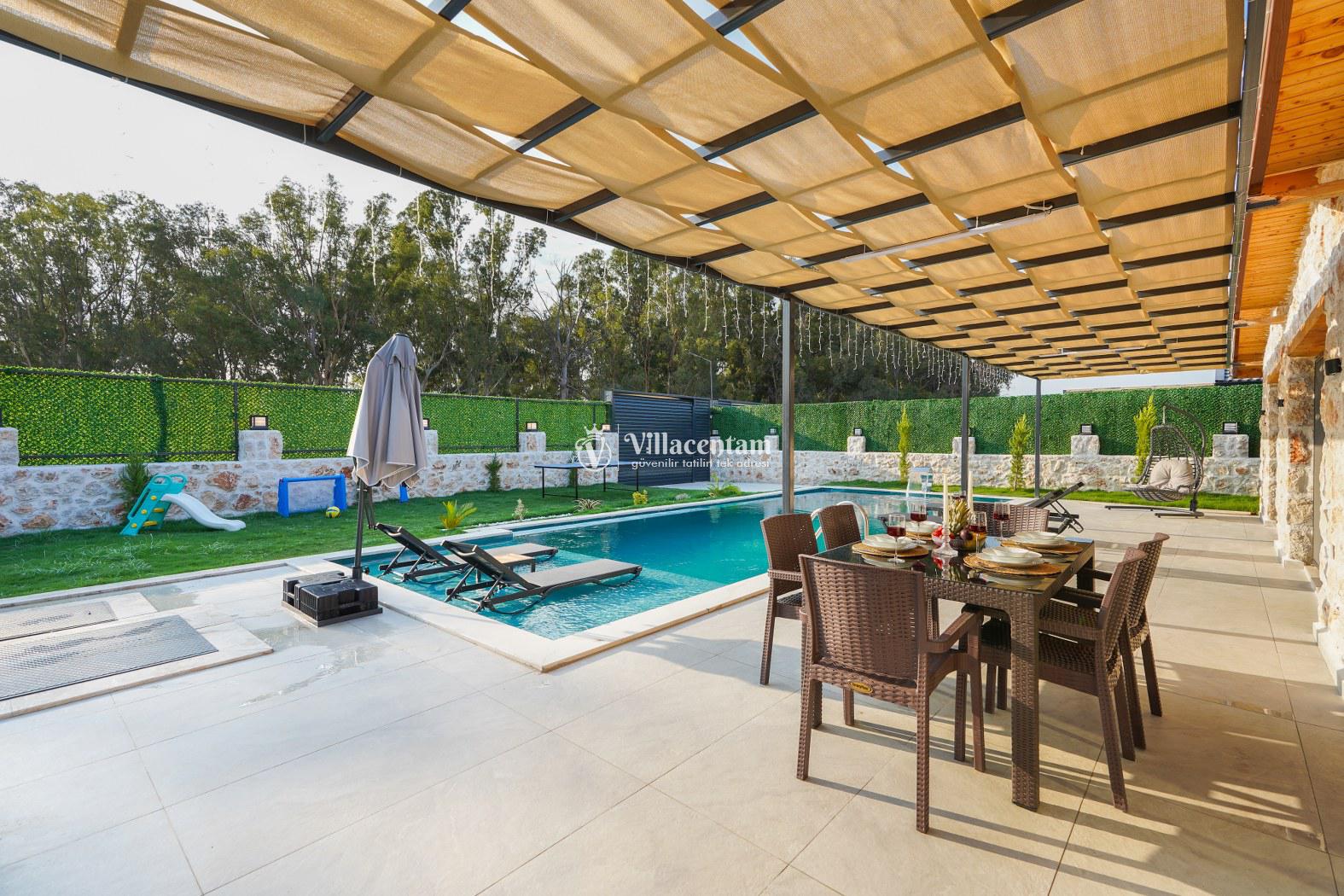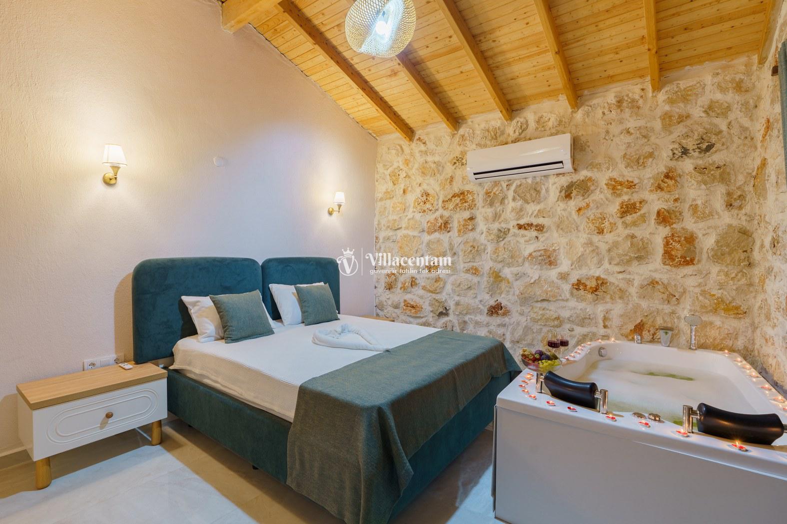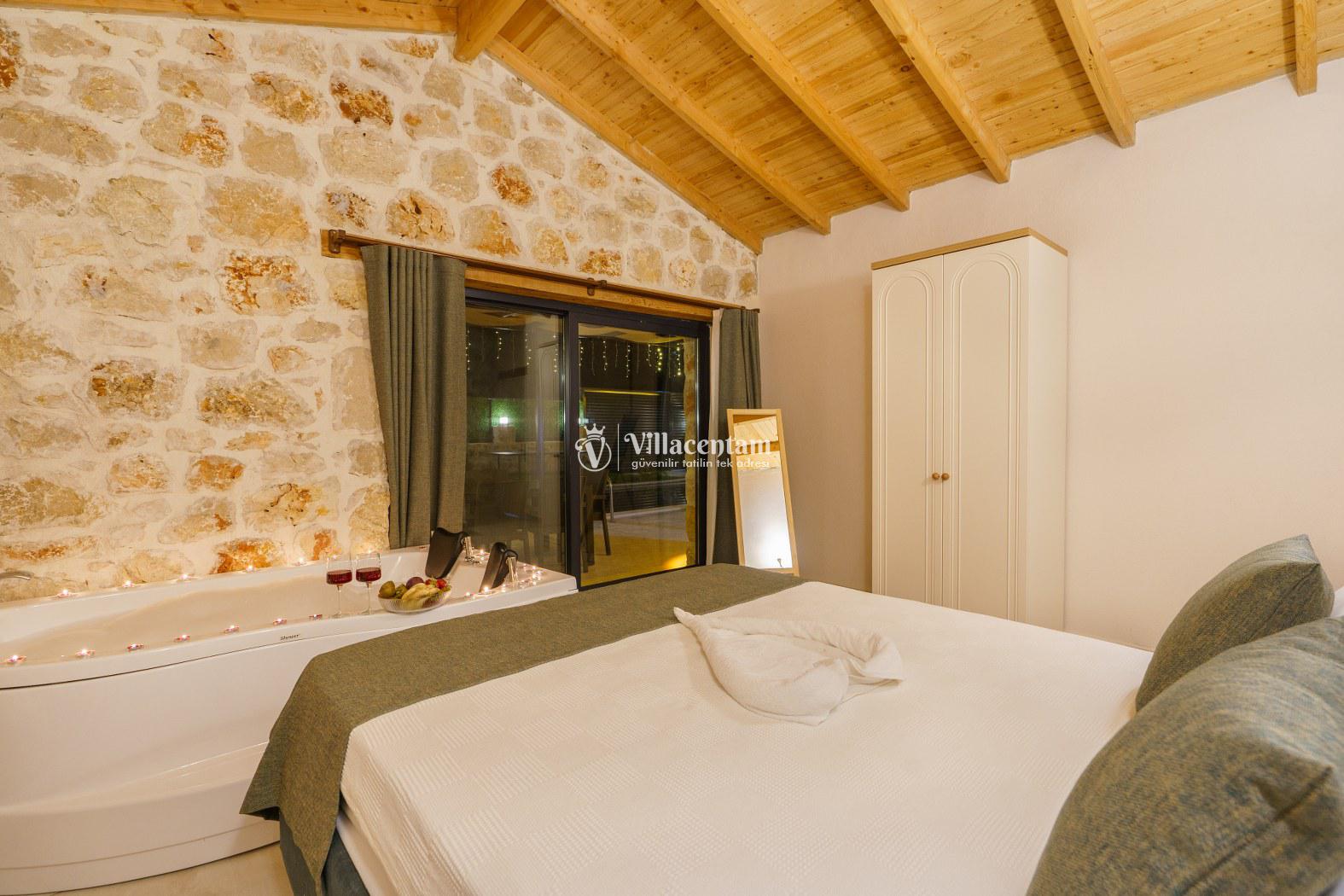 Villa Deniz Yıldızı 1, Kalkan Patara mevkiinde konumlanmakta olan yeşilliklerle kaplı doğa manzarasına hakim kiralık villalarımız arasında yer almaktadır. Modern ve konforlu bir şekilde dizayn edilen yazlık villamızda 2 adet yatak odası bulunmakta olup, 4 kişiye konaklama imkanı sağlamaktadır. Yatak odalarından bir tanesinin içerisinde tüm yılın vermiş olduğu yorgunluğu giderebileceğiniz jakuzi bulunmaktadır. Ferah bir havuz ve havuz terasına sahip yazlık villamız korunaklı hale getirilmiştir. Dışarıdan bir kimse tarafından görülmemesi nedeni ile muhafazakar aileler, balayı çiftleri ve arkadaş grupları rahatlıkla tercih edebilirler. Dış özel yüzme havuzuna entegre sığ havuz mevcuttur. Hayallerinizin de ötesinde sessizlik ve sakinlik içerisinde huzur dolu bir yazlık villada tatil için Villa Deniz Yıldızı 1' i tercih edebilirsiniz