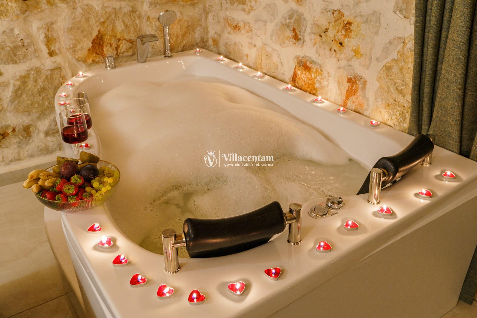 Villalarda sıcak su için güneş enerjili su ısıtma sistemleri kullanılmaktadır. Çok yoğun sıcak su kullanımında, yoğunluğa ve su tankının büyüklüğüne bağlı olarak su tankında sıcak su tükenebilmekte ve tekrar suyun ısınması için belirli bir süre geçmesi gerekmektedir. Bu not sadece bu villa ile ilgili değil, tüm villalarımız için geçerli bir durumdur