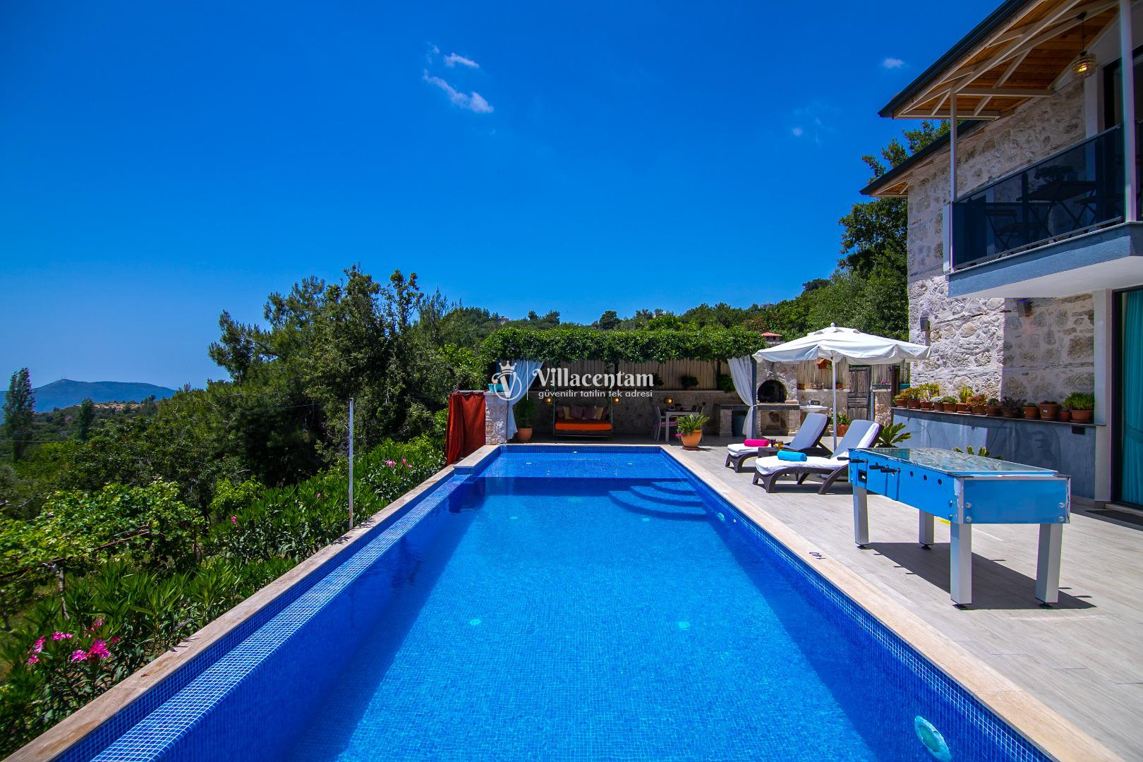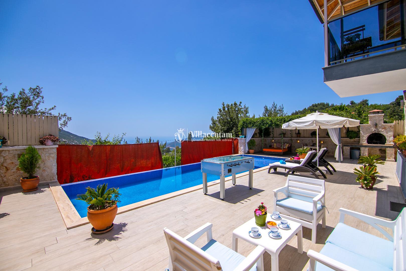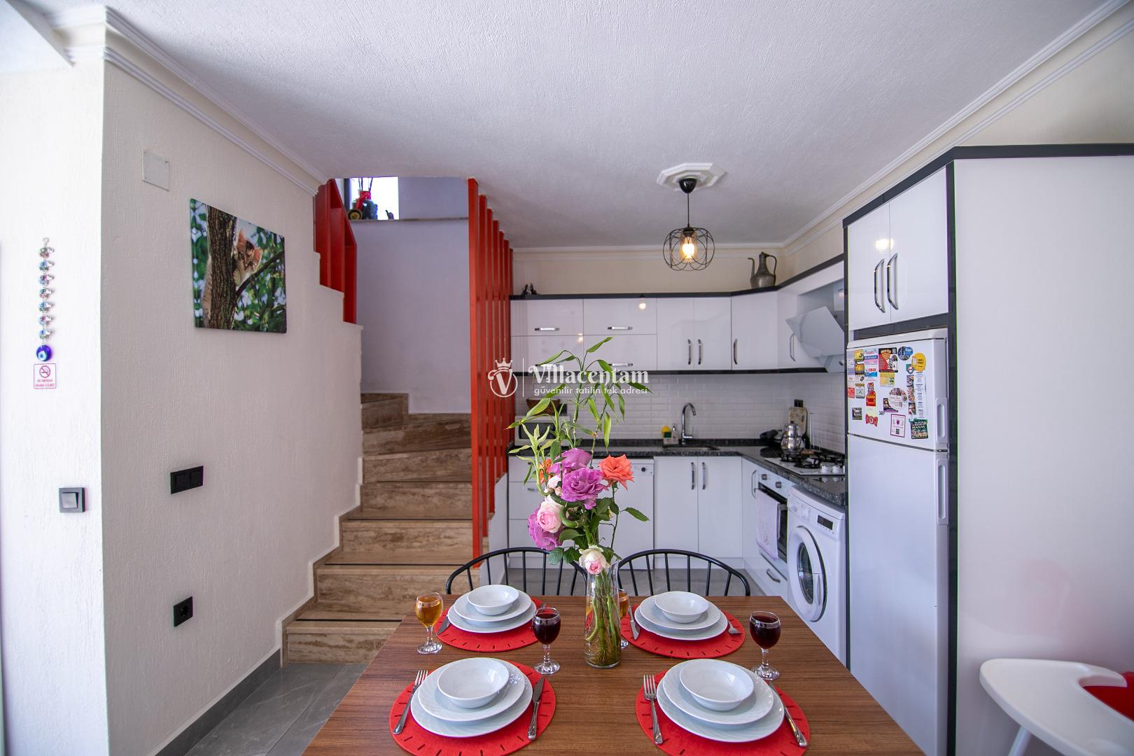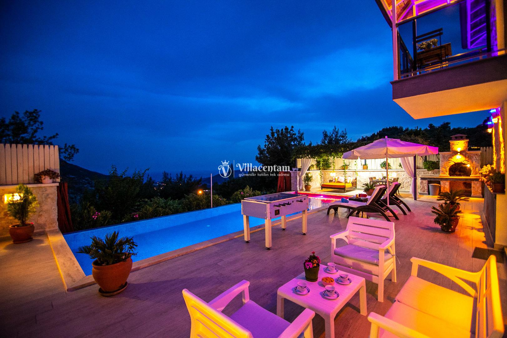 Villa Dia, Antalya’nın huzur dolu tatil bölgesi Kalkan’ın doğal güzellikleriyle öne çıkan İslamlar Köyü’nde yer alan özel bir balayı ve romantik tatil villasıdir. Eski bir taş evden modern konforla restore edilerek ortaya çıkan bu eşsiz villa, yalnızca 1 yatak odası ve 2 kişilik konaklama kapasitesi ile özellikle balayı çiftleri ve romantizm arayan misafirler için tasarlanmıştır. Villanın konumu Kalkan adalarına ve deniz manzarasına hâkim olup gün batımının tadını çıkarabileceğiniz bir atmosfer sunar. Ferah ve özenle dizayn edilmiş iç mekânda rahat salon alanı ve tam donanımlı mutfak günlük ihtiyaçlarınıza cevap verirken, yatak odasında bulunan jakuzi romantik anlarınıza keyif katar. Dış mekânda yer alan korunaklı özel yüzme havuzu ve geniş havuz terası çevresindeki şezlonglar, oturma alanı ve barbekü köşesi ile gün boyu dinlenme ve keyifli vakit geçirme fırsatı sunar; havuz alanı dışarıdan görünmeyen şekilde tasarlanmıştır ve mahremiyete önem verir. Market ve restoranlara yürüme mesafesinde bulunan konumuyla hem doğanın içinde hem de sosyal imkânlara yakın bir tatil imkânı sağlayan Villa Dia, romantik, huzurlu ve unutulmaz bir Kalkan tatili arayan çiftler için muhteşem bir tercihtir.