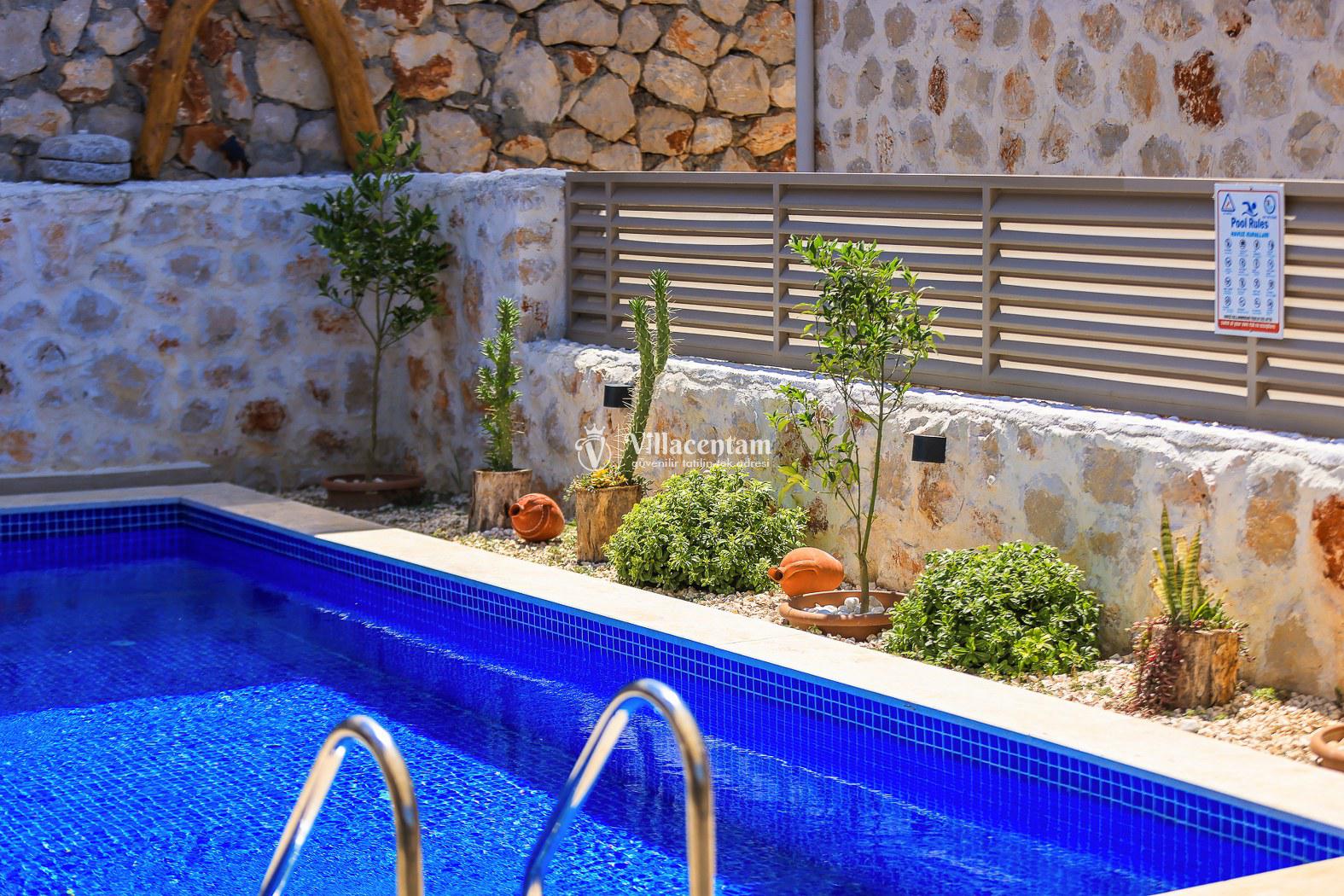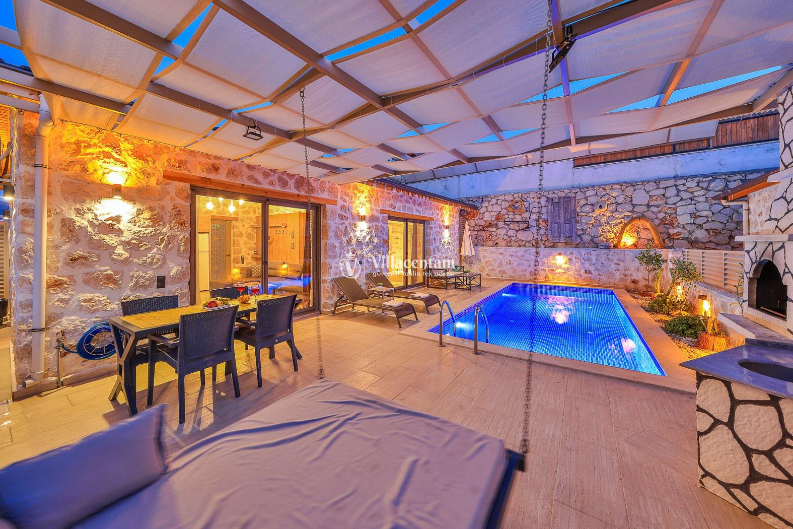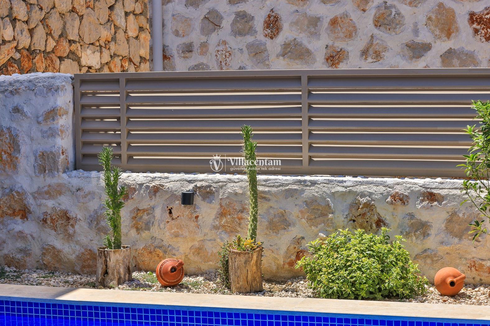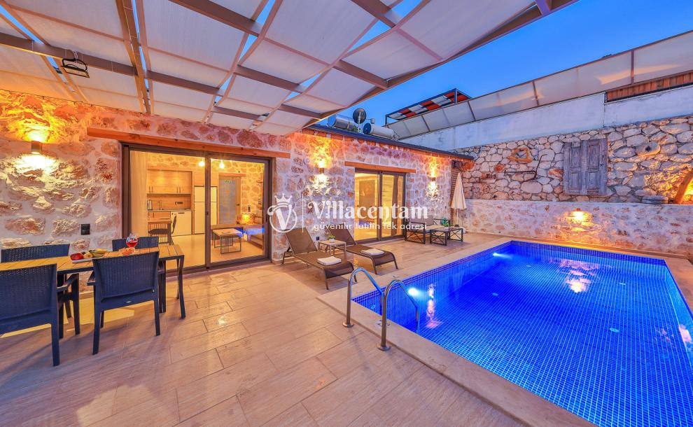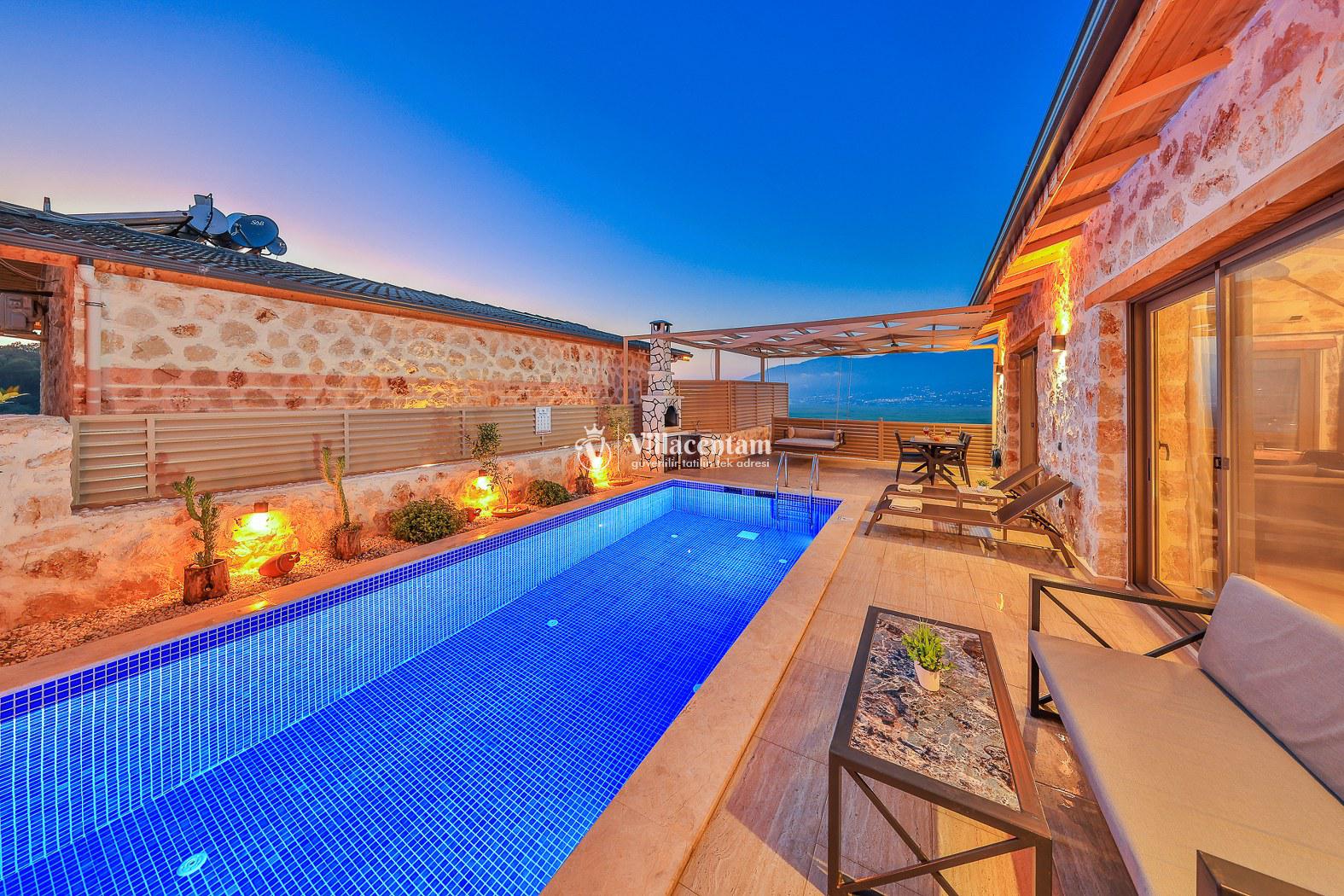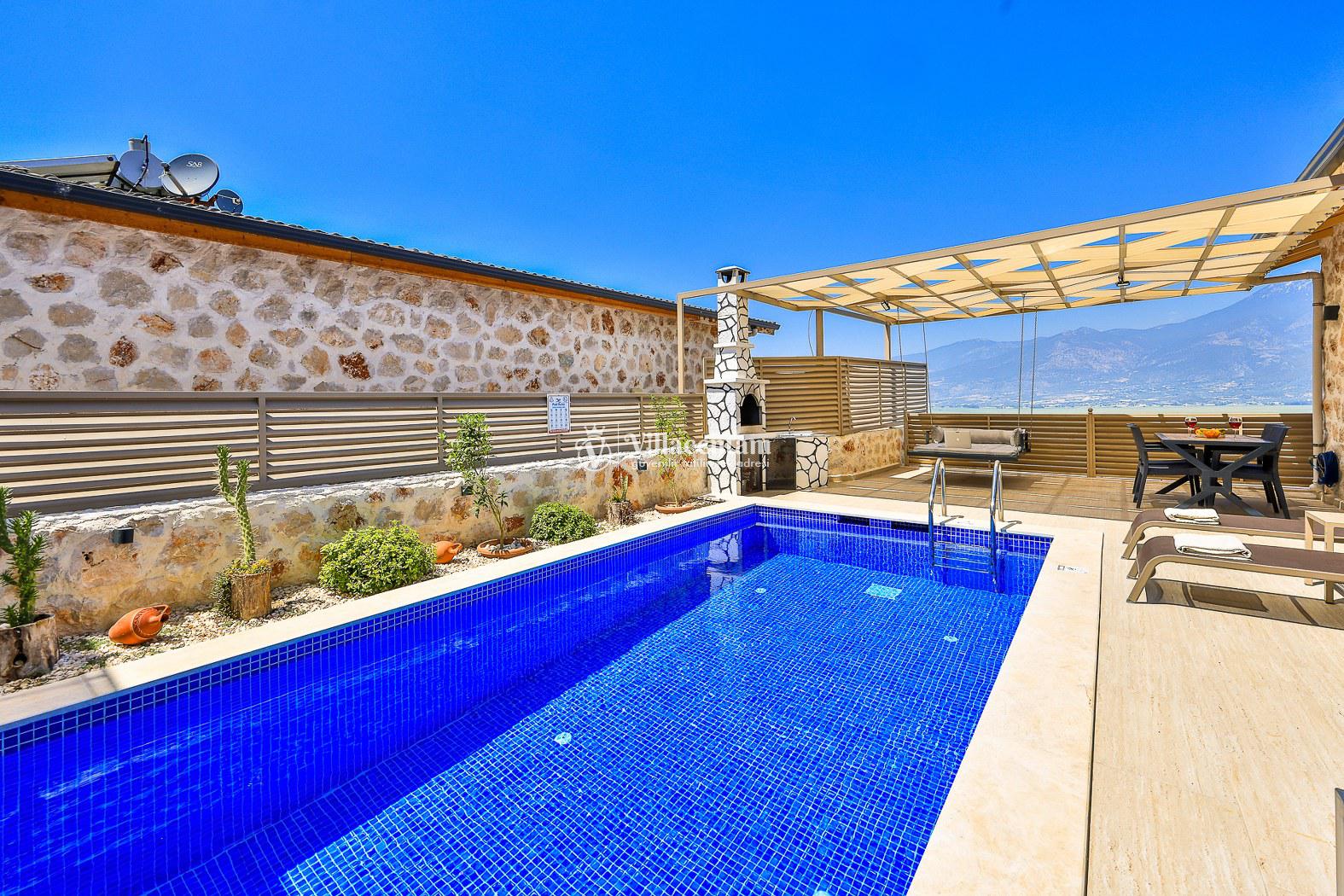 Villa Dionor, Kalkan Yeşilköy mevkiinde konumlanmakta olan yeşilliklerle kaplı doğa manzarasına hakim kiralık villalarımız arasında yer almaktadır. Modern ve konforlu bir şekilde dizayn edilen yazlık villamızda 1 adet yatak odası bulunmakta olup, 2 kişiye konaklama imkanı sağlamaktadır. Yatak odasının içerisinde tüm yılın vermiş olduğu yorgunluğu giderip, keyif yapabileceğiniz jakuzi yer almaktadır. Havuz ve havuz terası korunaklı hale getirilen kiralık villamız dışarıdan bir kimse tarafından görünmemektedir. Bu nedenle muhafazakar balayı çiftleri rahatlıkla konaklayabilirler. Sevdiklerinizle tüm gözlerden uzakta yeme içme keyfinizi en güzel hale getirebilir, havuzunuzun tadını çıkarabilirsiniz. Hayallerinizin de ötesinde unutamayacağınız bir yazlık villada tatil için Villa Dionor' u tercih edebilirsiniz.