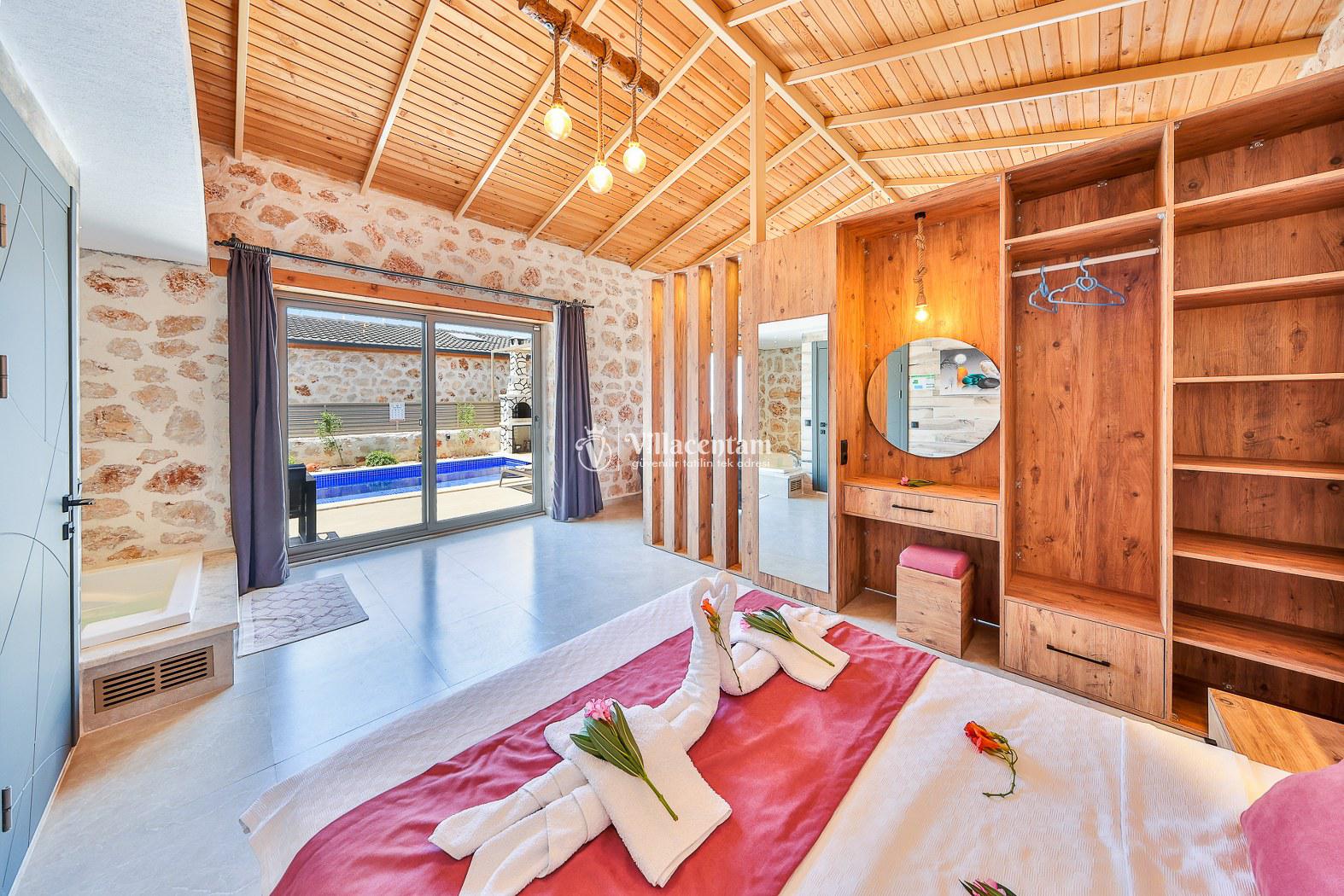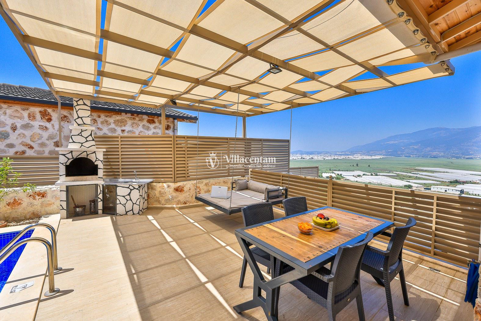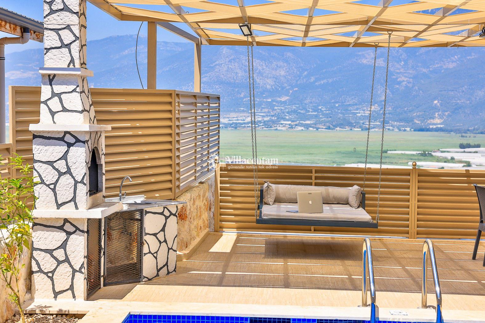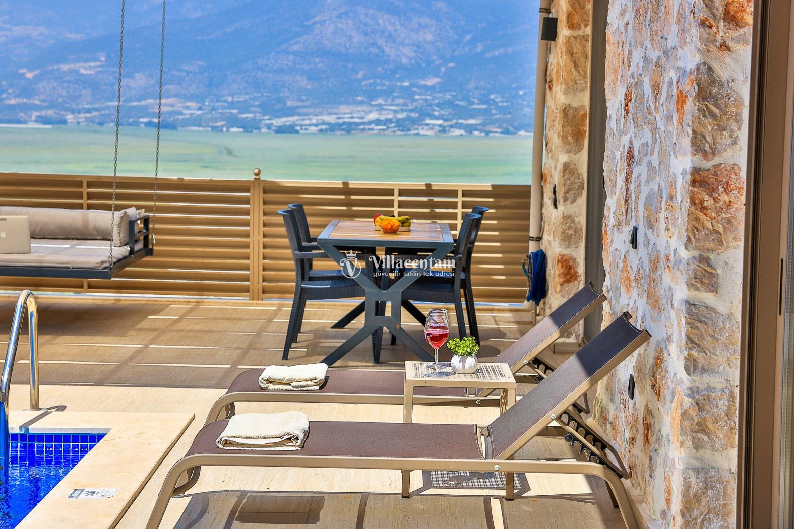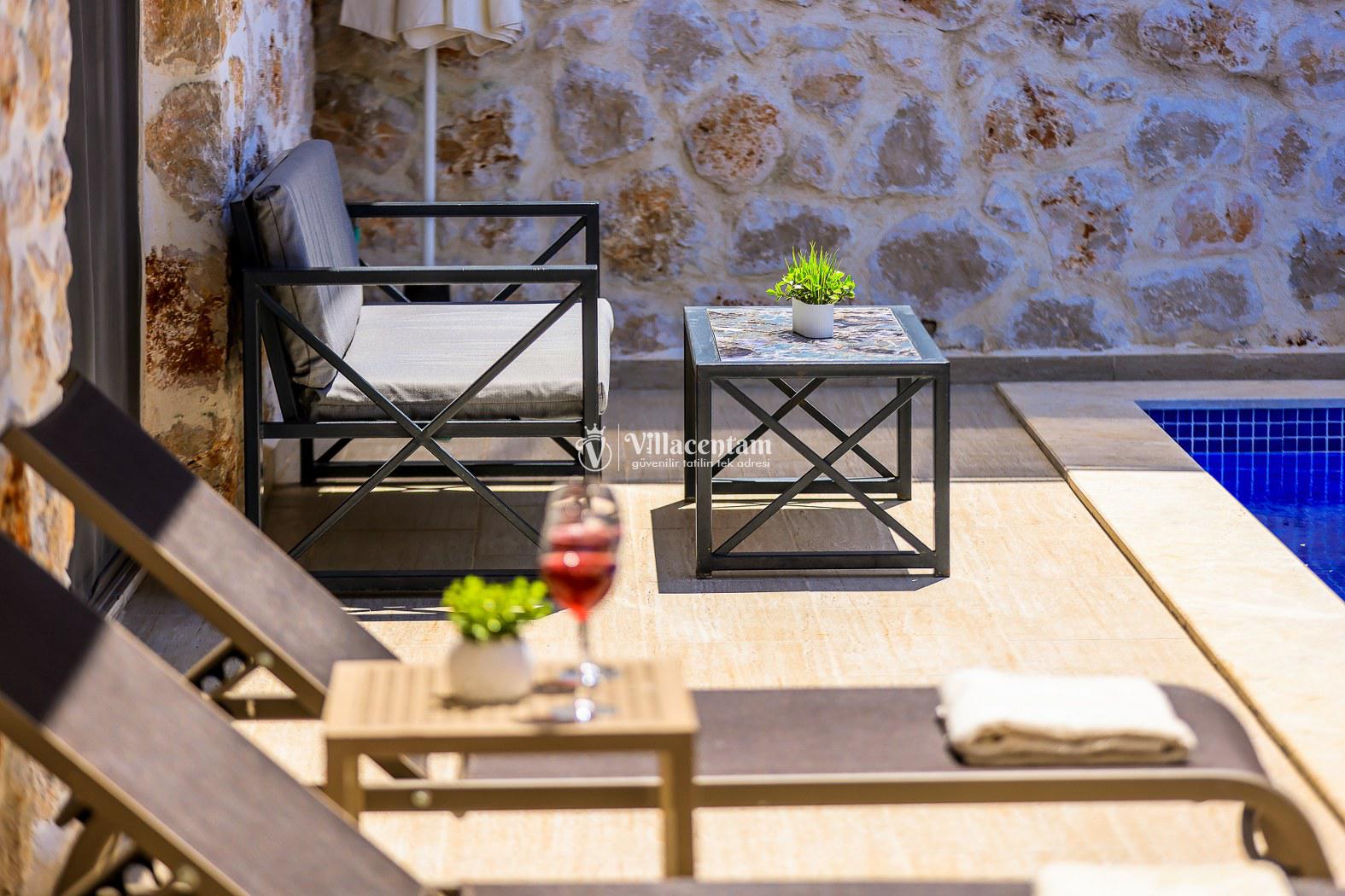 Villa Dionor, Kalkan Yeşilköy mevkiinde konumlanmakta olan yeşilliklerle kaplı doğa manzarasına hakim kiralık villalarımız arasında yer almaktadır. Modern ve konforlu bir şekilde dizayn edilen yazlık villamızda 1 adet yatak odası bulunmakta olup, 2 kişiye konaklama imkanı sağlamaktadır. Yatak odasının içerisinde tüm yılın vermiş olduğu yorgunluğu giderip, keyif yapabileceğiniz jakuzi yer almaktadır. Havuz ve havuz terası korunaklı hale getirilen kiralık villamız dışarıdan bir kimse tarafından görünmemektedir. Bu nedenle muhafazakar balayı çiftleri rahatlıkla konaklayabilirler. Sevdiklerinizle tüm gözlerden uzakta yeme içme keyfinizi en güzel hale getirebilir, havuzunuzun tadını çıkarabilirsiniz. Hayallerinizin de ötesinde unutamayacağınız bir yazlık villada tatil için Villa Dionor' u tercih edebilirsiniz.