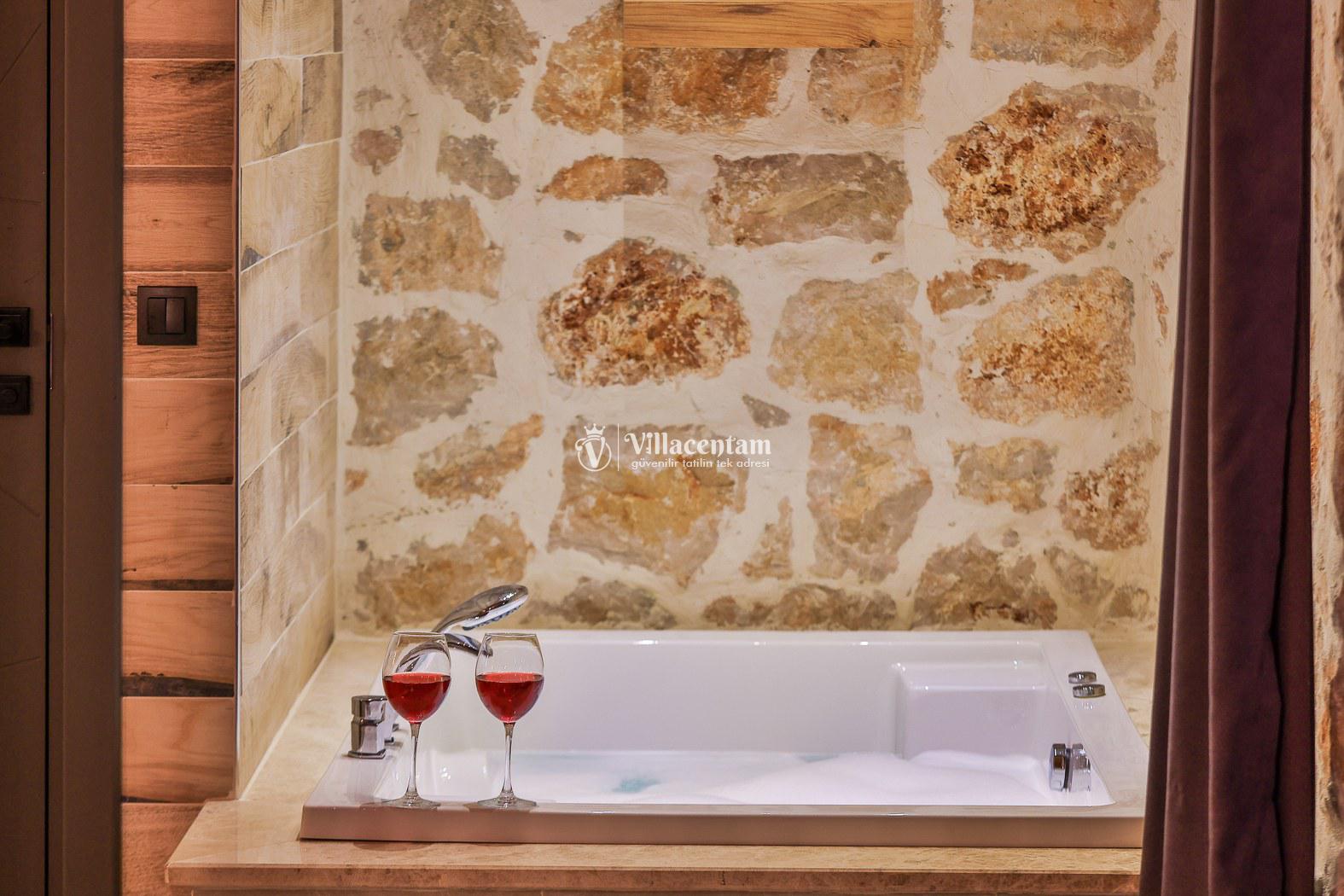 Villalarda sıcak su için güneş enerjili su ısıtma sistemleri kullanılmaktadır. Çok yoğun sıcak su kullanımında, yoğunluğa ve su tankının büyüklüğüne bağlı olarak su tankında sıcak su tükenebilmekte ve tekrar suyun ısınması için belirli bir süre geçmesi gerekmektedir. Bu not sadece bu villa ile ilgili değil, tüm villalarımız için geçerli bir durumdur