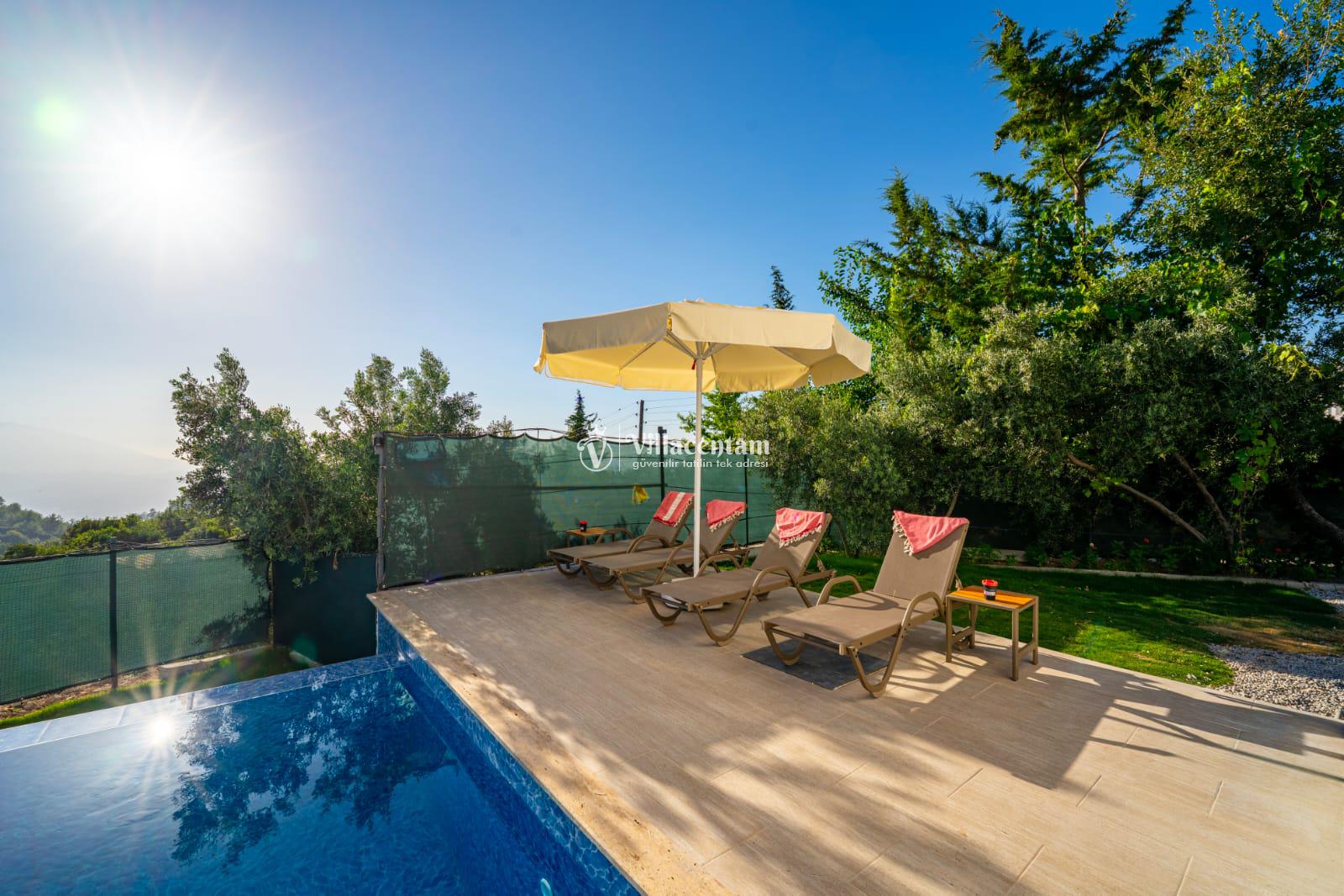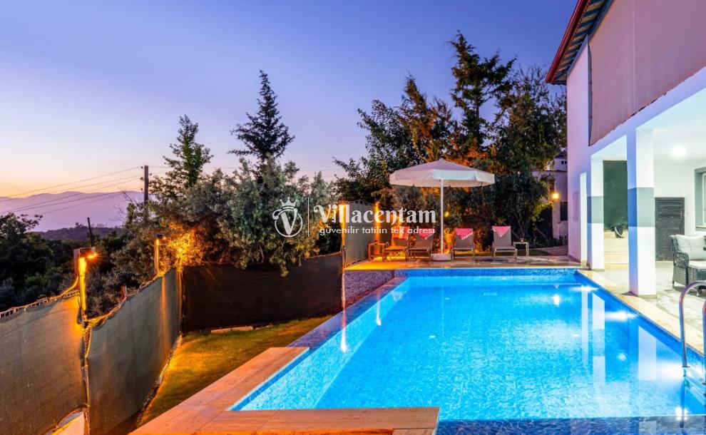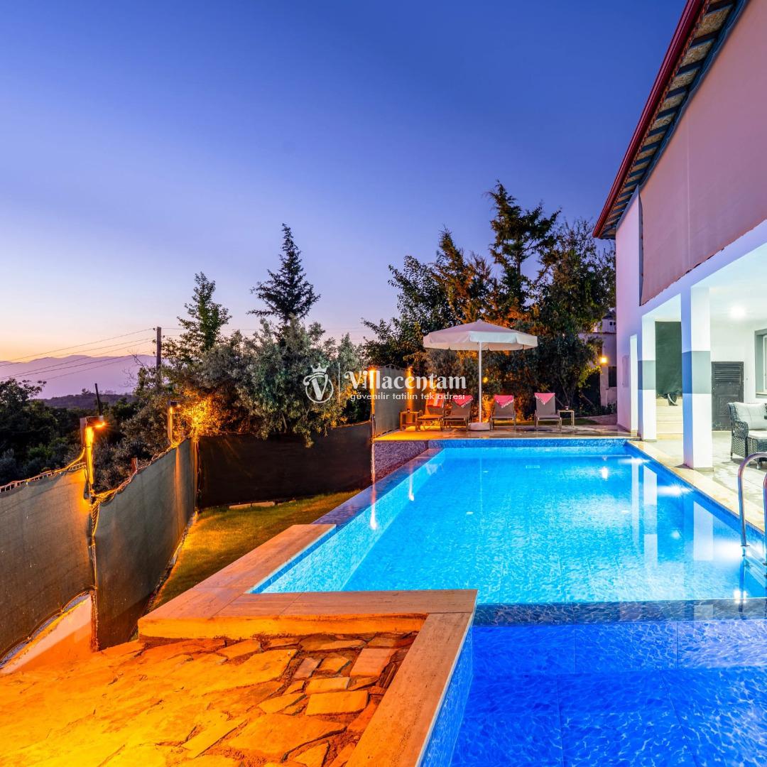 Fethiye Seydikemer Yakaköy bölgesinde konumlanan Villa Doğaç, doğa ile iç içe huzurlu atmosferi, korunaklı havuz alanı ve konforlu yapısıyla keyifli bir tatil deneyimi sunmaktadır. 2 yatak odası, 2 banyo ve 4 kişilik konaklama kapasitesine sahip olan villa; özellikle çekirdek aileler ve balayı çiftleri için ideal bir seçenek olarak öne çıkmaktadır. Sayfadaki açıklamada da havuz alanının korunaklı olduğu ve villanın muhafazakâr tatil konseptine uygun olduğu belirtilmektedir.