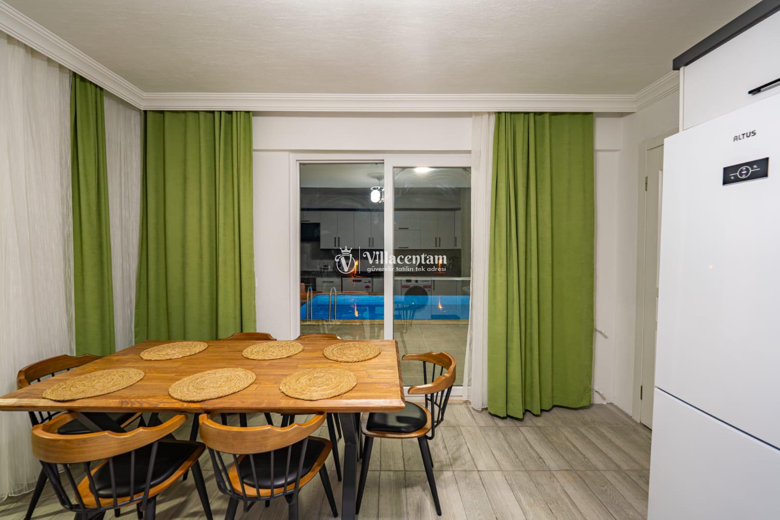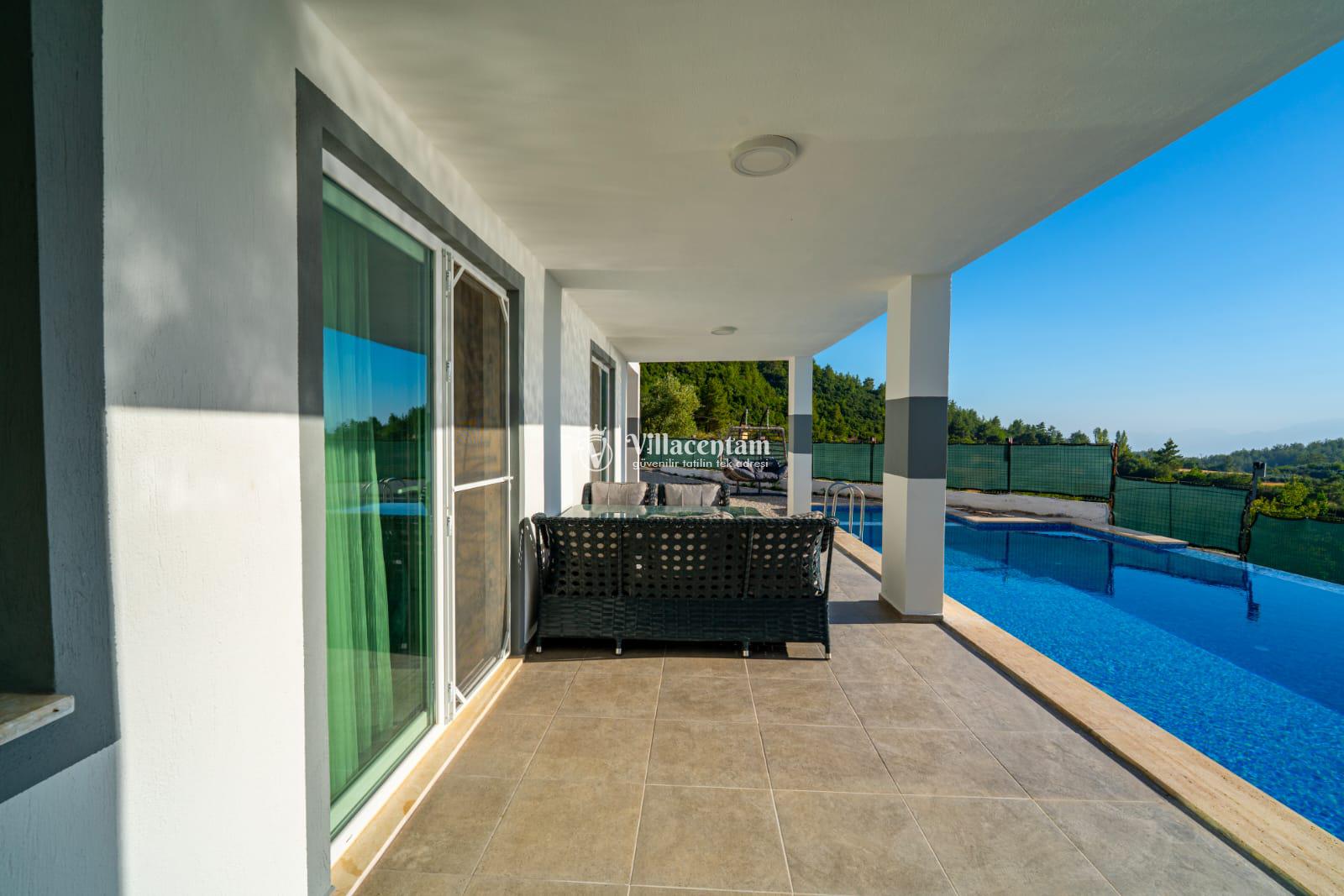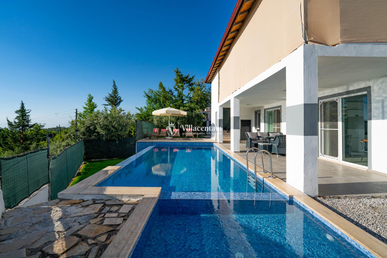 Fethiye Seydikemer Yakaköy bölgesinde konumlanan Villa Doğaç, doğa ile iç içe huzurlu atmosferi, korunaklı havuz alanı ve konforlu yapısıyla keyifli bir tatil deneyimi sunmaktadır. 2 yatak odası, 2 banyo ve 4 kişilik konaklama kapasitesine sahip olan villa; özellikle çekirdek aileler ve balayı çiftleri için ideal bir seçenek olarak öne çıkmaktadır. Sayfadaki açıklamada da havuz alanının korunaklı olduğu ve villanın muhafazakâr tatil konseptine uygun olduğu belirtilmektedir.