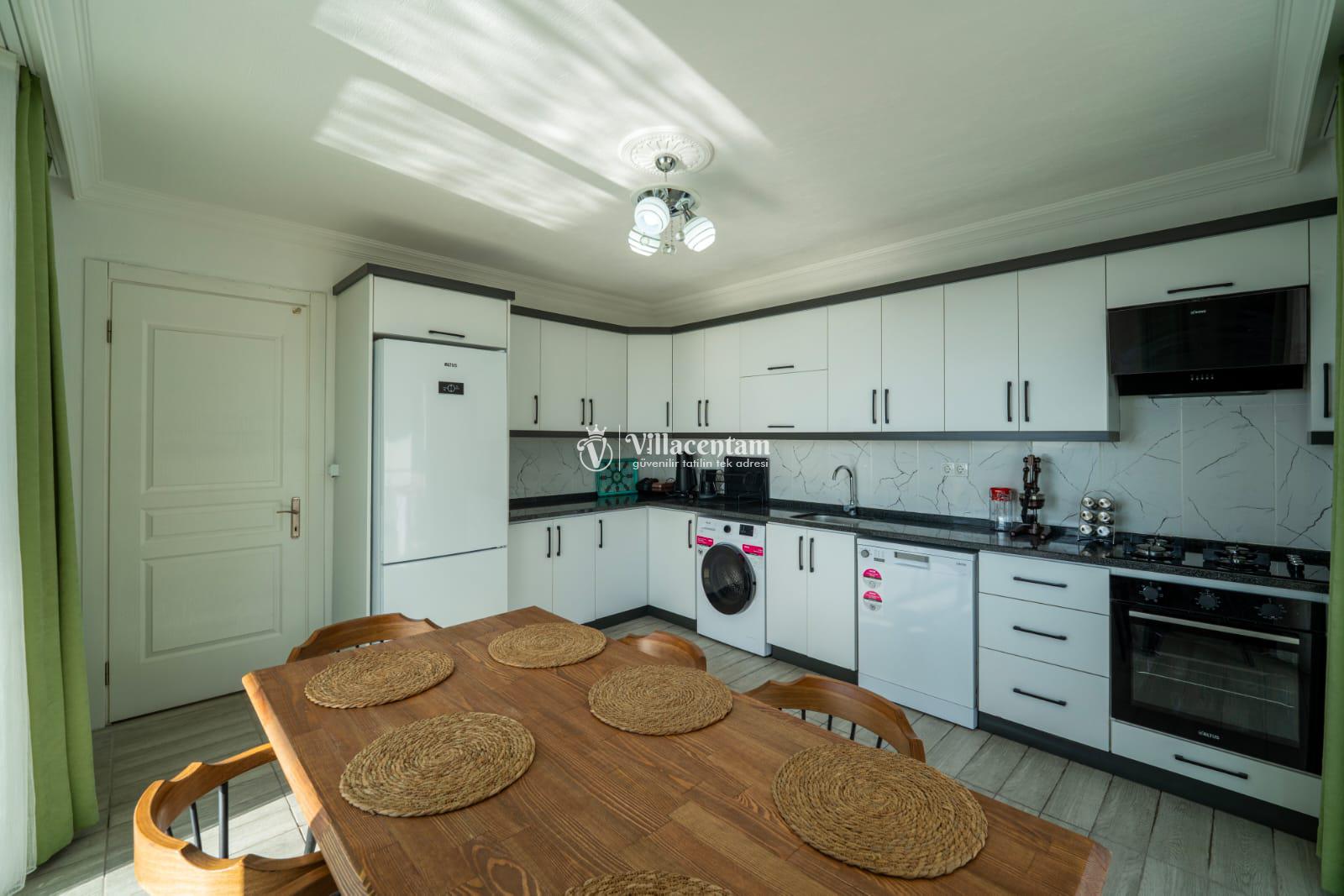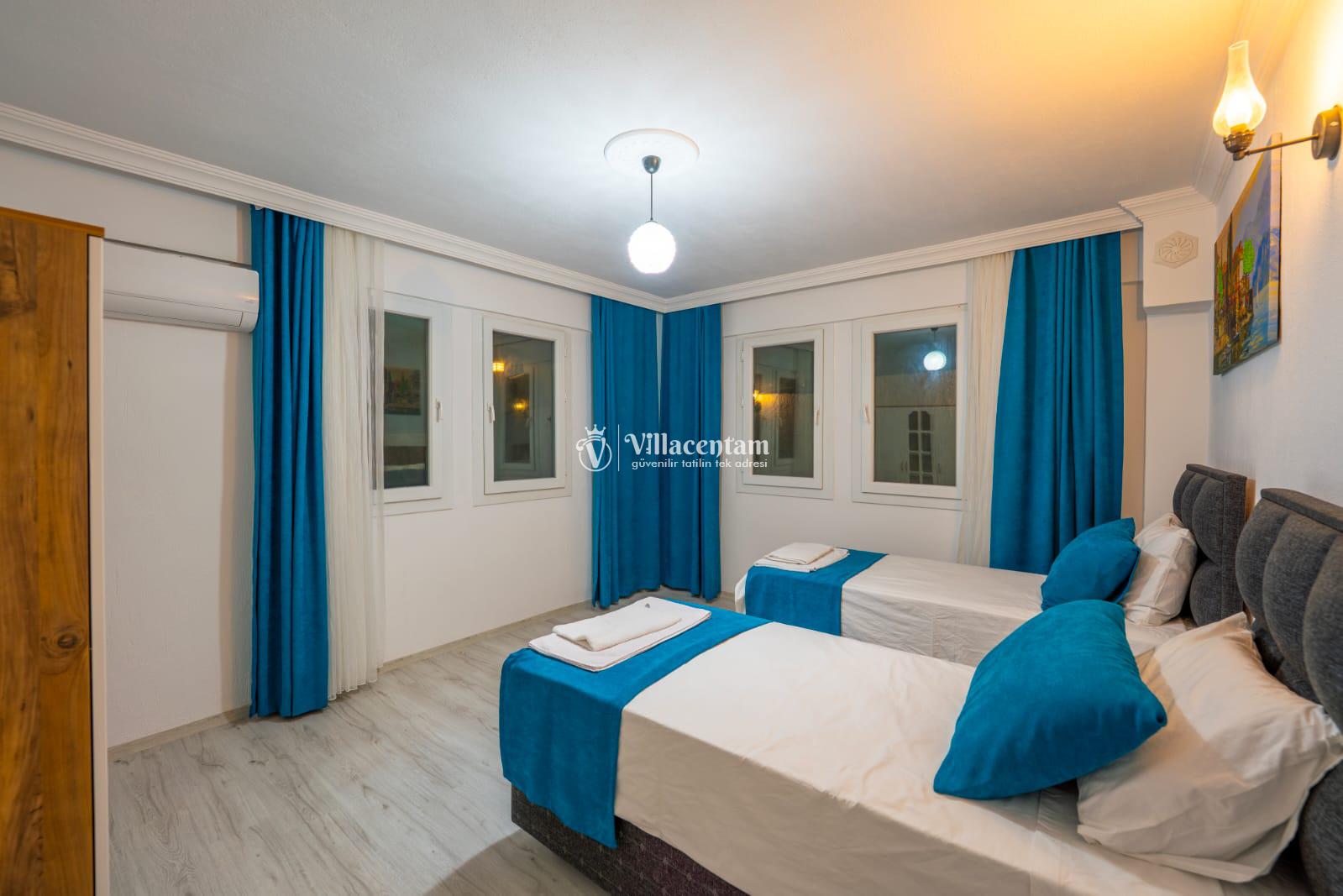 Zevkle döşenmiş oturma alanı, havuz terasına açılan ferah yaşam alanı ve tam donanımlı mutfağı sayesinde Villa Doğaç, misafirlerine hem rahat hem de kullanışlı bir konaklama sunar. Bir yatak odasında çift kişilik yatak ve ebeveyn banyosu, diğer yatak odasında ise iki tek kişilik yatak ve banyo bulunması, villayı aileler için oldukça işlevsel hale getirmektedir. Ayrıca doğa manzaralı yapısı ve çocuk havuzu ile tatil boyunca hem dinlenme hem de ailece keyifli vakit geçirme imkânı sağlamaktadır.