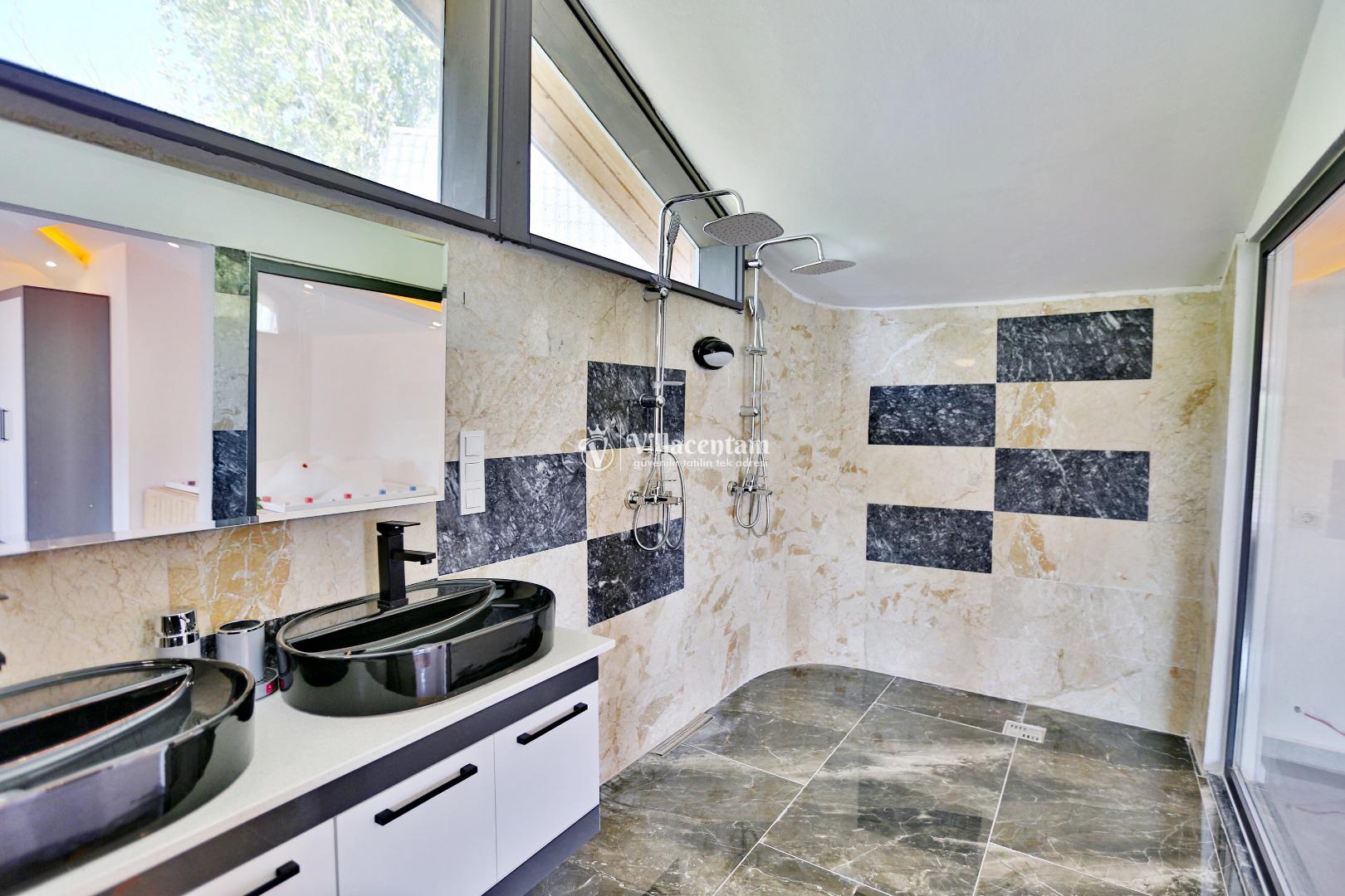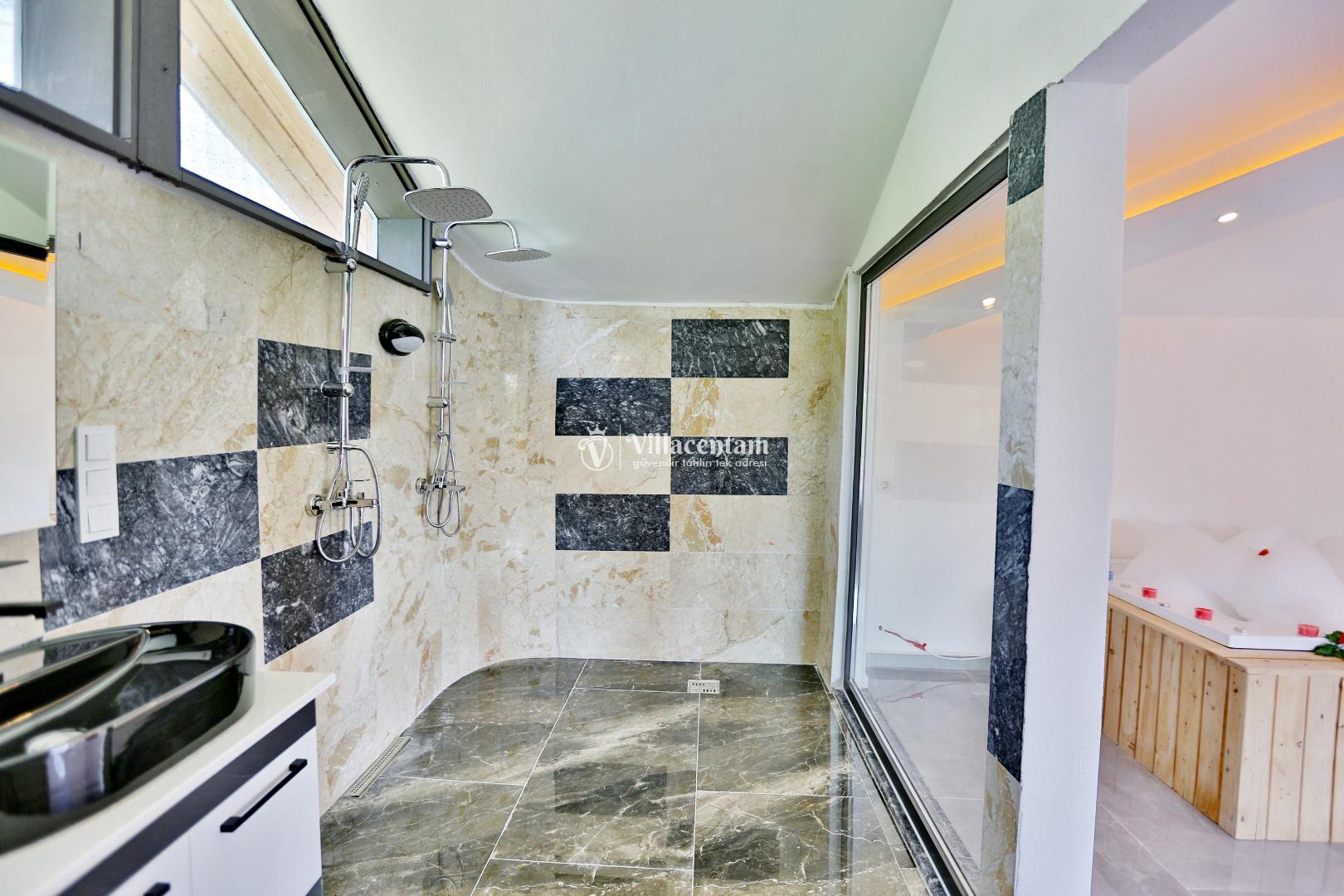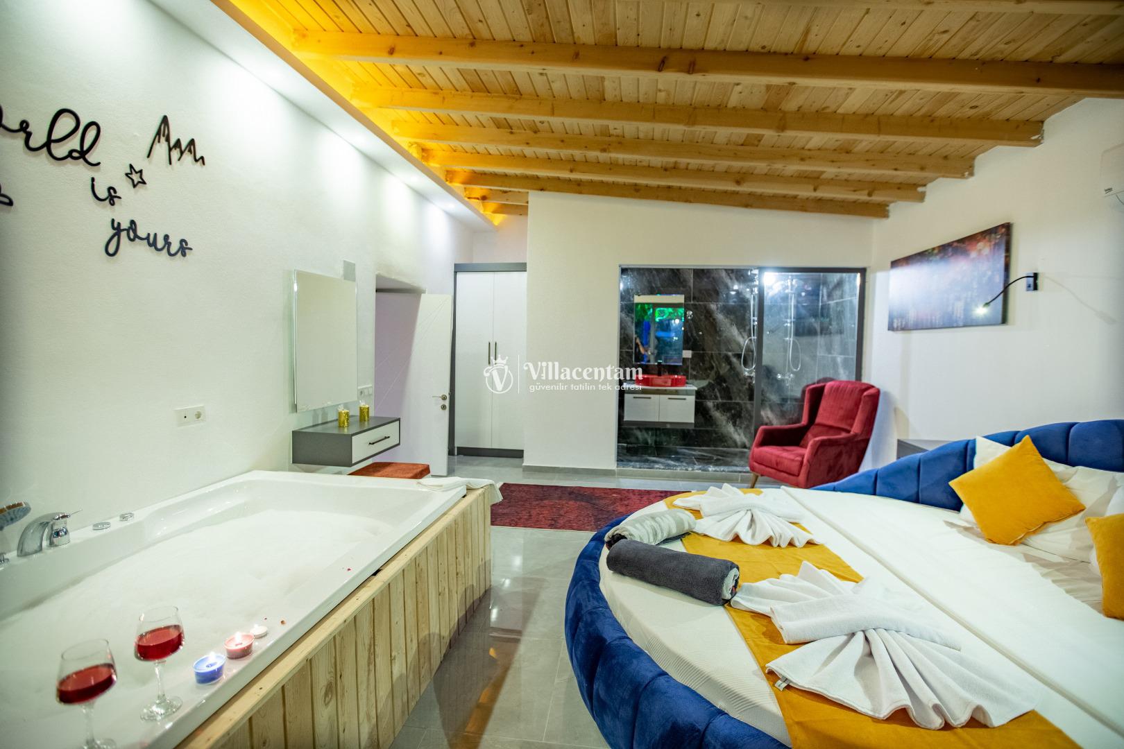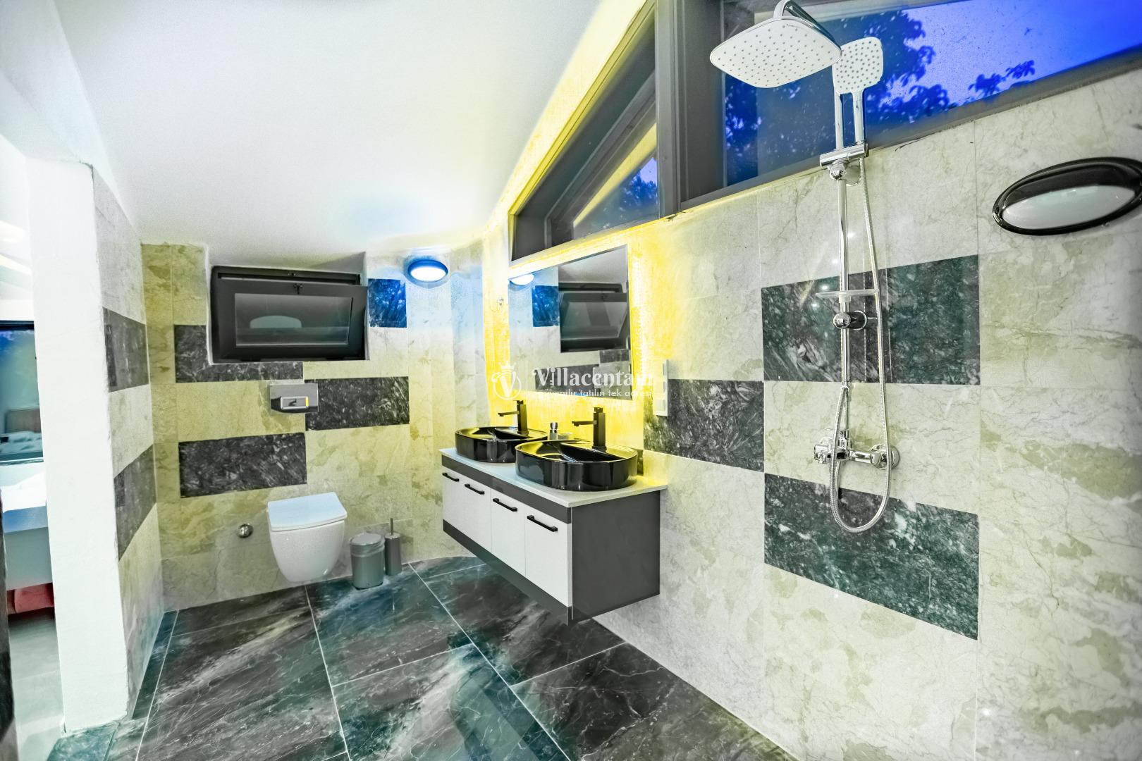 *Villalarda sıcak su için güneş enerjili su ısıtma sistemleri kullanılmaktadır. Çok yoğun sıcak su kullanımında, yoğunluğa ve su tankının büyüklüğüne bağlı olarak su tankında sıcak su tükenebilmekte ve tekrar suyun ısınması için belirli bir süre geçmesi gerekmektedir. Bu not sadece bu villa ile ilgili değil, tüm villalarımız için geçerli bir durumdur.