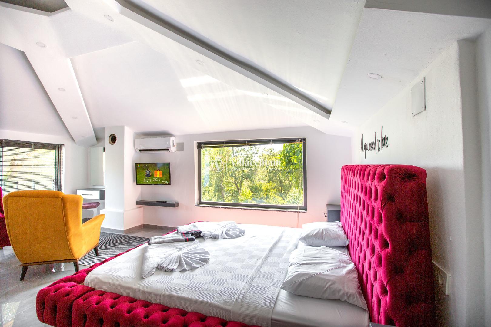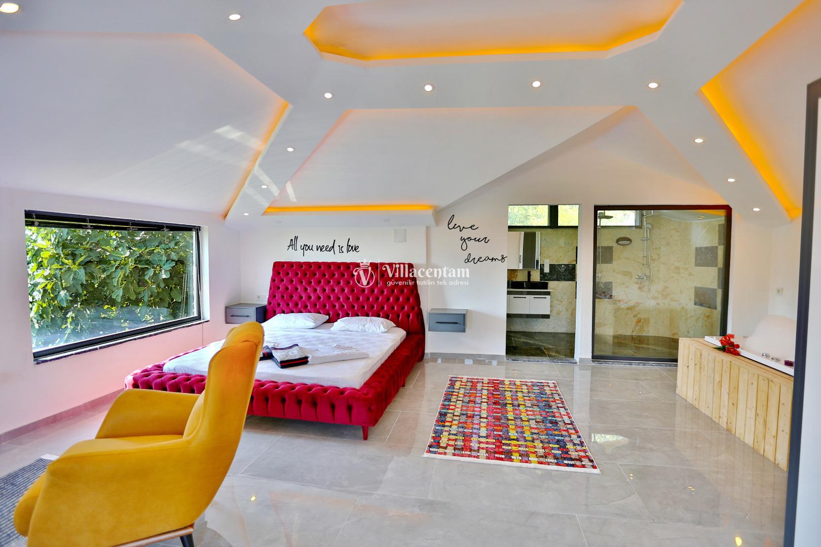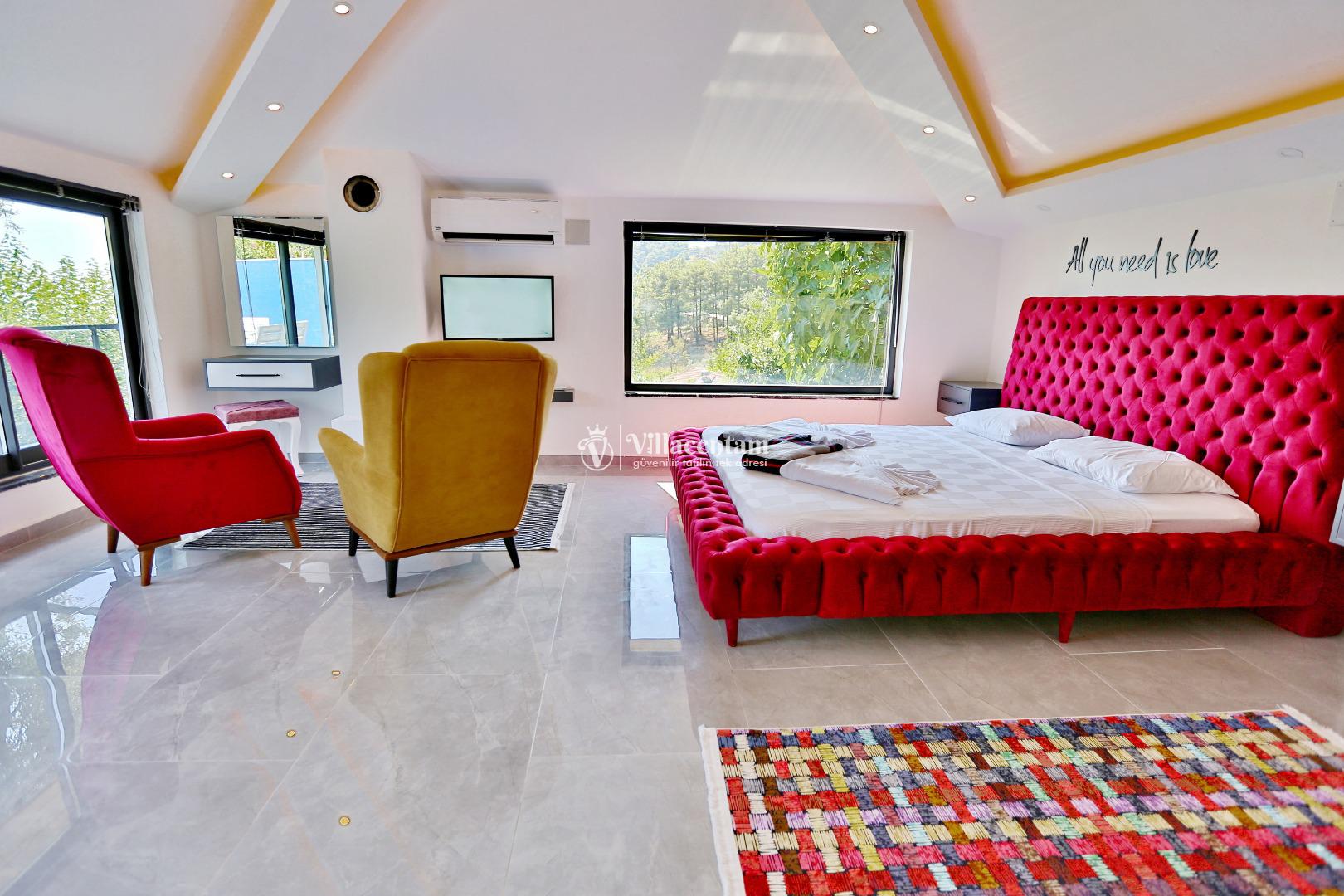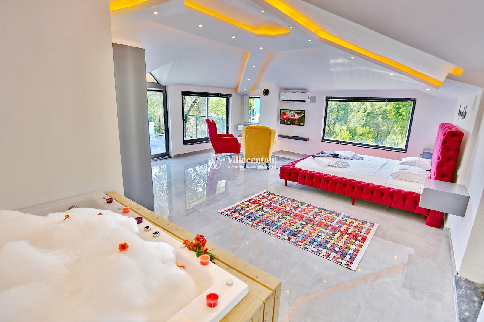 *Villalarda sıcak su için güneş enerjili su ısıtma sistemleri kullanılmaktadır. Çok yoğun sıcak su kullanımında, yoğunluğa ve su tankının büyüklüğüne bağlı olarak su tankında sıcak su tükenebilmekte ve tekrar suyun ısınması için belirli bir süre geçmesi gerekmektedir. Bu not sadece bu villa ile ilgili değil, tüm villalarımız için geçerli bir durumdur.