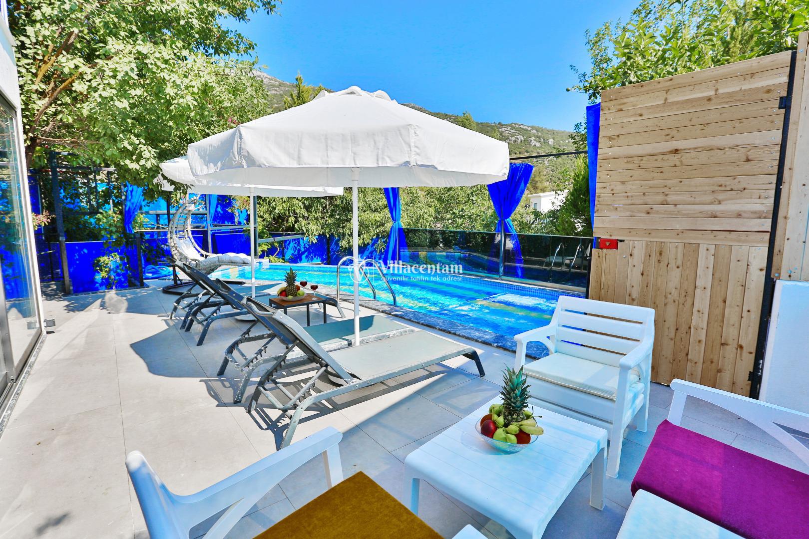 Villa Dorelli, Antalya’nın gözde tatil destinasyonlarından Kalkan’da konumlanan, modern mimarisi ve konforlu yaşam alanlarıyla öne çıkan özel bir tatil villasıdır. Şık ve ferah tasarlanan iç mekânları, tatil boyunca ihtiyaç duyabileceğiniz tüm konfor unsurlarını bir arada sunarken; açık plan salon ve donanımlı mutfak alanı keyifli ve rahat bir konaklama deneyimi sağlar. Villanın özenle düzenlenmiş yatak odaları huzurlu bir uyku ortamı sunarken, dış alanda yer alan özel yüzme havuzu, güneşlenme alanları ve oturma köşeleri gün boyu tatilin tadını çıkarmanıza imkân tanır. Sessiz ve sakin konumu sayesinde şehir kalabalığından uzak, dinlendirici bir atmosfer sunan Villa Dorelli, hem aileler hem de arkadaş grupları için keyifli, konforlu ve unutulmaz bir villa tatili arayan misafirler adına ideal bir tercihtir.