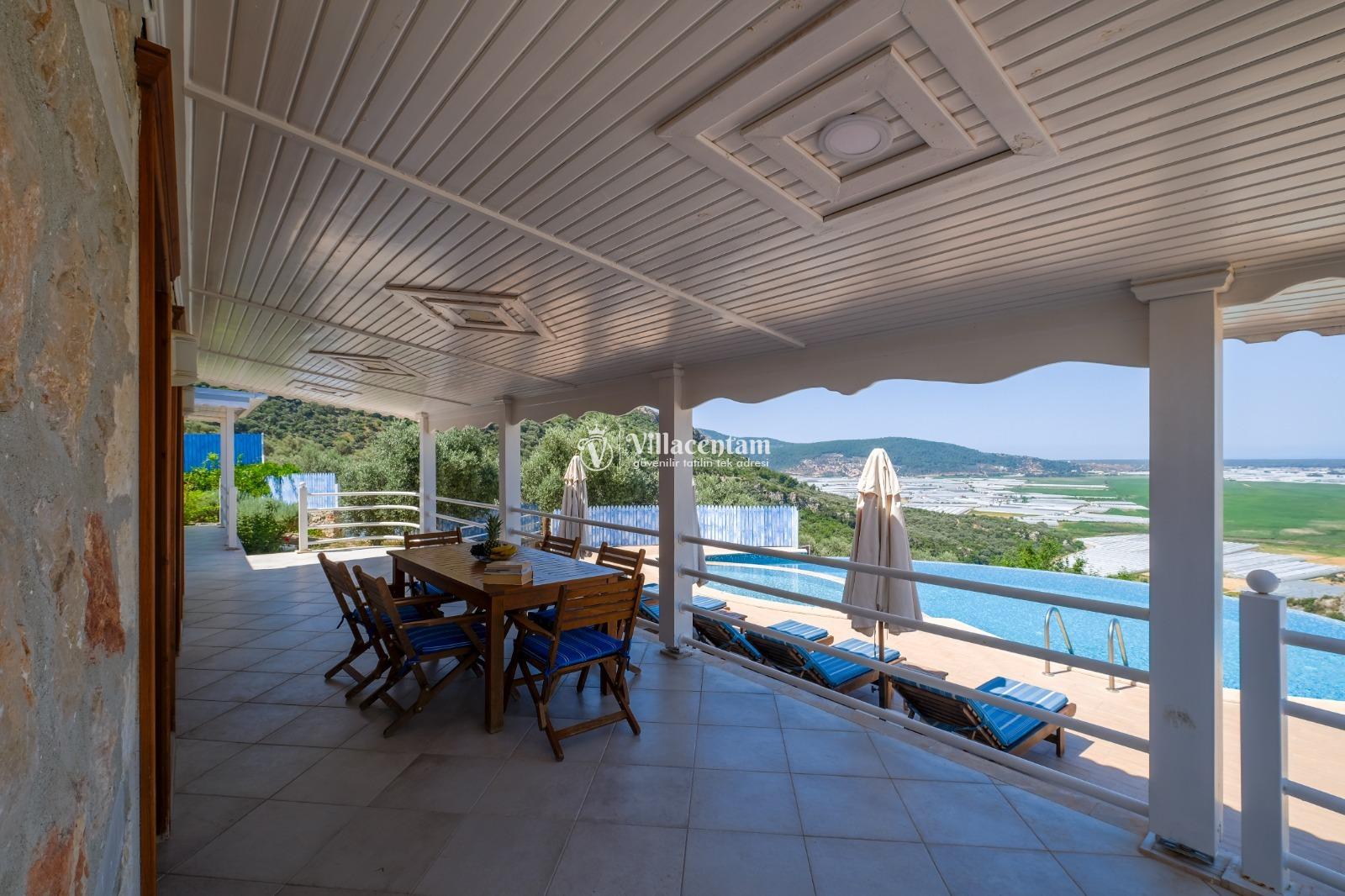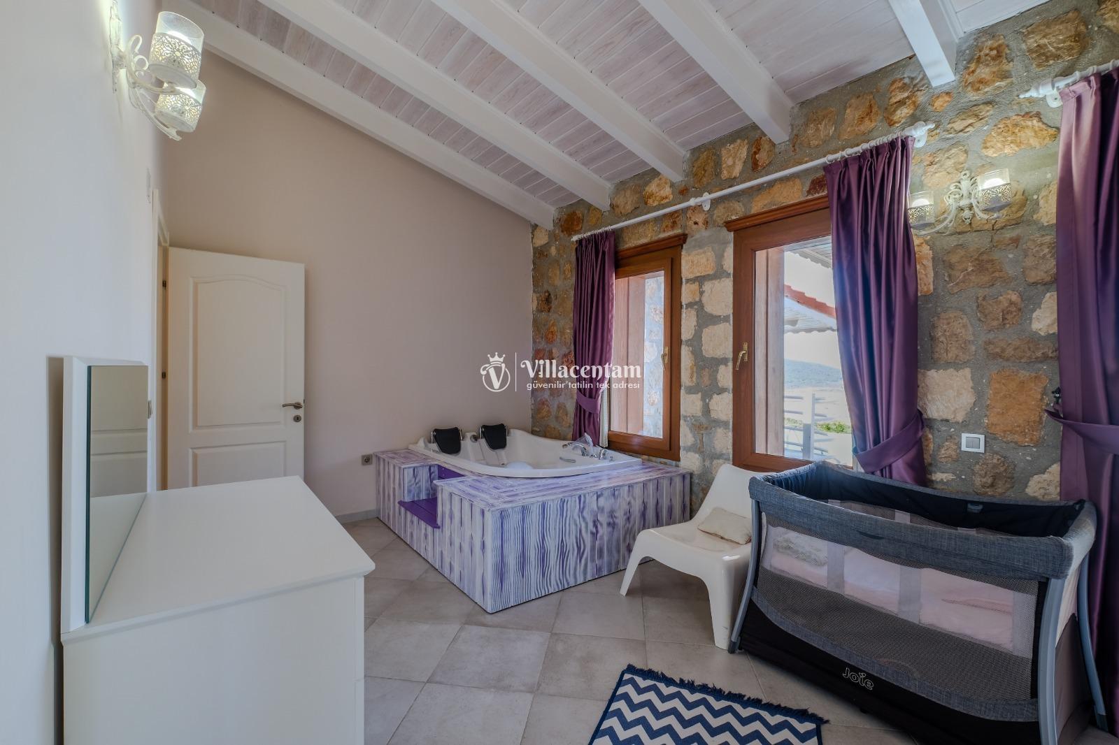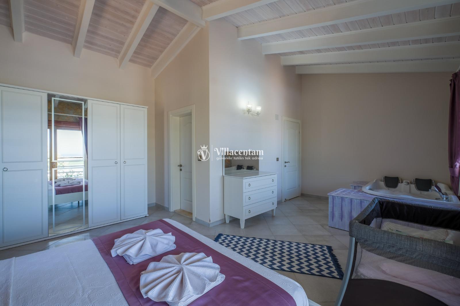 Muhafazakâr aileler için uygun şekilde tasarlanan korunaklı özel havuz alanı, misafirlerine gözlerden uzak ve rahat bir tatil imkânı sunarken; jakuzili ebeveyn odası da konaklamaya ekstra konfor katmaktadır. Geniş bahçesi, özel yüzme havuzu, çocuk havuzu ve kullanışlı dış yaşam alanları sayesinde tatil boyunca hem dinlenebilir hem de sevdiklerinizle keyifli vakit geçirebilirsiniz.