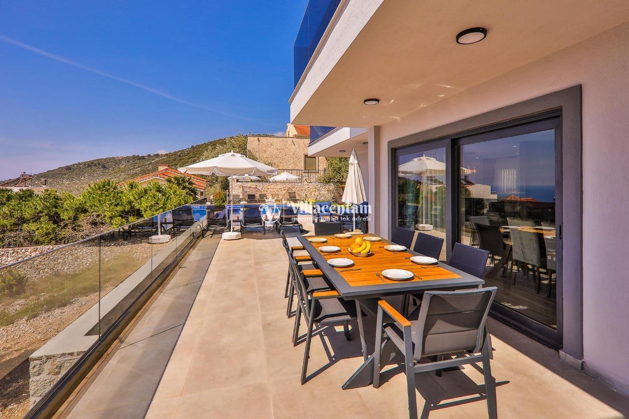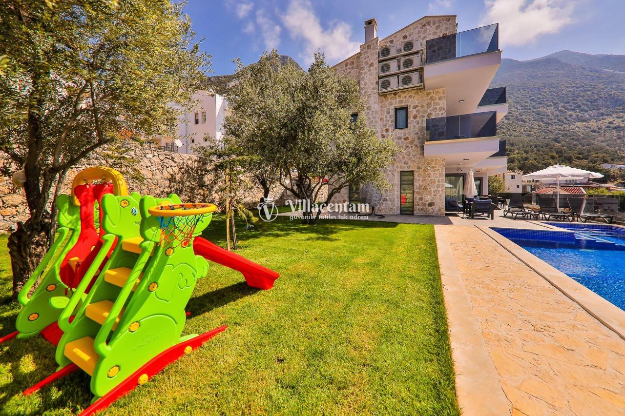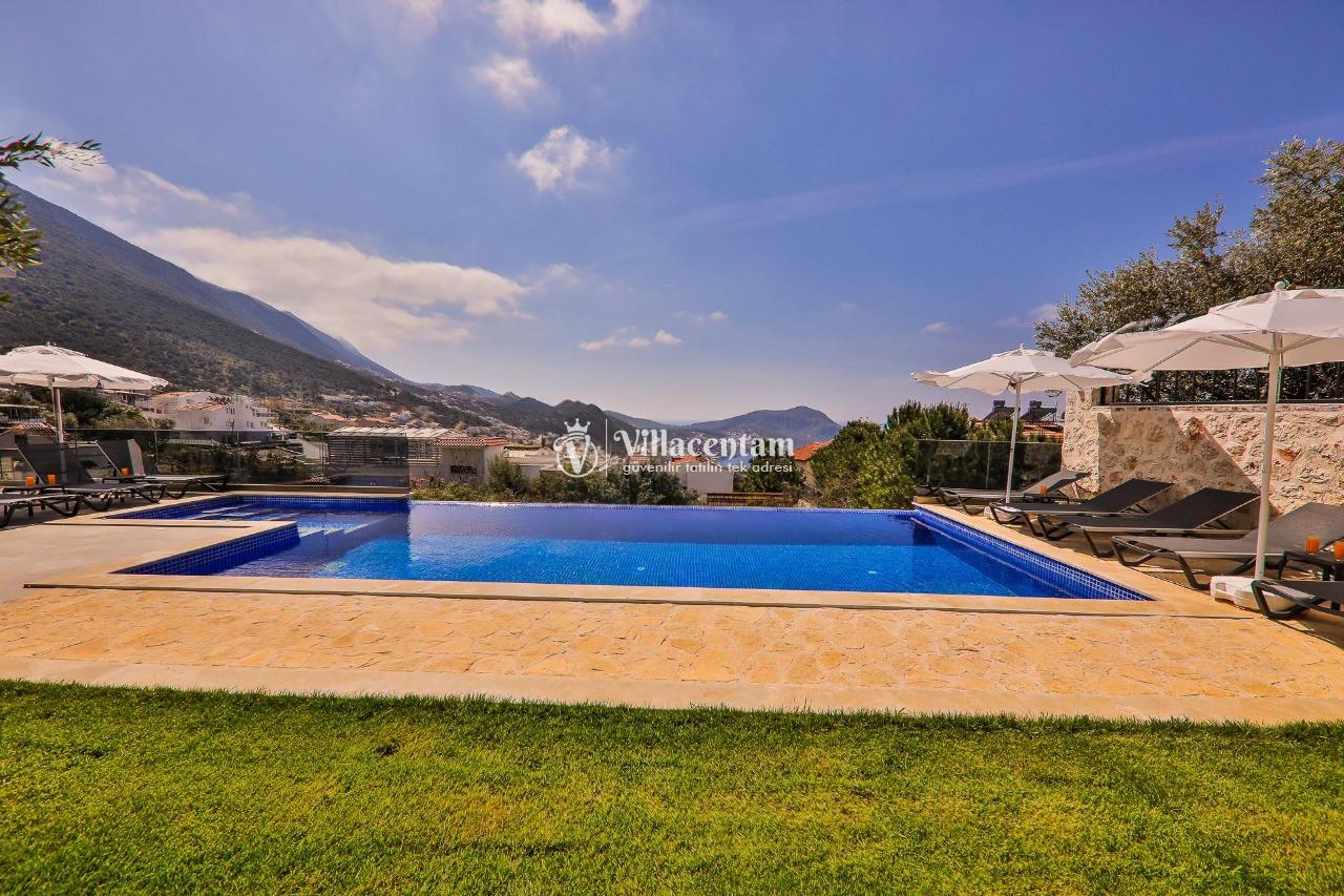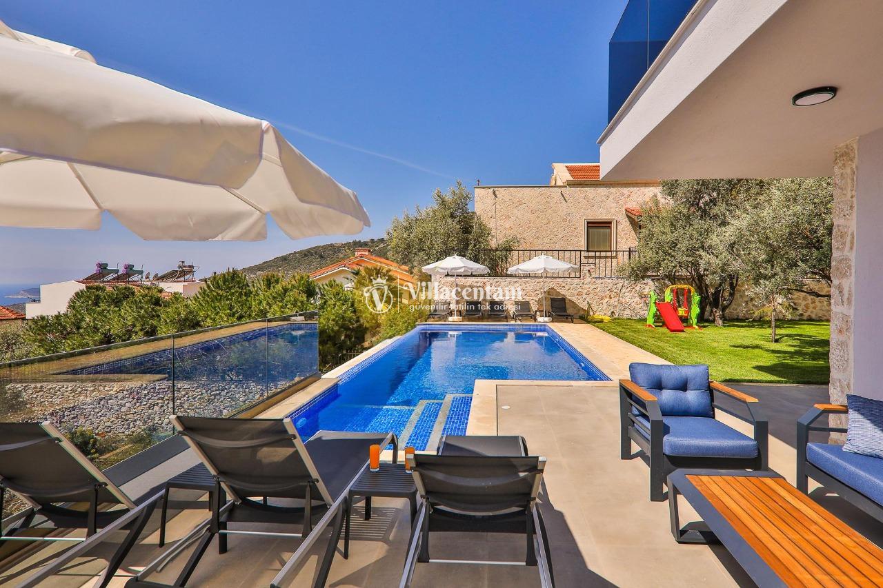 Villa Dream Exclusive, Kalkan’ın Kızıltaş mevkiinde konumlanan, panoramik deniz ve doğa manzarasıyla öne çıkan lüks bir tatil villasıdır. 10 kişilik konaklama kapasitesi, 5 yatak odası ve 6 banyosu ile geniş aileler ve kalabalık arkadaş grupları için son derece konforlu bir seçenek sunar. Villada özel yüzme havuzu, havuz içi jakuzi, sauna ve Türk hamamı gibi ayrıcalıklı detaylar bulunurken; çocuk havuzu, çocuk oyun alanı ve masa tenisi gibi özellikler de tatilinizi daha keyifli hale getirir. Özellikle kalabalık aileler için ideal yapısıyla öne çıkan Villa Dream Exclusive, ferah yaşam alanları, deniz manzaralı atmosferi ve merkeze yakın konumuyla hem dinlenmek hem de konforlu bir Kalkan tatili yaşamak isteyen misafirler için oldukça cazip bir alternatiftir. Ayrıca bodrum katta yer alan çift kişilik yatak odası, hamam, sauna, duş ve WC’nin ayrı girişe sahip olması, villaya ekstra kullanım kolaylığı kazandırır.