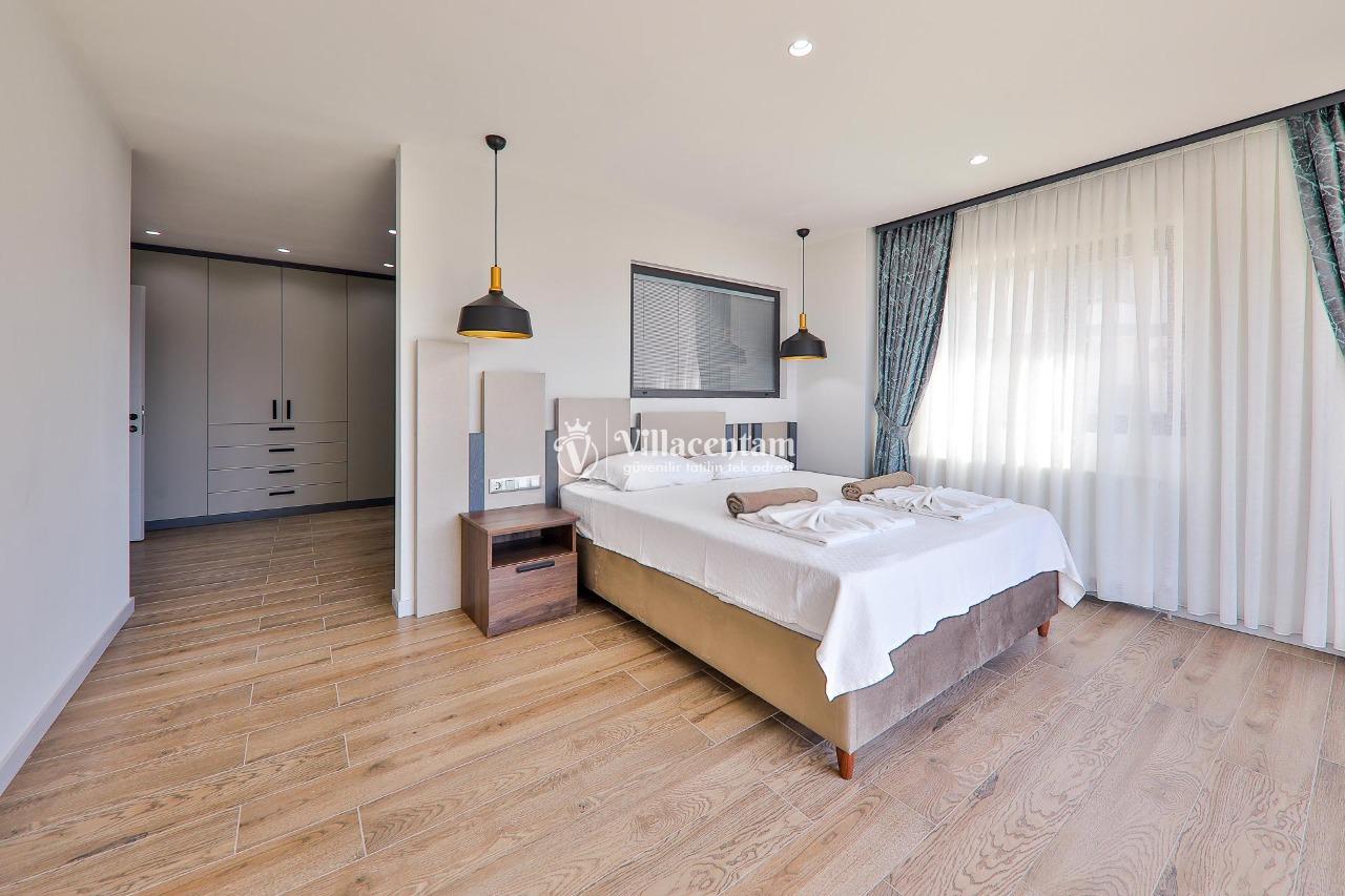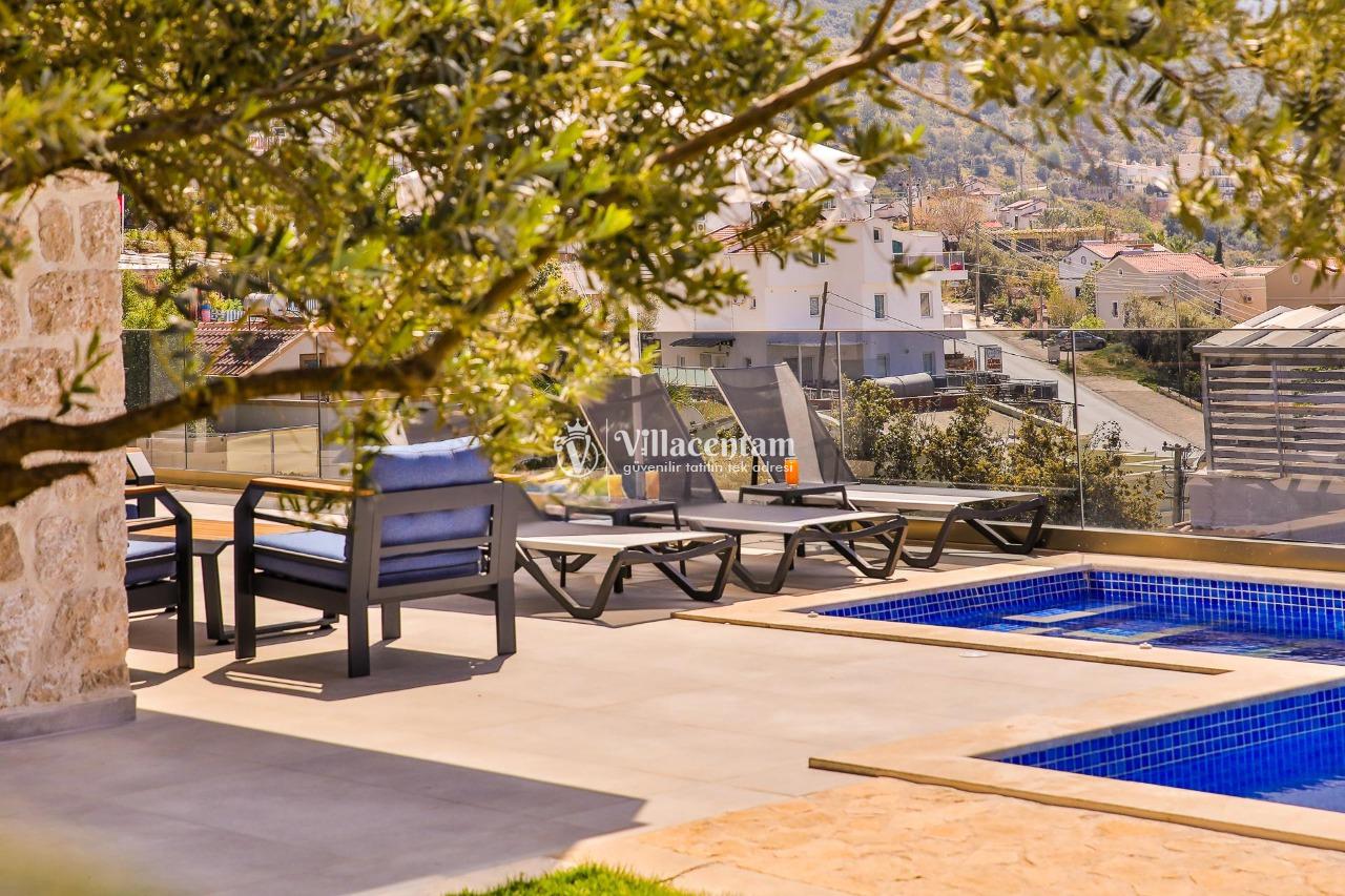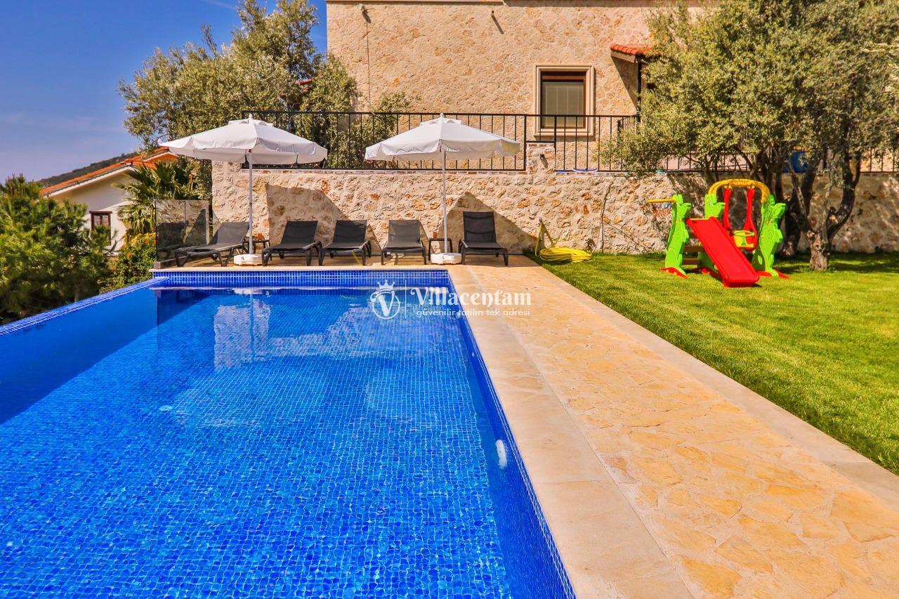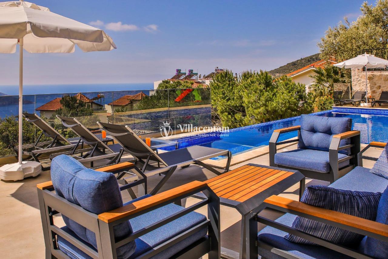 Villa Dream Exclusive, Kalkan’ın Kızıltaş mevkiinde konumlanan, panoramik deniz ve doğa manzarasıyla öne çıkan lüks bir tatil villasıdır. 10 kişilik konaklama kapasitesi, 5 yatak odası ve 6 banyosu ile geniş aileler ve kalabalık arkadaş grupları için son derece konforlu bir seçenek sunar. Villada özel yüzme havuzu, havuz içi jakuzi, sauna ve Türk hamamı gibi ayrıcalıklı detaylar bulunurken; çocuk havuzu, çocuk oyun alanı ve masa tenisi gibi özellikler de tatilinizi daha keyifli hale getirir. Özellikle kalabalık aileler için ideal yapısıyla öne çıkan Villa Dream Exclusive, ferah yaşam alanları, deniz manzaralı atmosferi ve merkeze yakın konumuyla hem dinlenmek hem de konforlu bir Kalkan tatili yaşamak isteyen misafirler için oldukça cazip bir alternatiftir. Ayrıca bodrum katta yer alan çift kişilik yatak odası, hamam, sauna, duş ve WC’nin ayrı girişe sahip olması, villaya ekstra kullanım kolaylığı kazandırır.