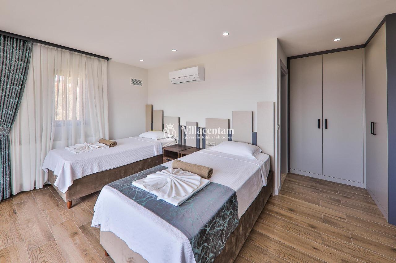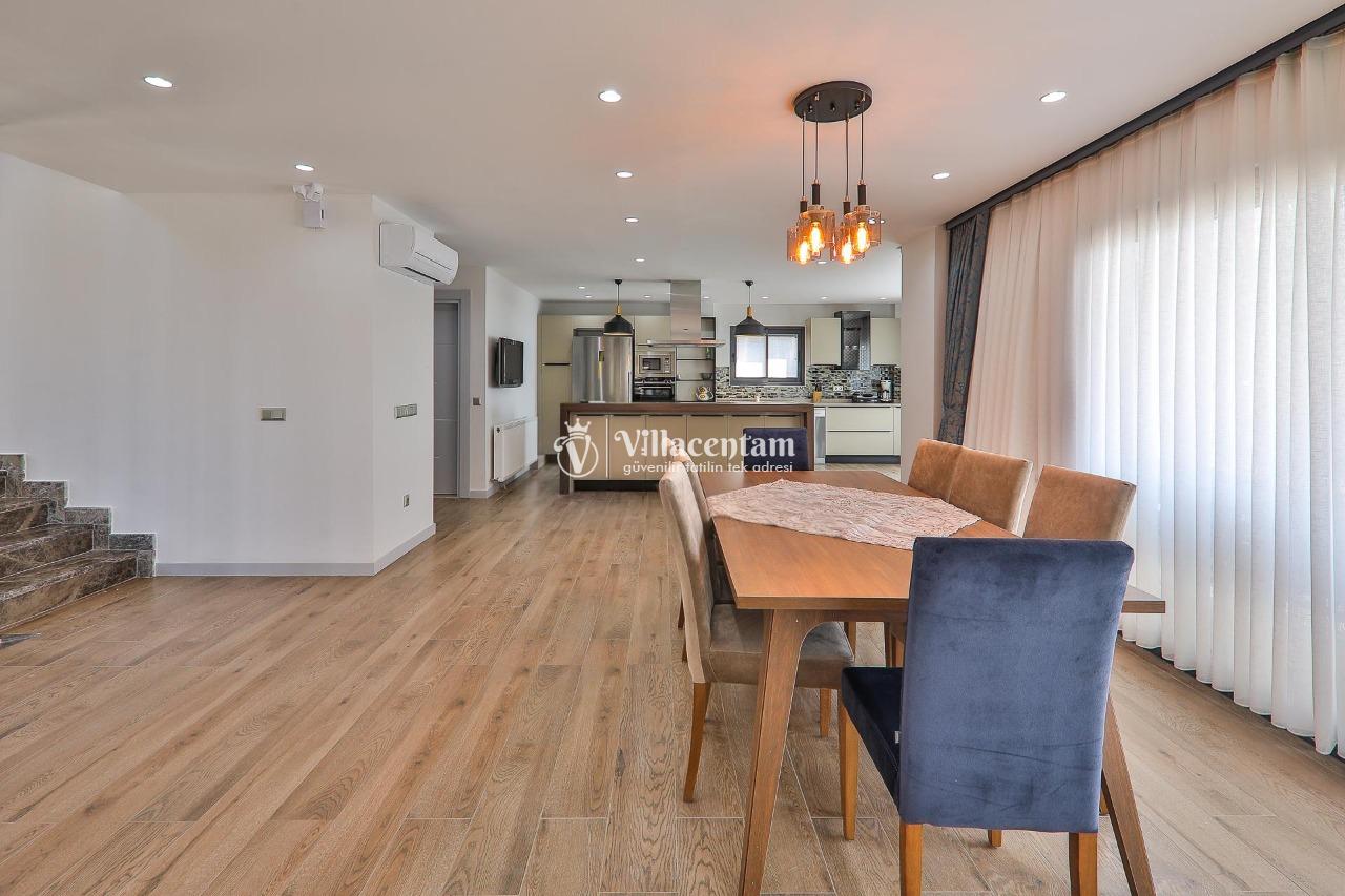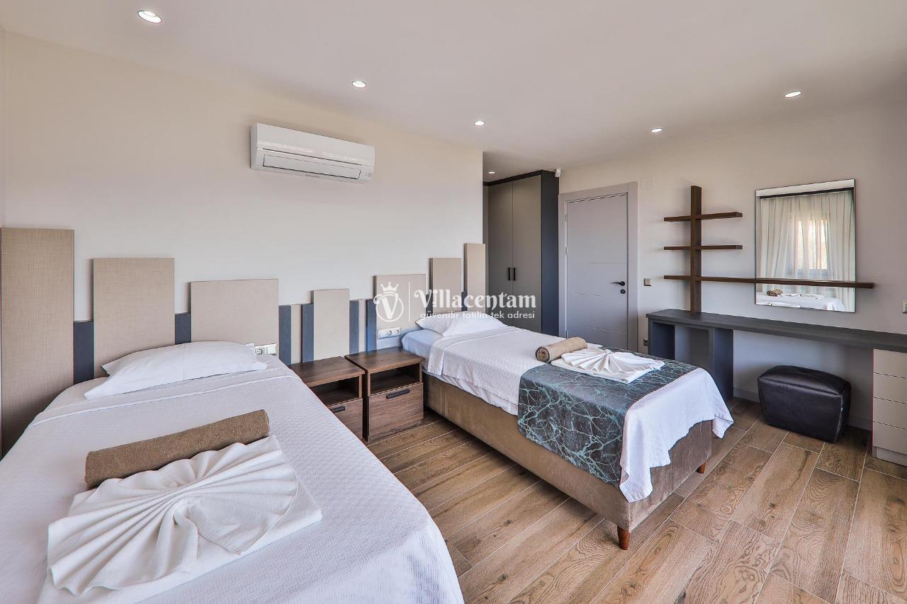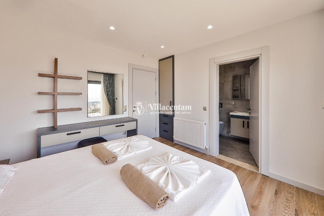 Villa Dream Exclusive, Kalkan’ın Kızıltaş mevkiinde konumlanan, panoramik deniz ve doğa manzarasıyla öne çıkan lüks bir tatil villasıdır. 10 kişilik konaklama kapasitesi, 5 yatak odası ve 6 banyosu ile geniş aileler ve kalabalık arkadaş grupları için son derece konforlu bir seçenek sunar. Villada özel yüzme havuzu, havuz içi jakuzi, sauna ve Türk hamamı gibi ayrıcalıklı detaylar bulunurken; çocuk havuzu, çocuk oyun alanı ve masa tenisi gibi özellikler de tatilinizi daha keyifli hale getirir. Özellikle kalabalık aileler için ideal yapısıyla öne çıkan Villa Dream Exclusive, ferah yaşam alanları, deniz manzaralı atmosferi ve merkeze yakın konumuyla hem dinlenmek hem de konforlu bir Kalkan tatili yaşamak isteyen misafirler için oldukça cazip bir alternatiftir. Ayrıca bodrum katta yer alan çift kişilik yatak odası, hamam, sauna, duş ve WC’nin ayrı girişe sahip olması, villaya ekstra kullanım kolaylığı kazandırır.