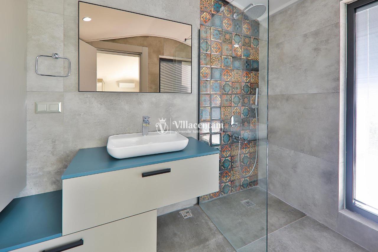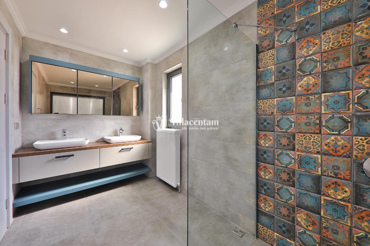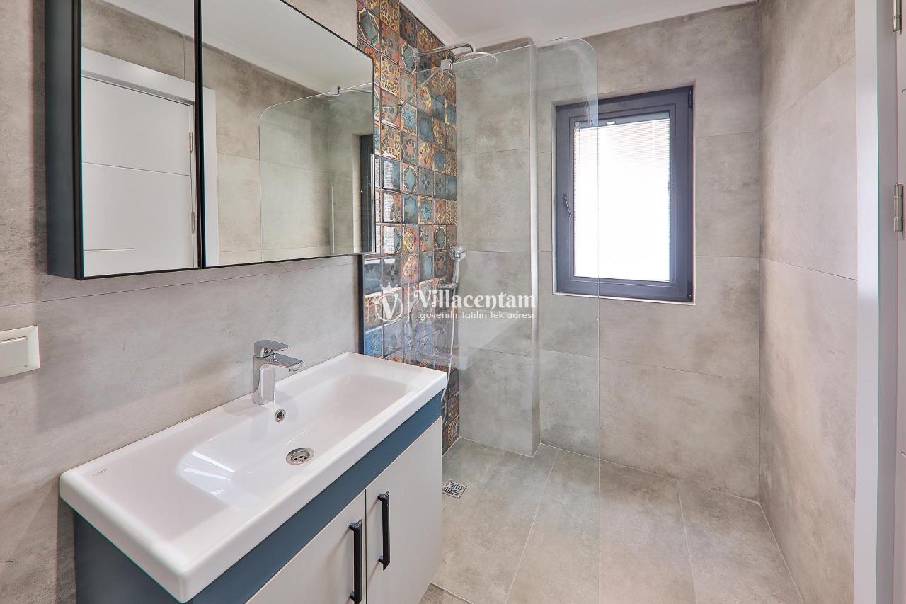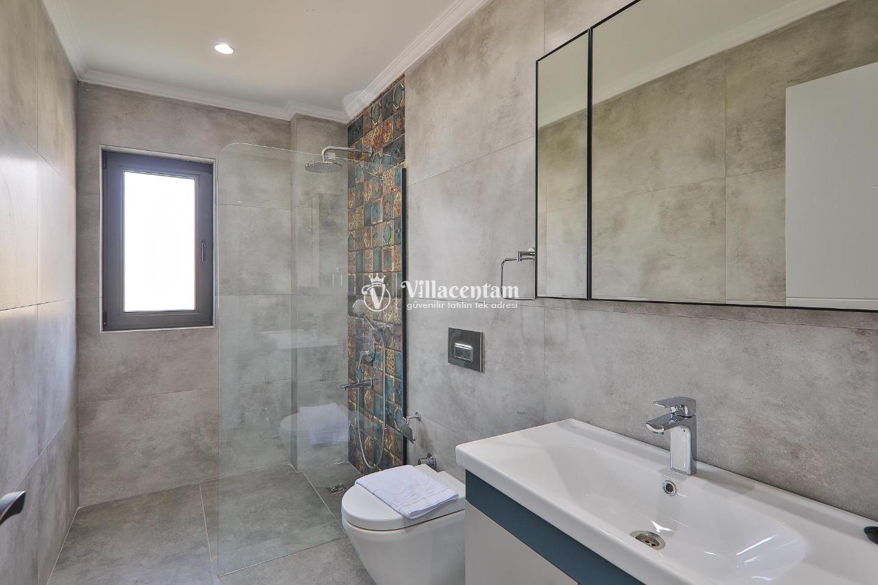 *Villalarda sıcak su için güneş enerjili su ısıtma sistemleri kullanılmaktadır. Çok yoğun sıcak su kullanımında, yoğunluğa ve su tankının büyüklüğüne bağlı olarak su tankında sıcak su tükenebilmekte ve tekrar suyun ısınması için belirli bir süre geçmesi gerekmektedir. Bu not sadece bu villa ile ilgili değil, tüm villalarımız için geçerli bir durumdur.