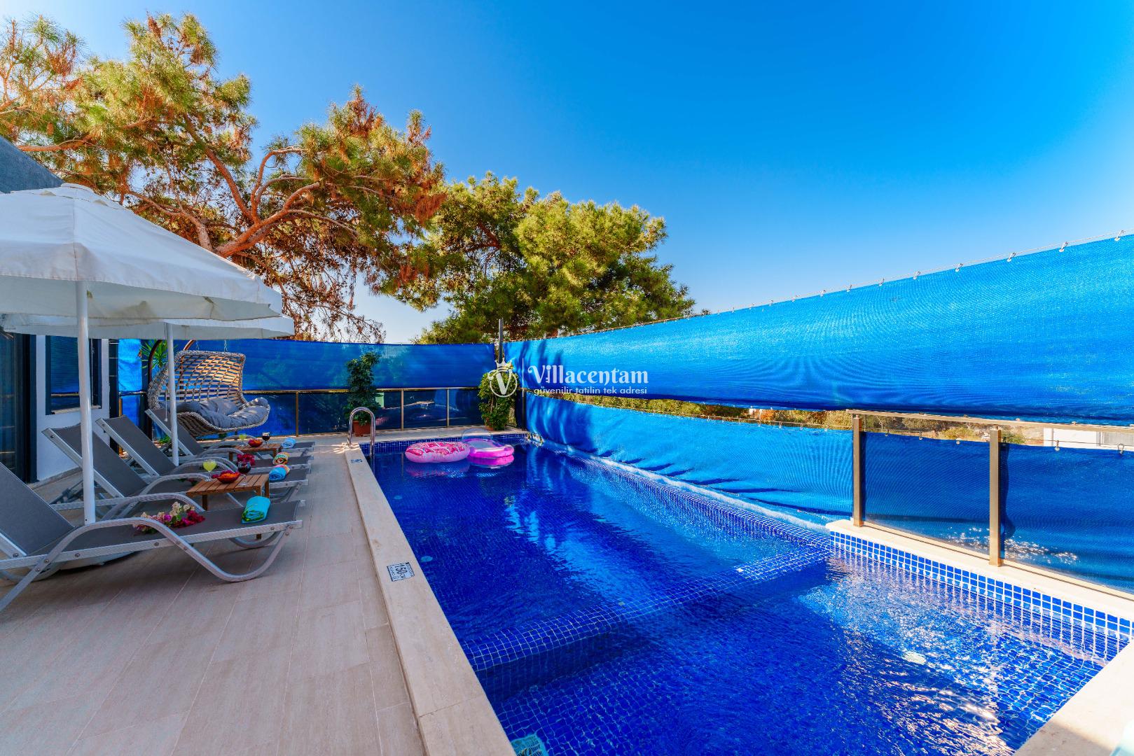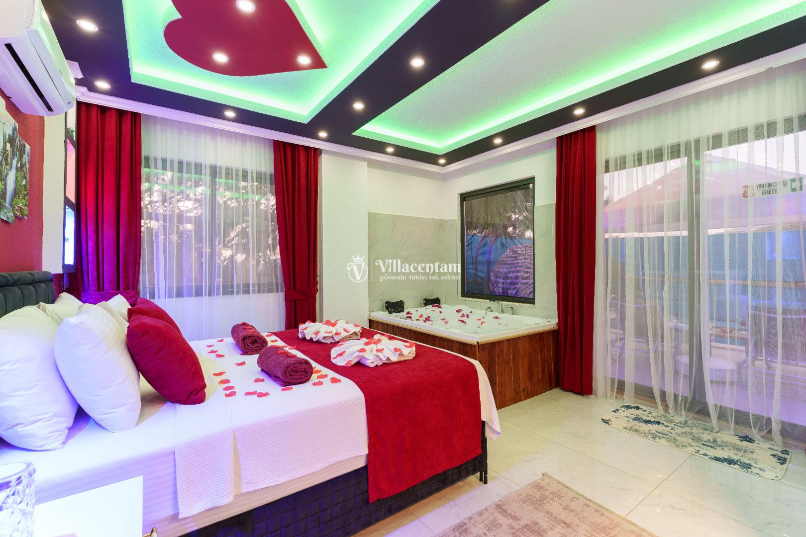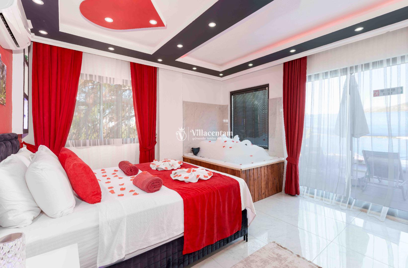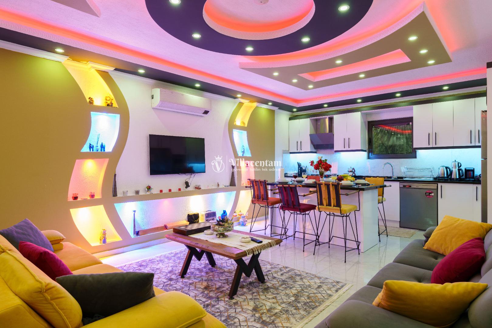 Villa Ecba, Doğayla iç içe, modern konforla tasarlanmış bu özel villa; jakuzisi, şık mimarisi ve 4 kişilik kapasitesi ile hem çiftler hem de küçük aileler için mükemmel bir tatil deneyimi sunar. Sakin ortamı, özenle tasarlanmış iç mekânları ve gizlilik odaklı yapısıyla, yılın tüm stresinden uzaklaşıp kendinizi yenileyebileceğiniz eşsiz bir konaklama fırsatı sağlar. Villaya adım attığınız anda sizi karşılayan modern salon; geniş oturma grubu, zarif dekorasyon detayları ve huzur veren renk paletiyle sıcak bir atmosfer oluşturur. Açık plan mutfak; bulaşık makinesi, fırın, ocak, buzdolabı ve yemek takımları gibi günlük ihtiyaçlarınız için tam donanımlıdır. Salon ve mutfak bölümünden direkt olarak terasa çıkabilir, güne ferah bir manzarada kahvaltıyla başlayabilirsiniz. Villamızda toplam 4 kişilik konaklama kapasitesi sunan iki ayrı yatak odası bulunur. Odaların her biri modern mobilyalarla tasarlanmış olup; konforlu yataklar, klima, depolama alanları ve özenle seçilmiş aydınlatmalarla donatılmıştır. Ana yatak odasında yer alan özel jakuzi, tatilinize lüks bir dokunuş katarken, günün yorgunluğunu atmanız için mükemmel bir ortam sağlar. Hem romantik anlar yaşamak isteyen çiftler hem de konfor arayan aileler için ideal bir seçenektir.