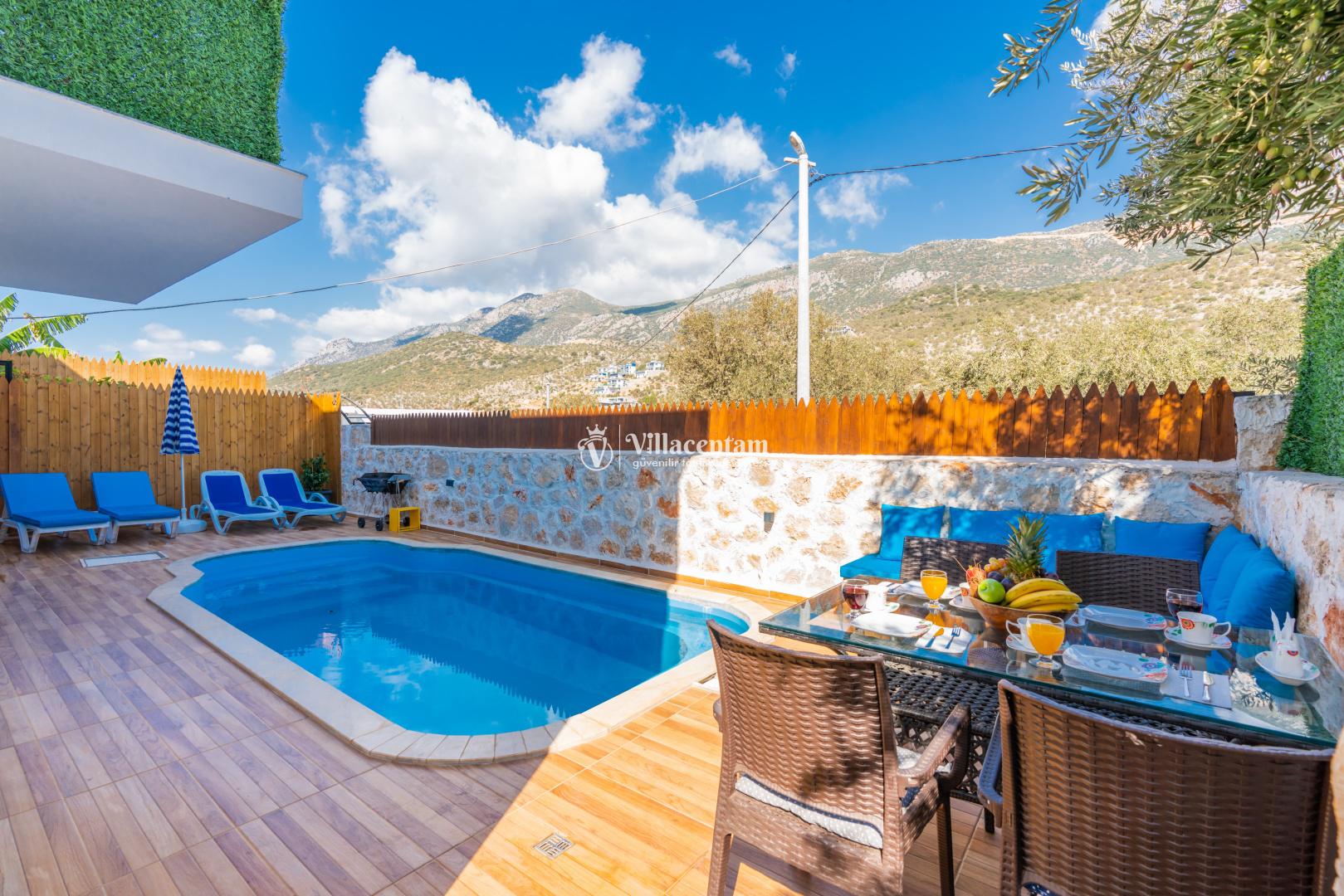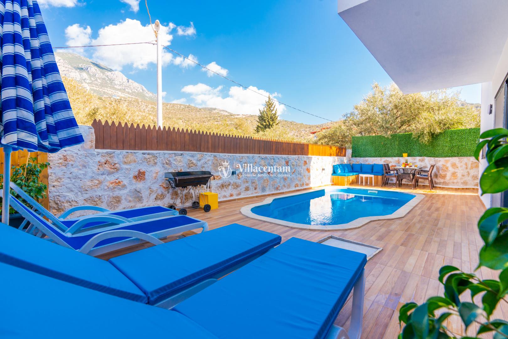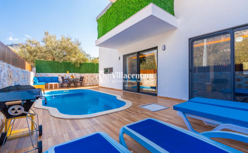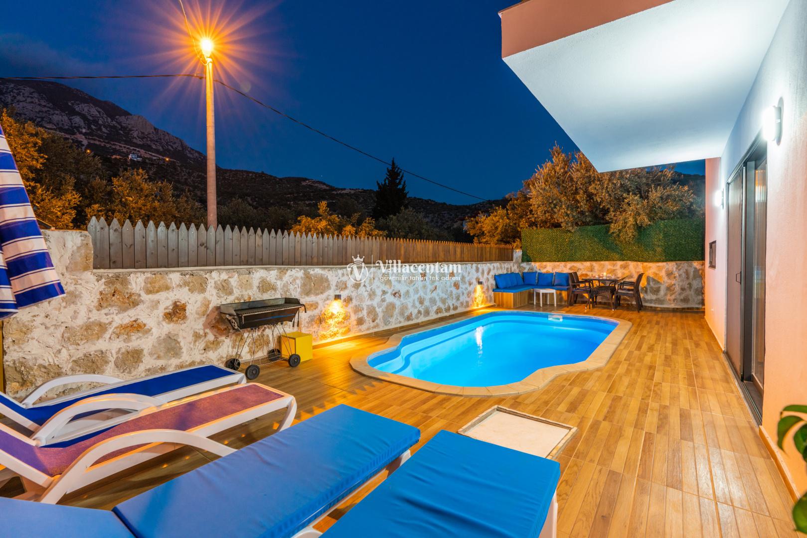 Villa Edis Ulugöl, Kalkan Ulugöl mevkiinde konumlanmakta olan, yeşilliklerin arasında doğa manzaralı kiralık bir villadır. Modern ve konforlu bir şekilde dizayn edilen yazlık villamızda 2 adet yatak odası bulunmakta olup, 4 kişiye konaklama imkanı sağlamaktadır. Yatak odasının içerisinde tüm yorgunluğunuzu atabileceğiniz jakuzi yer almaktadır. Özellikle balayı çiftlerimize hitap eden yazlık villamızın havuz ve havuz terası korunaklı hale getirilmiştir. Kiralık villamız dışarıdan gözükmemektedir. Muhafazakar çiftlerimiz de gönül rahatlığı ile tercih edebilirler. Sessizlik ve sakinlik içerisinde huzur dolu bir balayı tatili için Villa Edis Ulugöl' ü tercih edebilirsiniz.