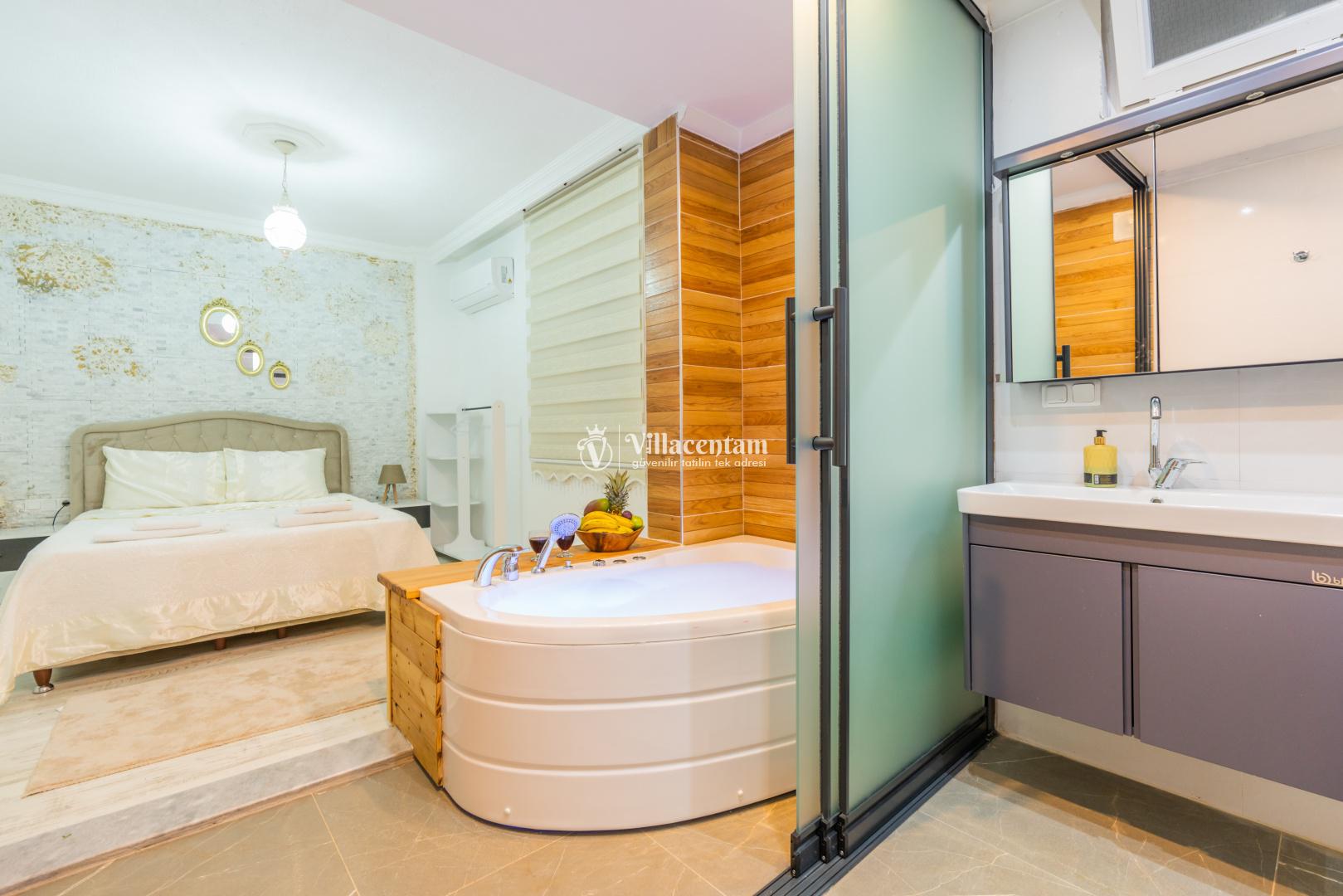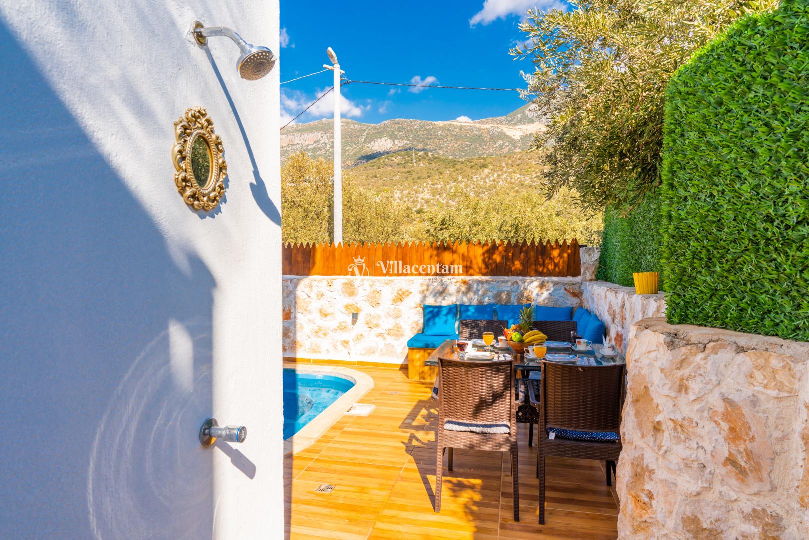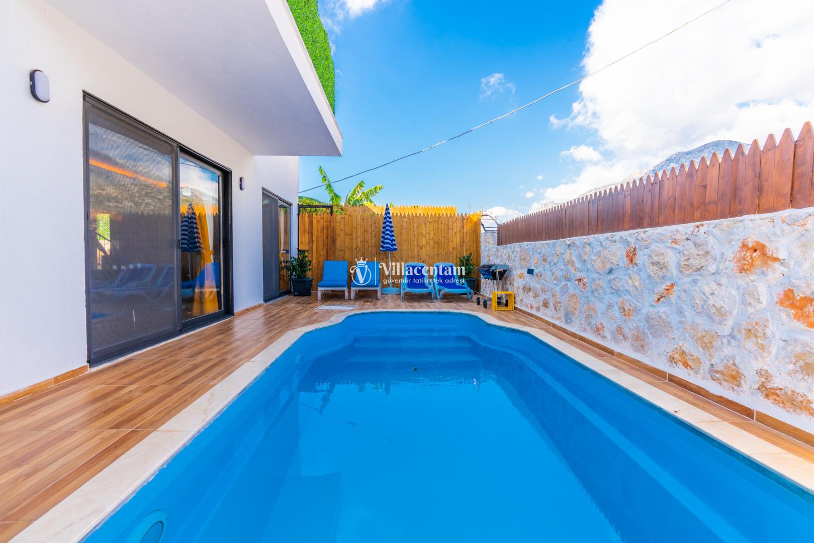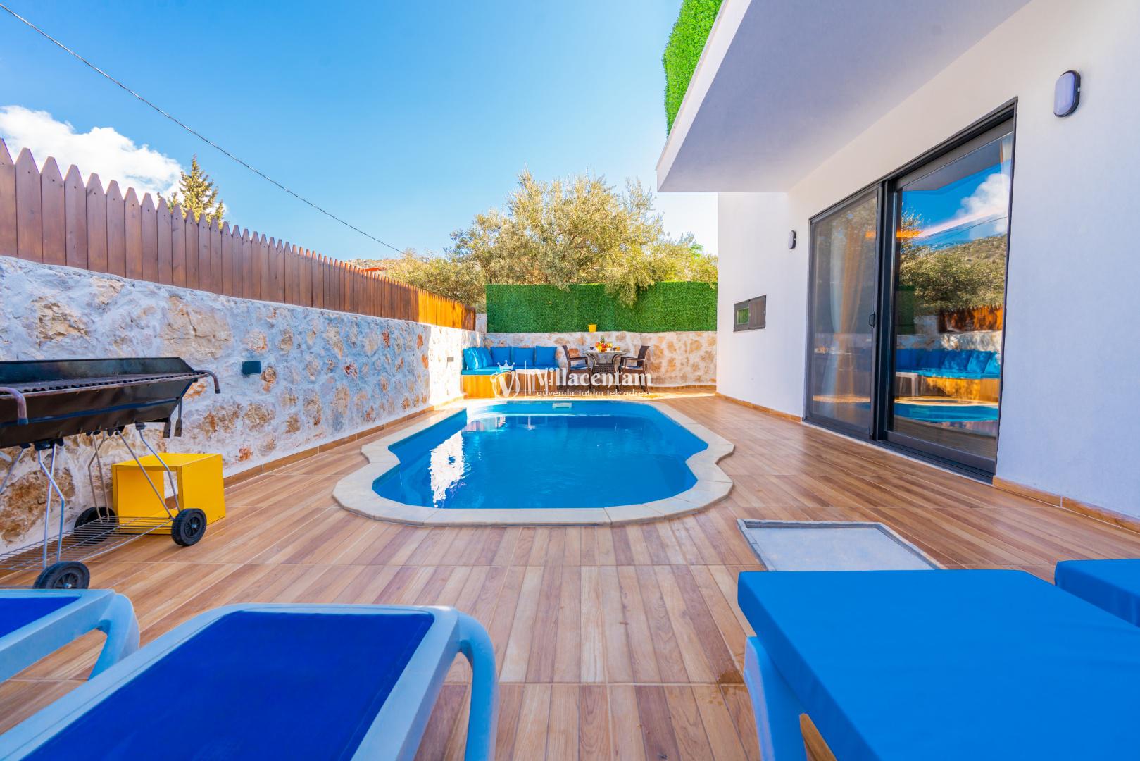 Villa Edis Ulugöl, Kalkan Ulugöl mevkiinde konumlanmakta olan, yeşilliklerin arasında doğa manzaralı kiralık bir villadır. Modern ve konforlu bir şekilde dizayn edilen yazlık villamızda 2 adet yatak odası bulunmakta olup, 4 kişiye konaklama imkanı sağlamaktadır. Yatak odasının içerisinde tüm yorgunluğunuzu atabileceğiniz jakuzi yer almaktadır. Özellikle balayı çiftlerimize hitap eden yazlık villamızın havuz ve havuz terası korunaklı hale getirilmiştir. Kiralık villamız dışarıdan gözükmemektedir. Muhafazakar çiftlerimiz de gönül rahatlığı ile tercih edebilirler. Sessizlik ve sakinlik içerisinde huzur dolu bir balayı tatili için Villa Edis Ulugöl' ü tercih edebilirsiniz.