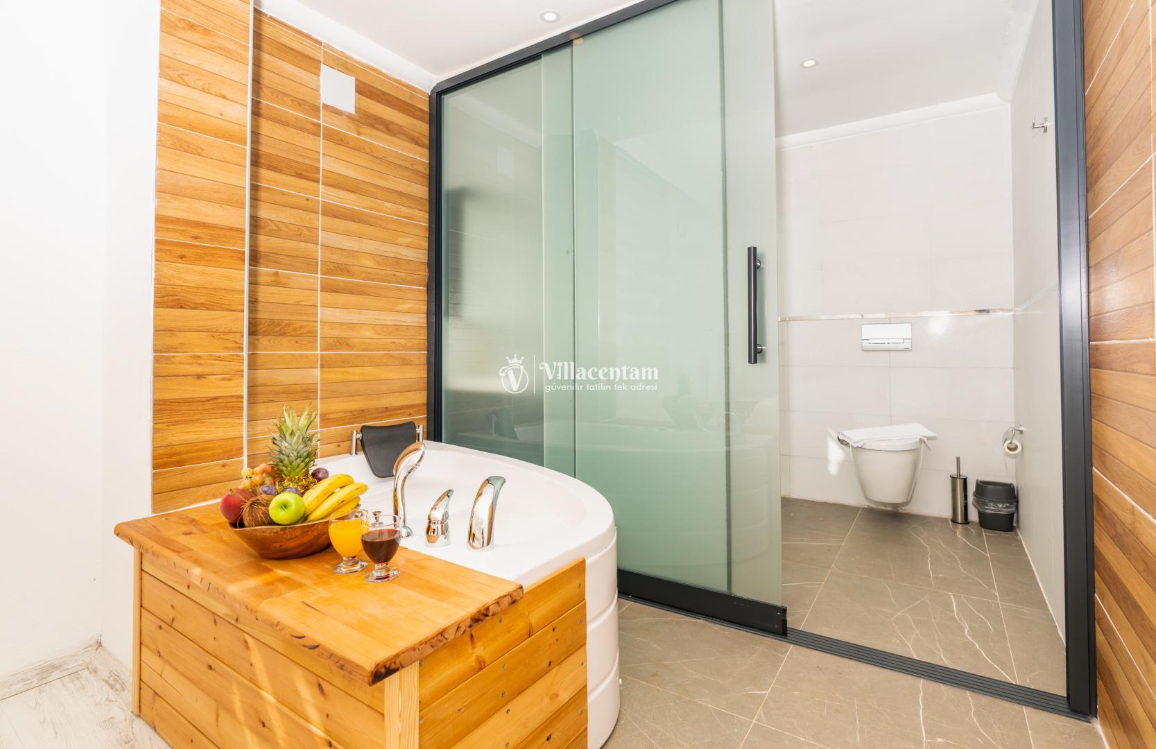Villalarda sıcak su için güneş enerjili su ısıtma sistemleri kullanılmaktadır. Çok yoğun sıcak su kullanımında, yoğunluğa ve su tankının büyüklüğüne bağlı olarak su tankında sıcak su tükenebilmekte ve tekrar suyun ısınması için belirli bir süre geçmesi gerekmektedir. Bu not sadece bu villa ile ilgili değil, tüm villalarımız için geçerli bir durumdur