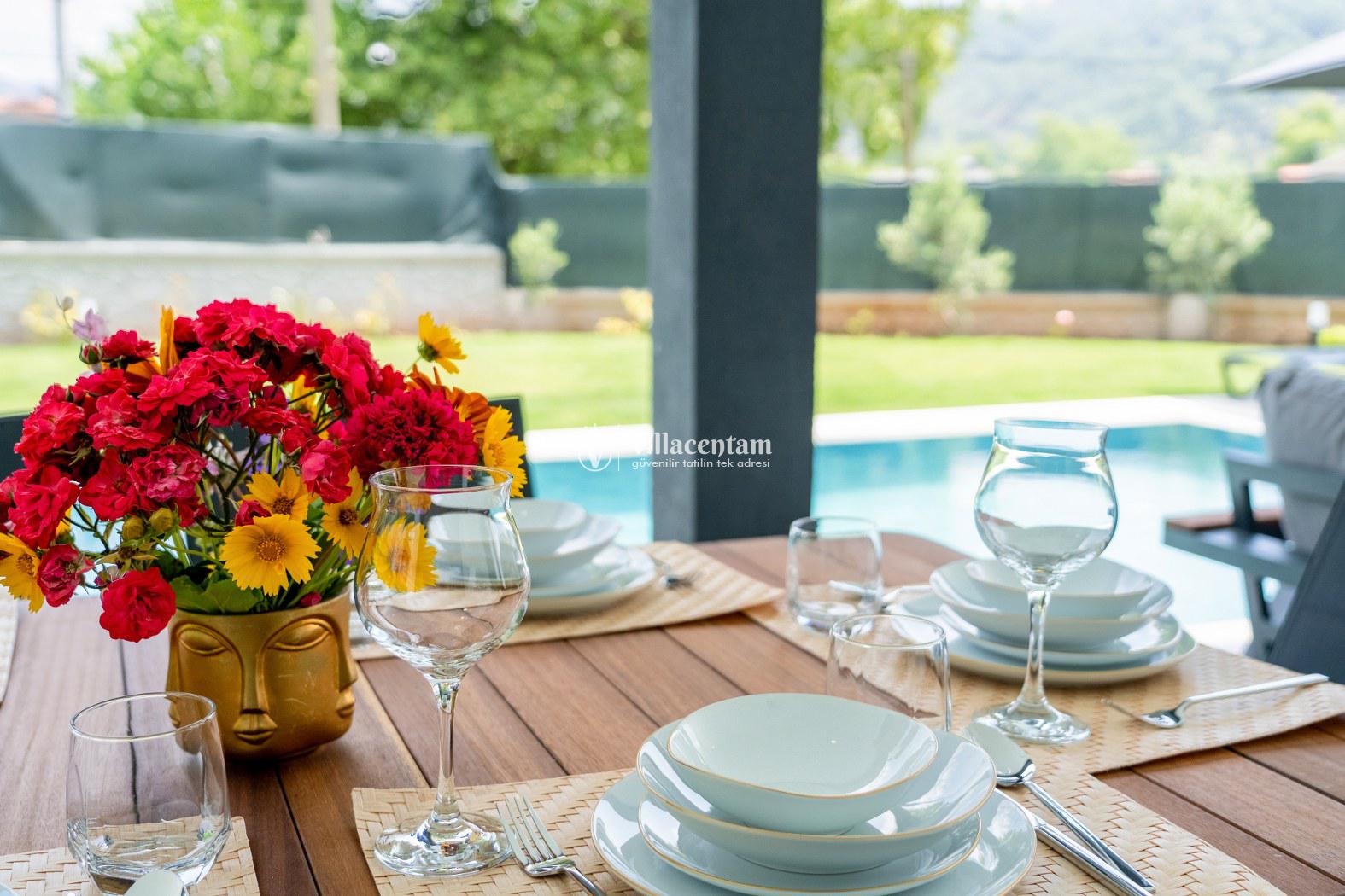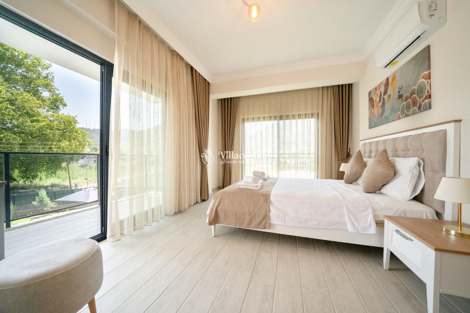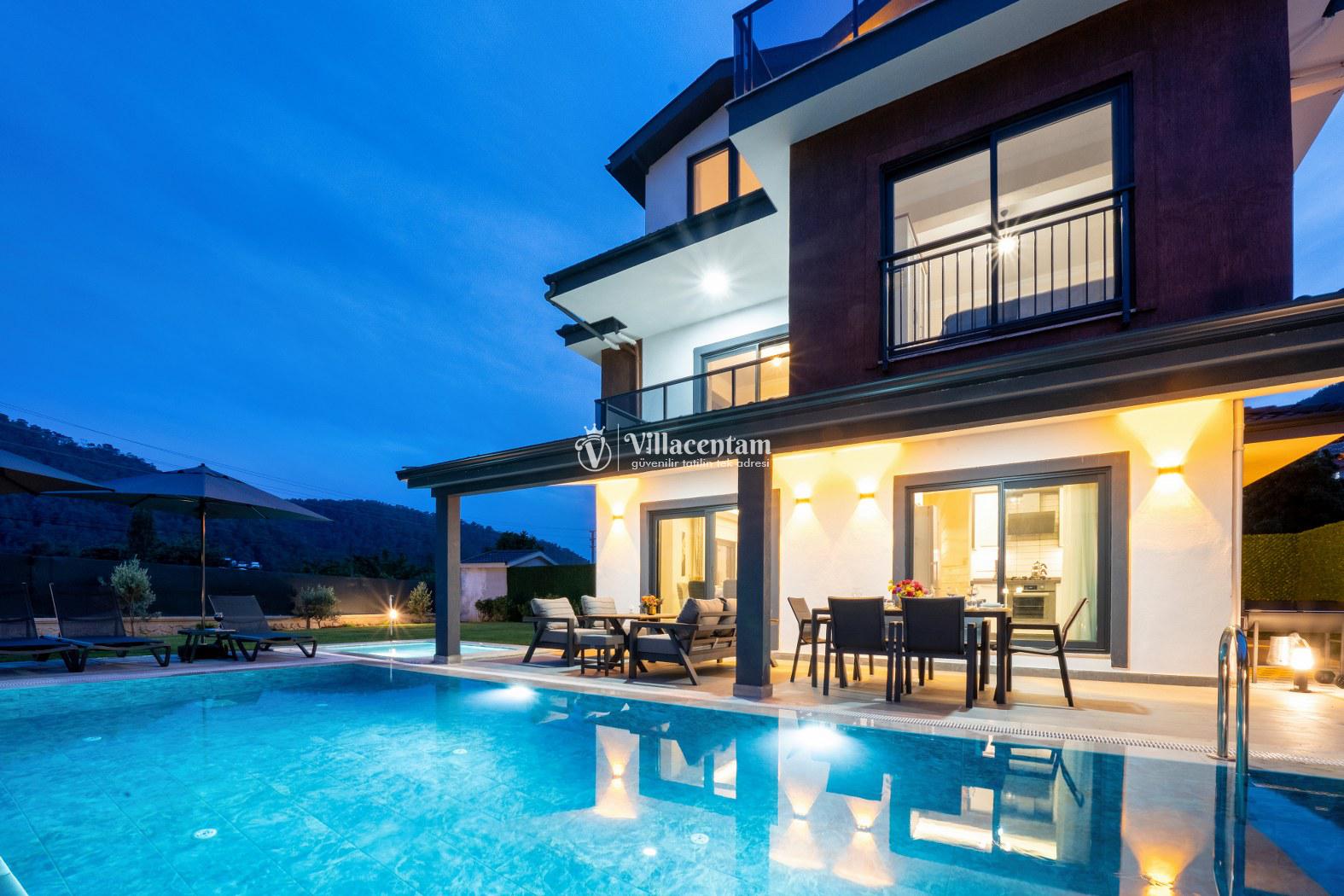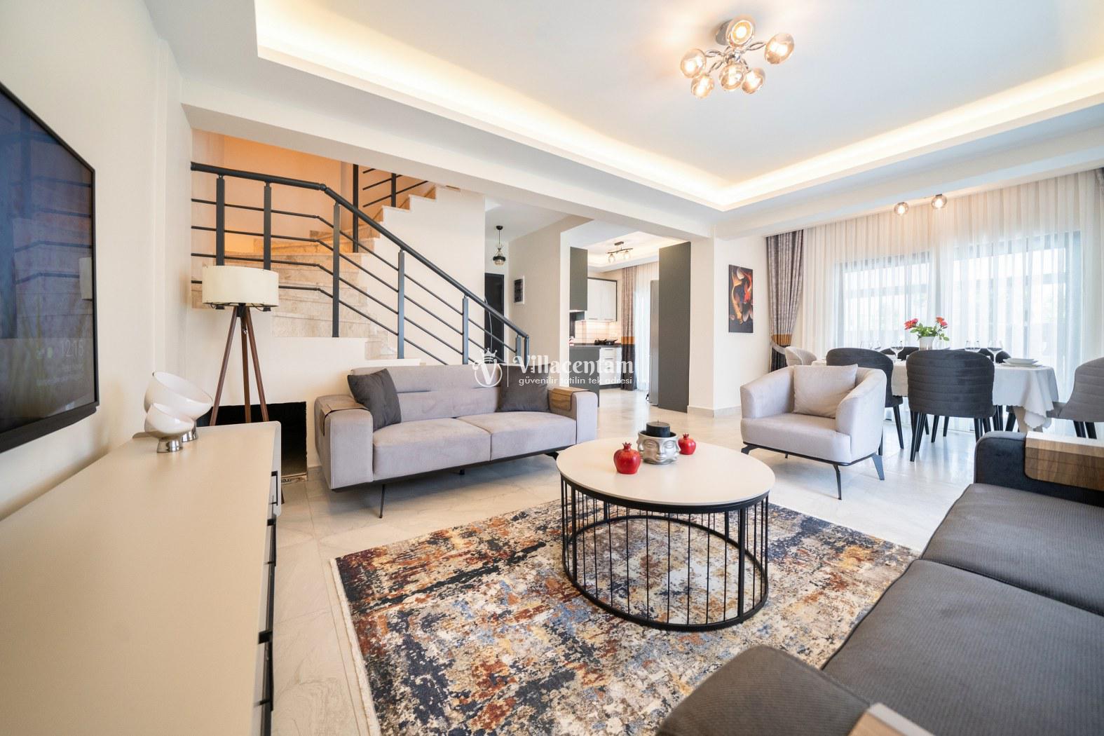 Toplam 3 yatak odasına sahip olan villa, 6 kişiye kadar konaklama kapasitesi sunar. Aydınlık salon alanı ve tam donanımlı Amerikan mutfak, tatil süresince ihtiyaç duyabileceğiniz tüm detayları karşılayacak şekilde tasarlanmıştır. Modern ve şık iç mekânlar, misafirlerine ev konforunda bir konaklama deneyimi yaşatır.