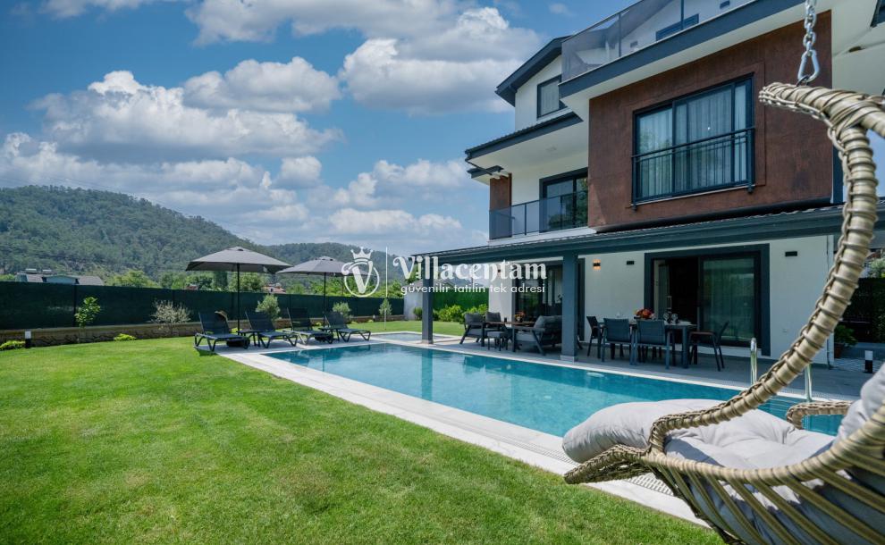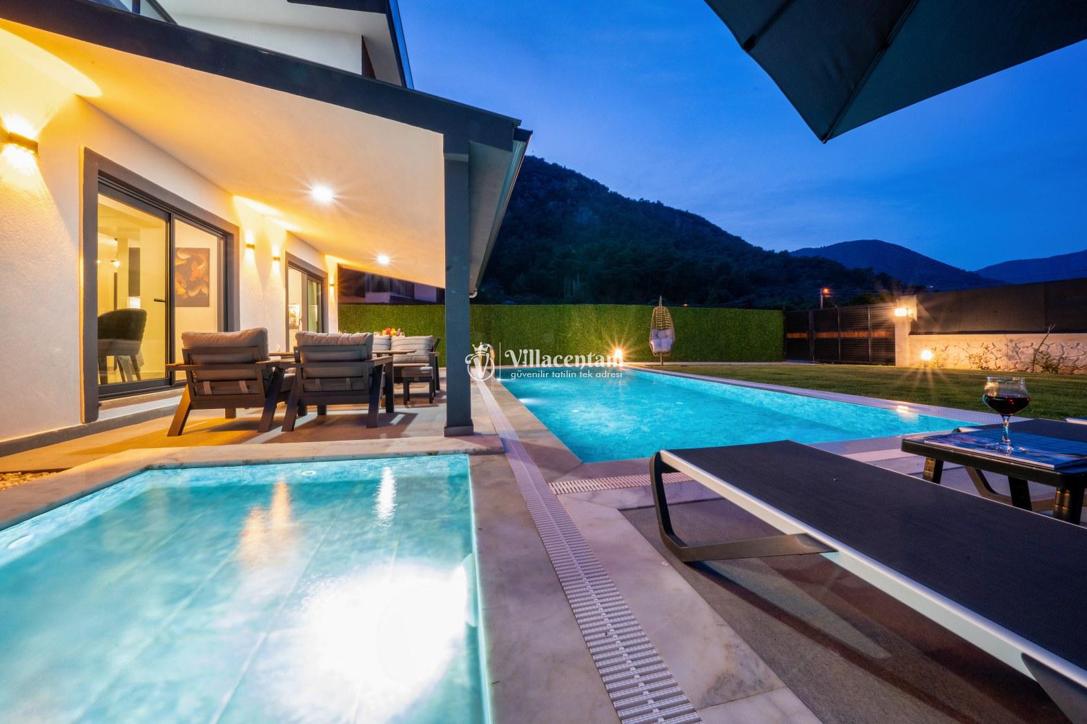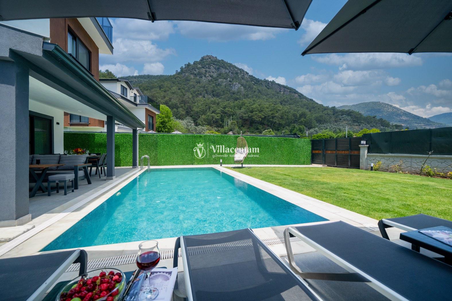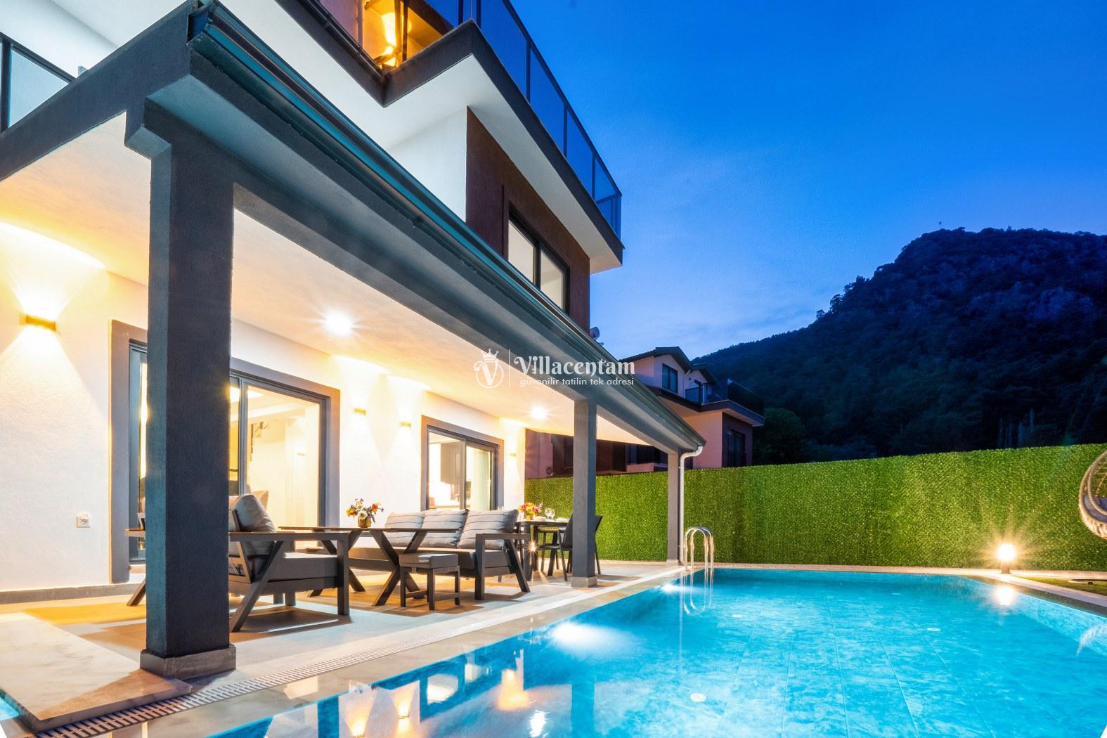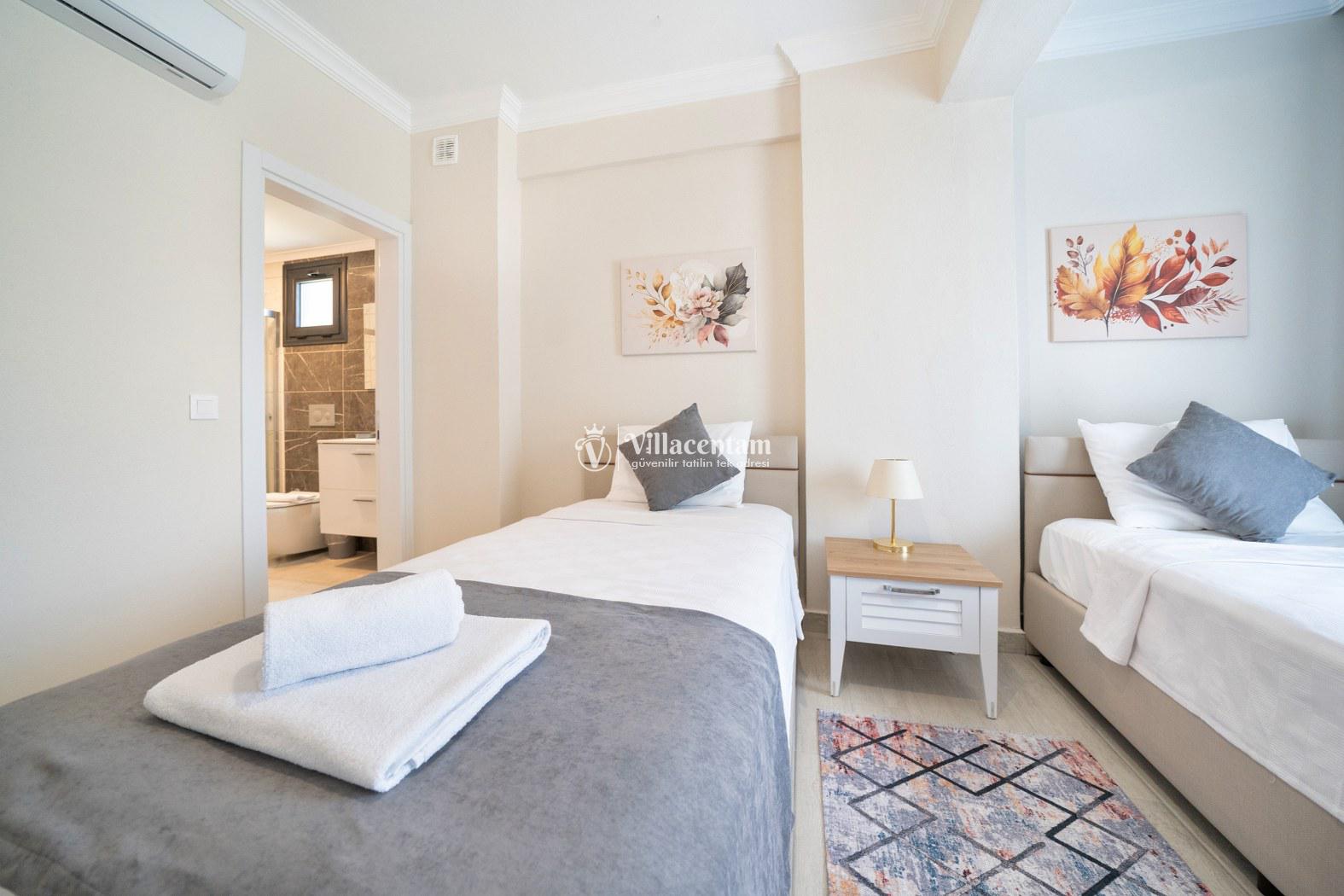 Toplam 3 yatak odasına sahip olan villa, 6 kişiye kadar konaklama kapasitesi sunar. Aydınlık salon alanı ve tam donanımlı Amerikan mutfak, tatil süresince ihtiyaç duyabileceğiniz tüm detayları karşılayacak şekilde tasarlanmıştır. Modern ve şık iç mekânlar, misafirlerine ev konforunda bir konaklama deneyimi yaşatır.