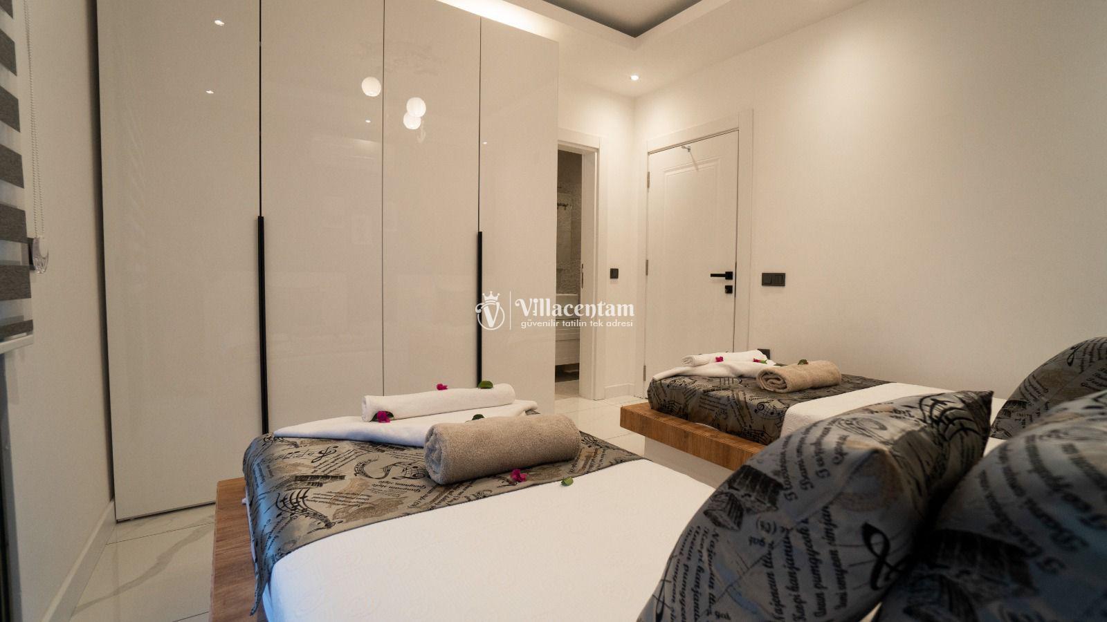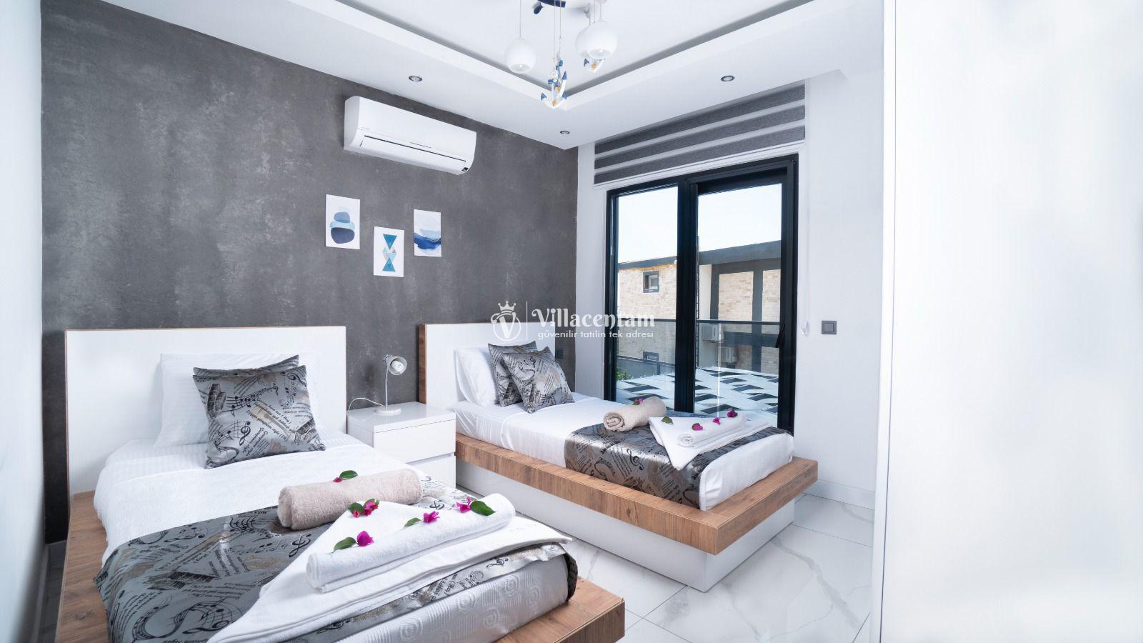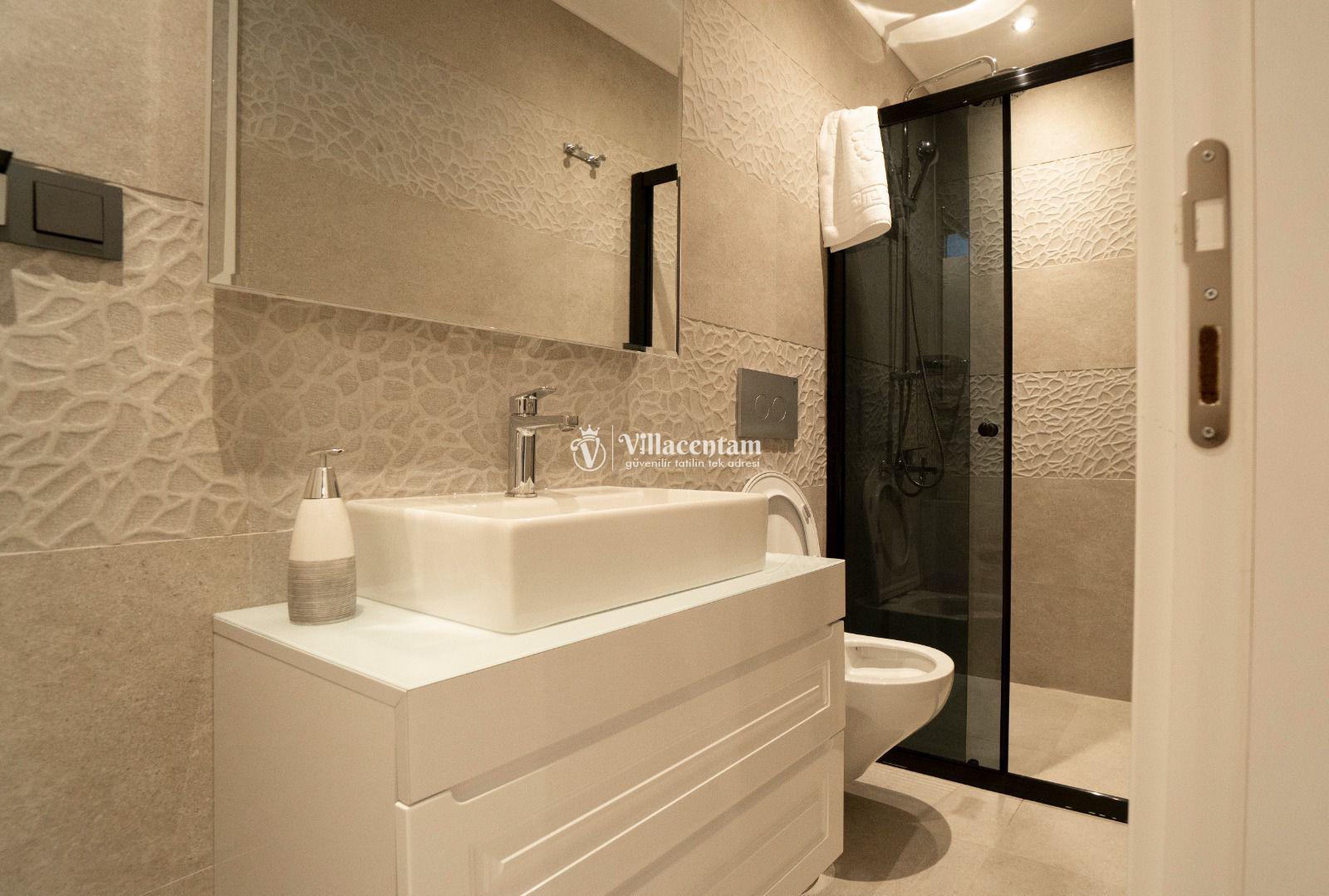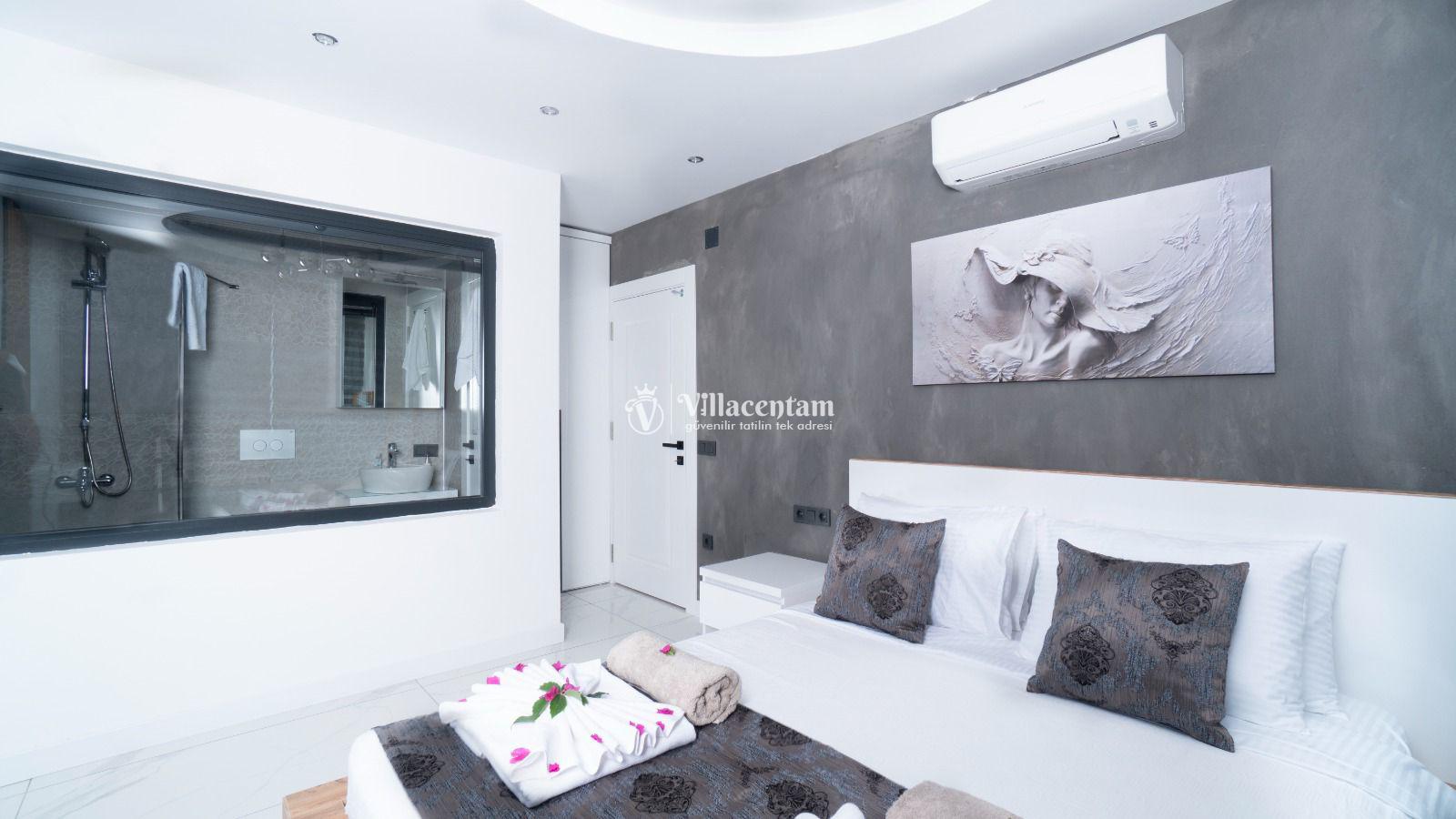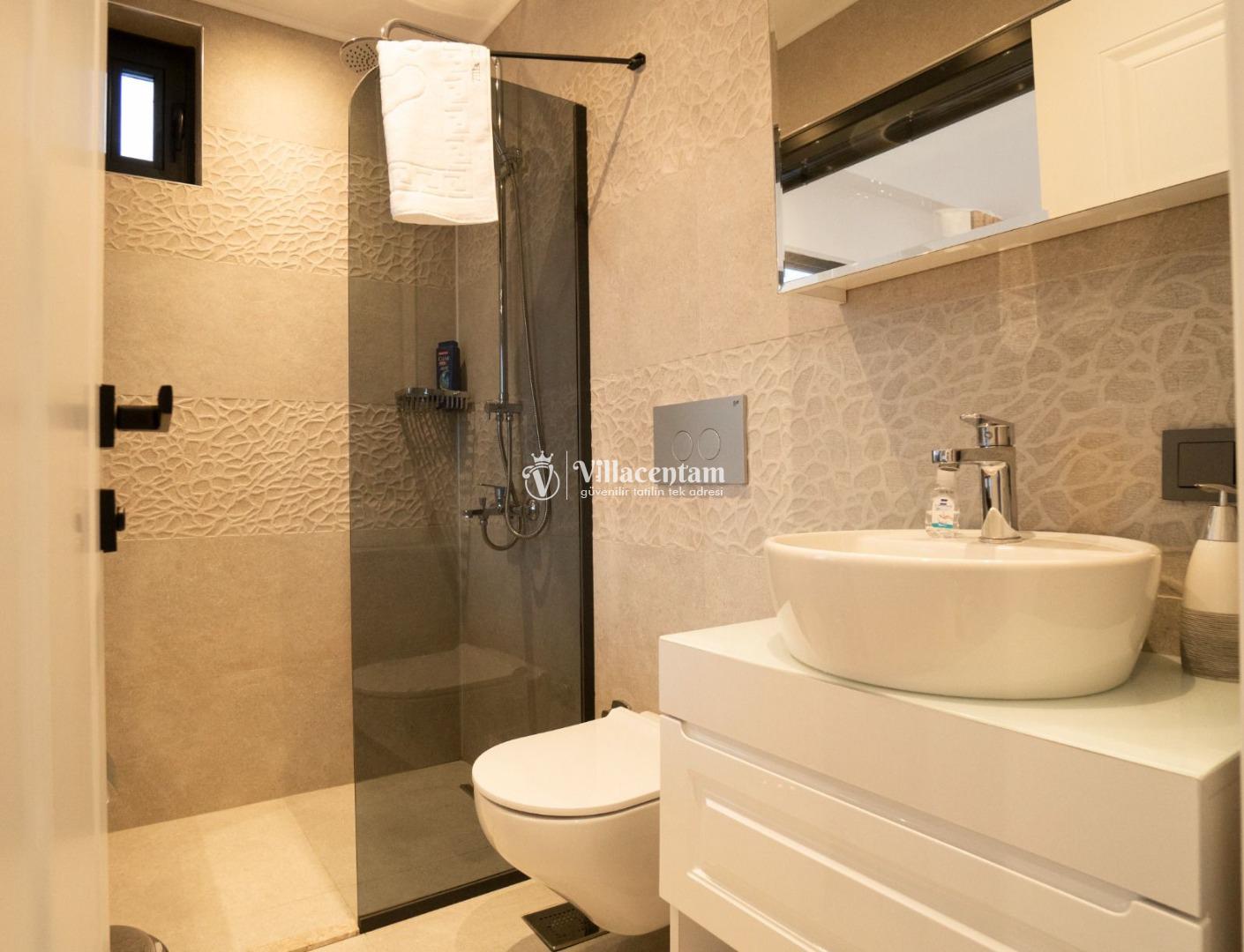 *Villalarda sıcak su için güneş enerjili su ısıtma sistemleri kullanılmaktadır. Çok yoğun sıcak su kullanımında, yoğunluğa ve su tankının büyüklüğüne bağlı olarak su tankında sıcak su tükenebilmekte ve tekrar suyun ısınması için belirli bir süre geçmesi gerekmektedir. Bu not sadece bu villa ile ilgili değil, tüm villalarımız için geçerli bir durumdur.