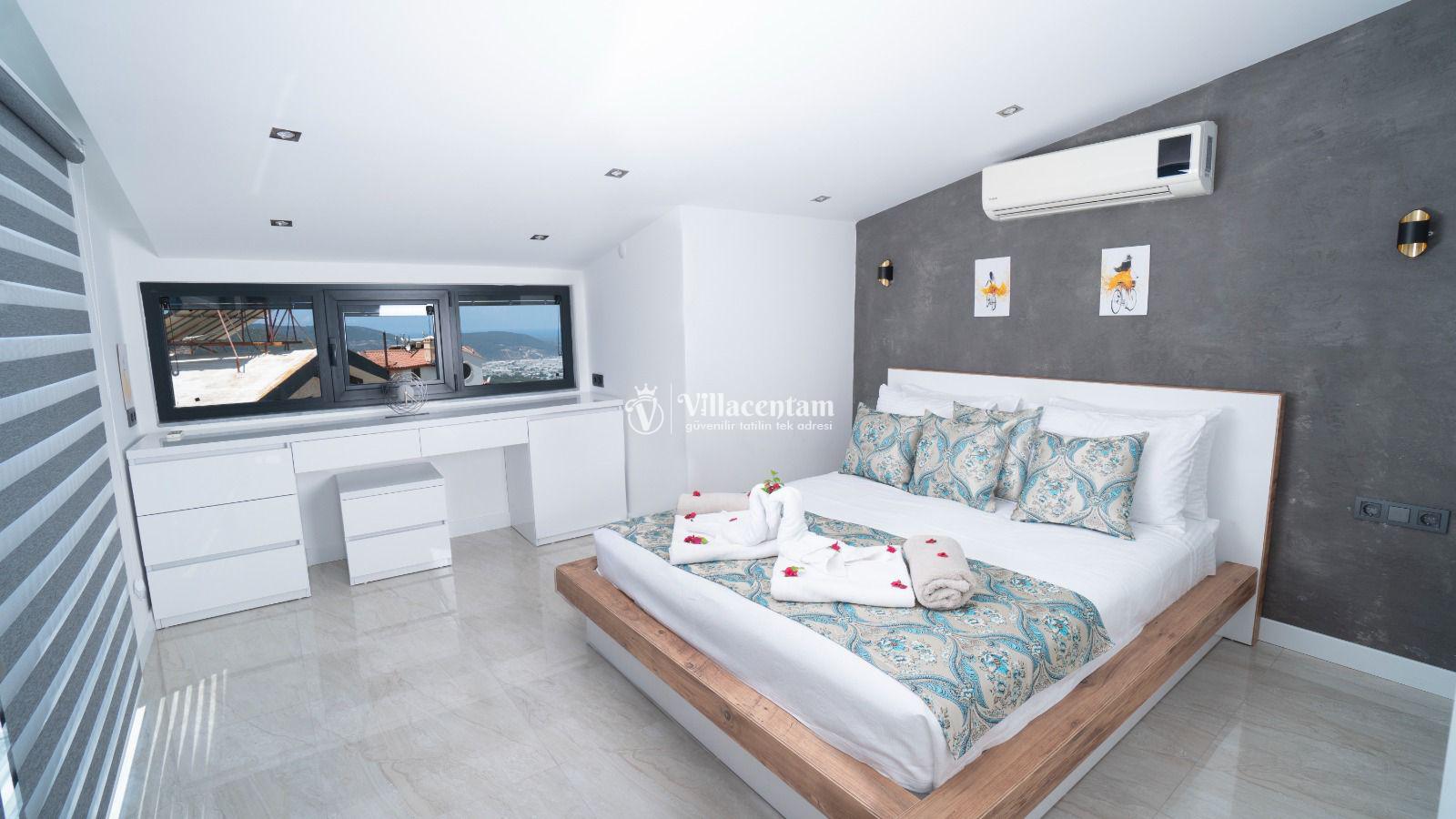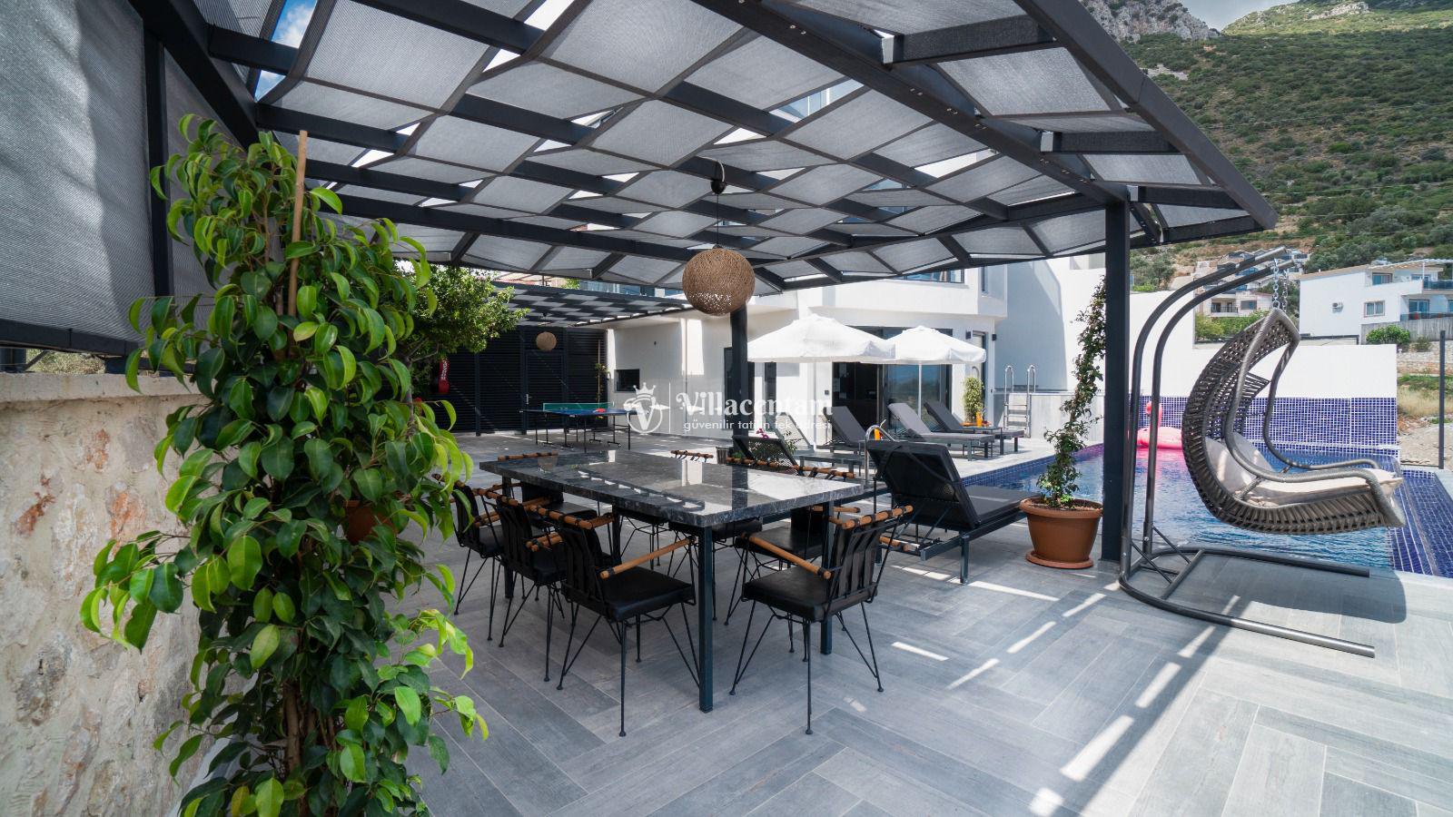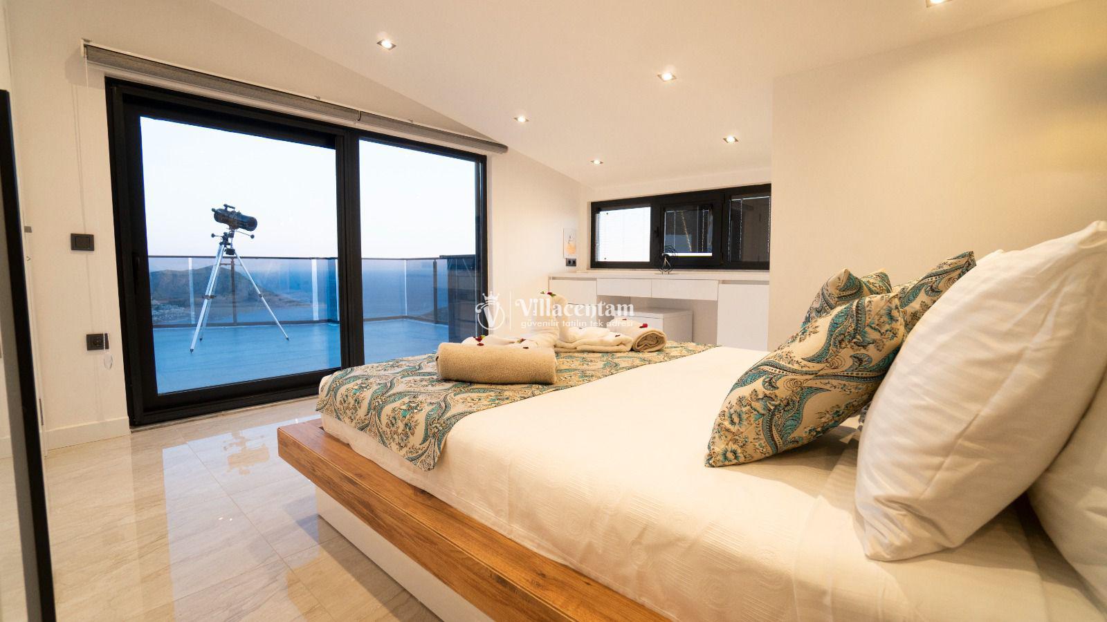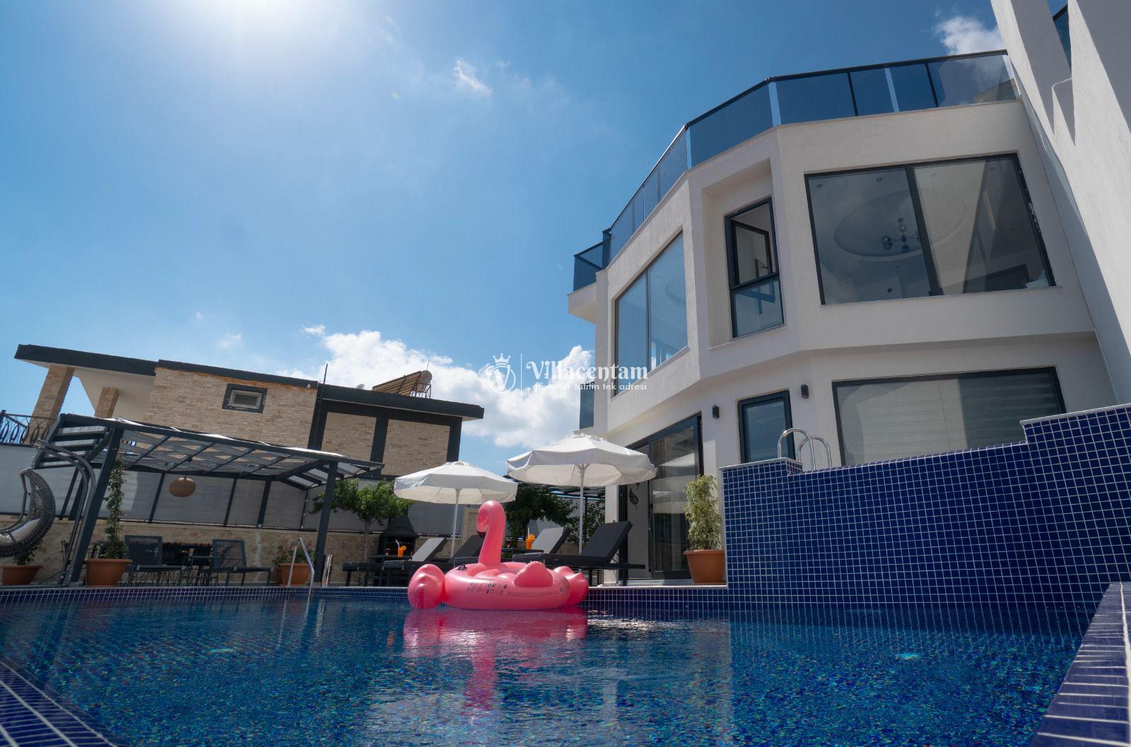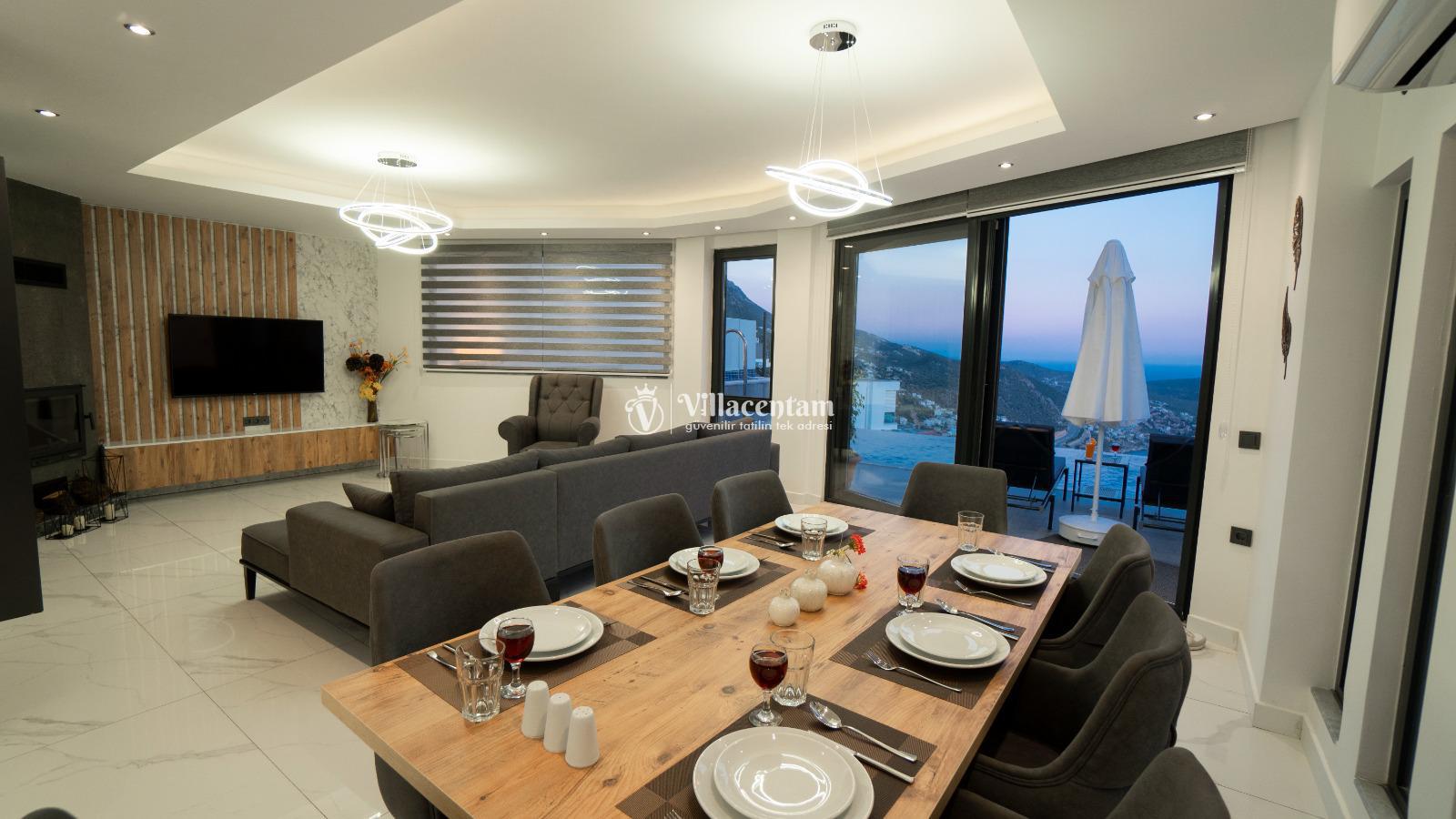 Villa Elif Akbel, Kalkan’ın Akbel bölgesinde konumlanan, panoramik deniz manzarası ve huzurlu atmosferiyle öne çıkan şık bir tatil villasıdır. 8 kişilik konaklama kapasitesi, 4 yatak odası ve 4 banyo yapısıyla geniş aileler ve arkadaş grupları için oldukça konforlu bir seçenek sunar. Ferah salonu, donanımlı mutfağı ve manzaraya açılan geniş terası sayesinde misafirlerine hem rahat hem de keyifli bir konaklama deneyimi sağlar. Özel havuzu, gün batımı eşliğinde vakit geçirebileceğiniz dış yaşam alanları ve etkileyici konumuyla Villa Elif Akbel, şehir kalabalığından uzaklaşıp Kalkan’ın eşsiz doğası ve deniz manzarası eşliğinde unutulmaz bir tatil yapmak isteyenler için ideal bir tercihtir. Ayrıca villanın terasında yer alan teleskop, deniz ve uzak dağ manzarasını daha yakından izleme imkânı sunarak tatilinize ayrı bir keyif katar.