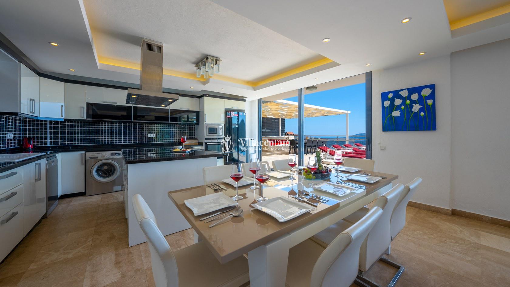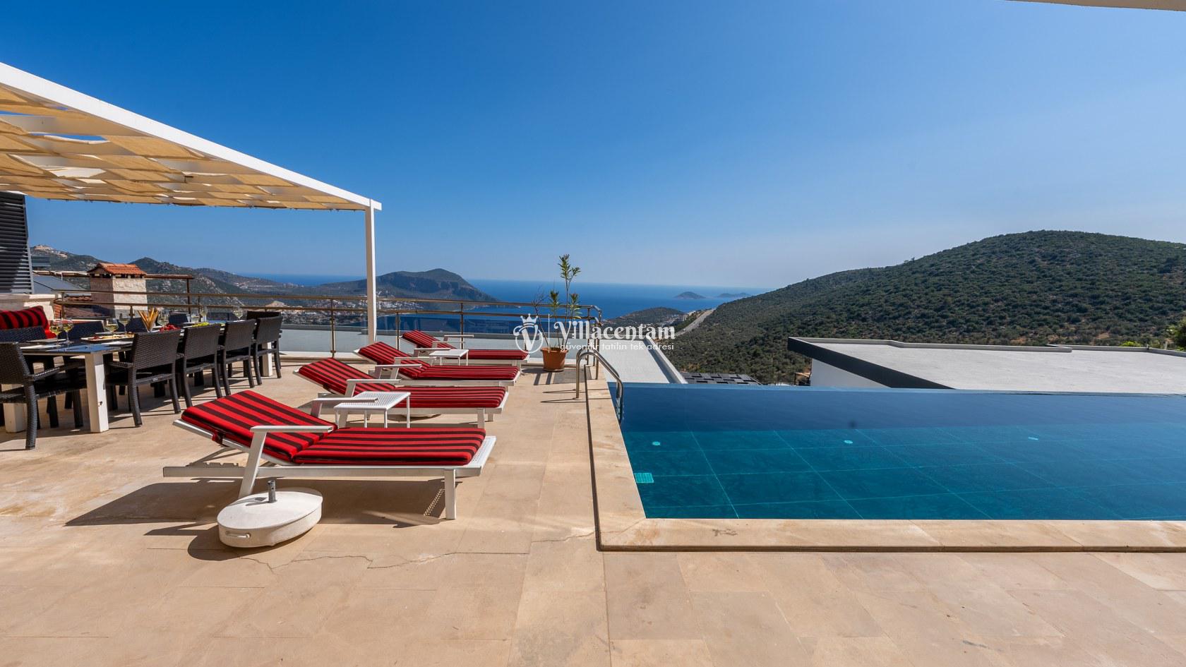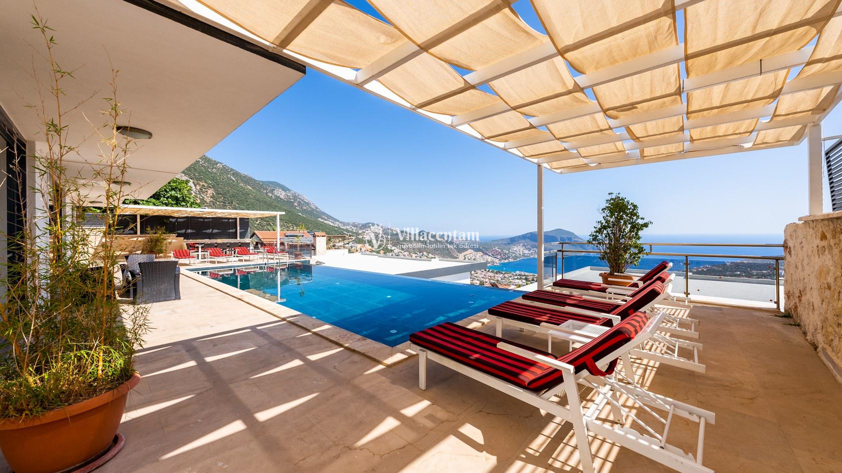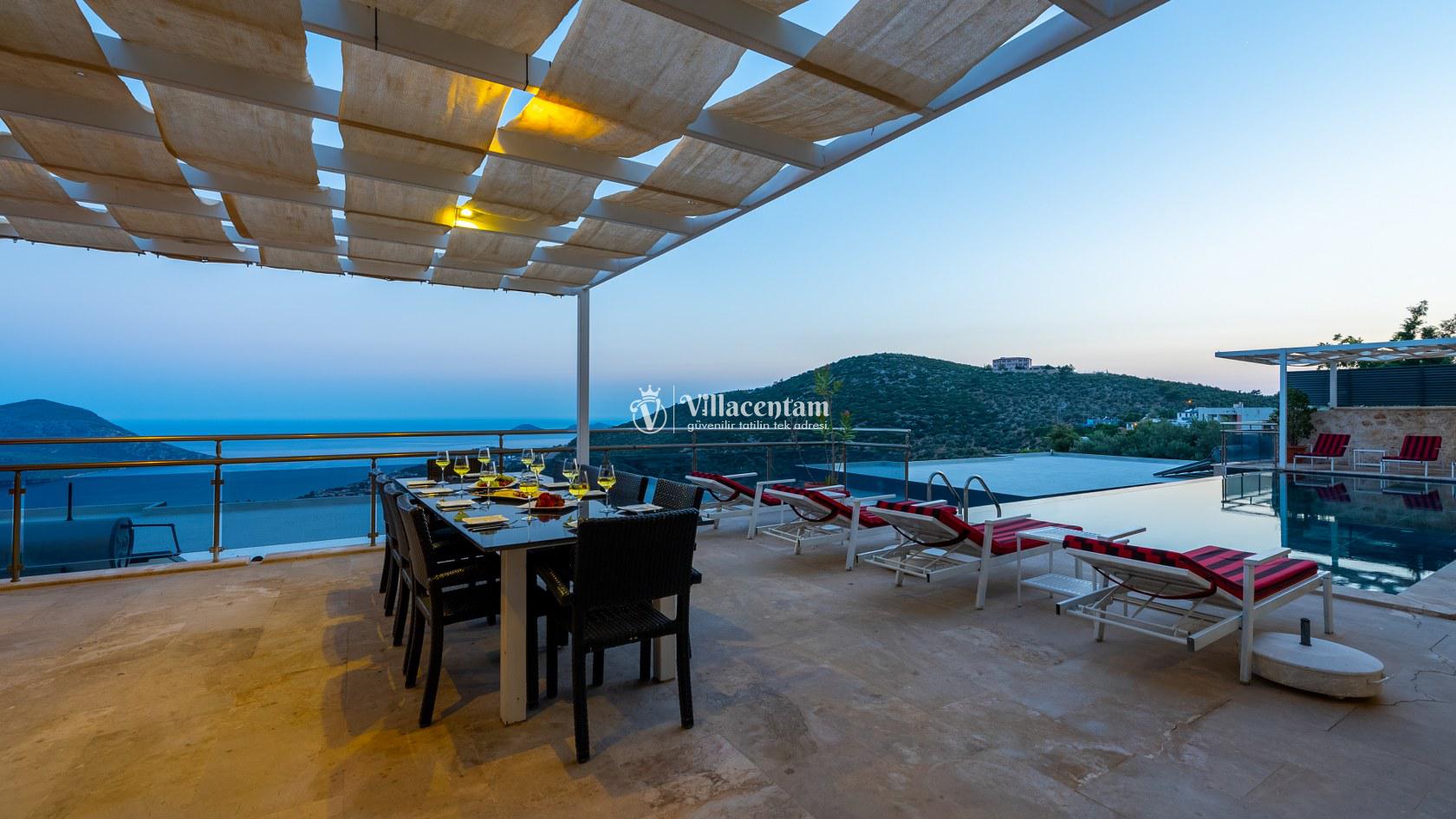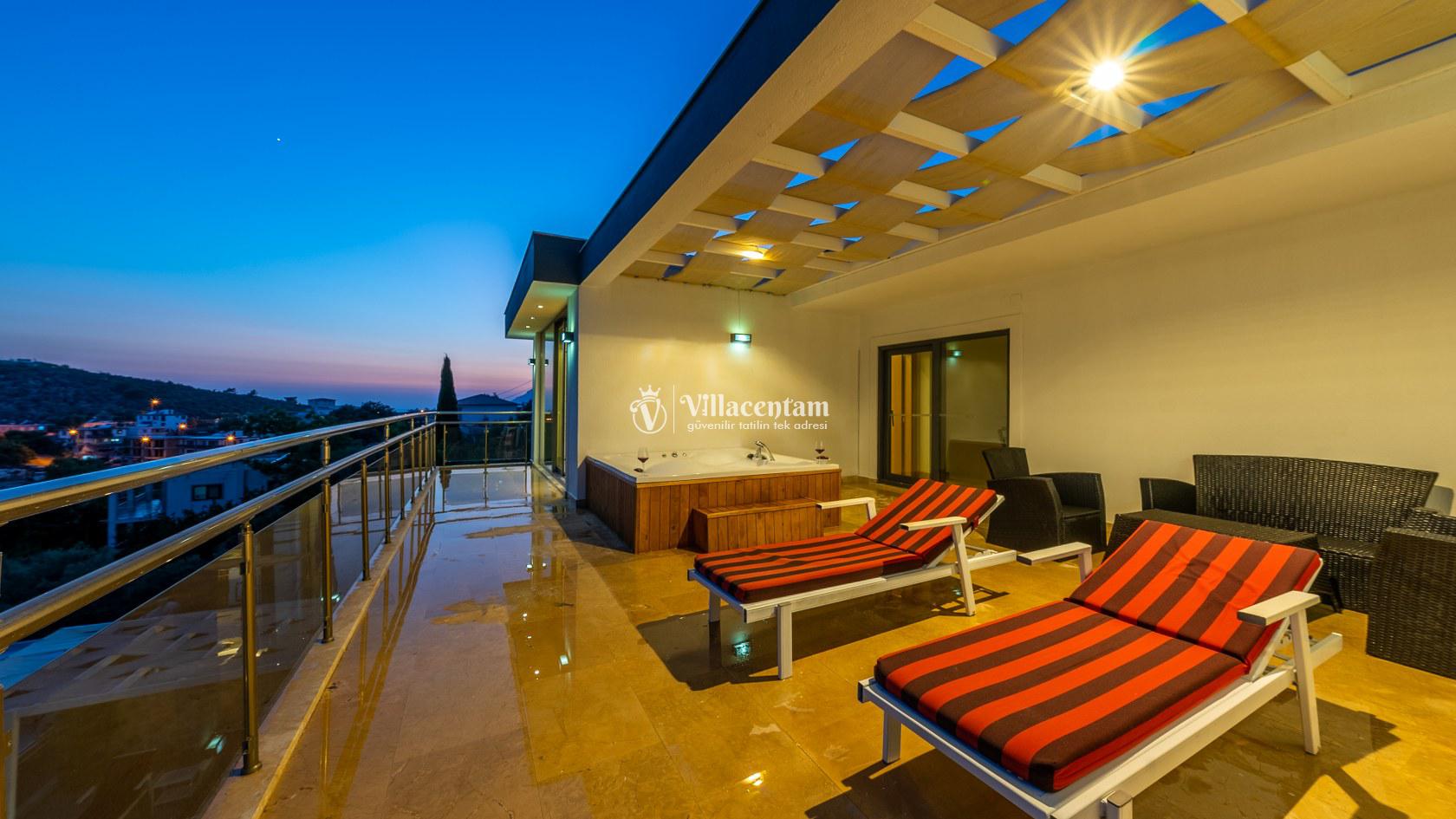 Villanın üst katında yer alan özel sauna ve jakuzili havuz, misafirlerine hem rahatlatıcı hem de keyif verici bir atmosfer sunar. Panoramik manzaralı geniş teras alanı ise günün her anında eşsiz Kalkan manzarasını izleyebilmeniz için özenle tasarlanmıştır. Aynı villa sahibine ait bölgede bulunan Villa Elite 2 ve Villa Elite 3, birden fazla ailenin yan yana tatil planlaması için ideal seçenekler sunarak konaklama alternatiflerini genişletmektedir.