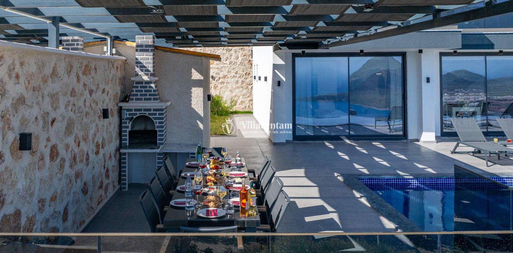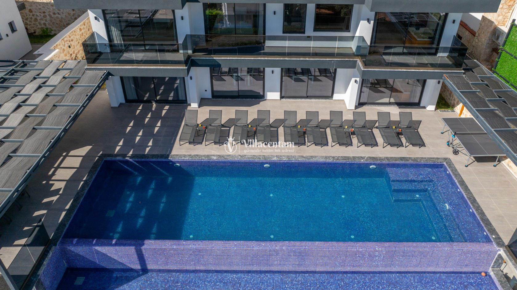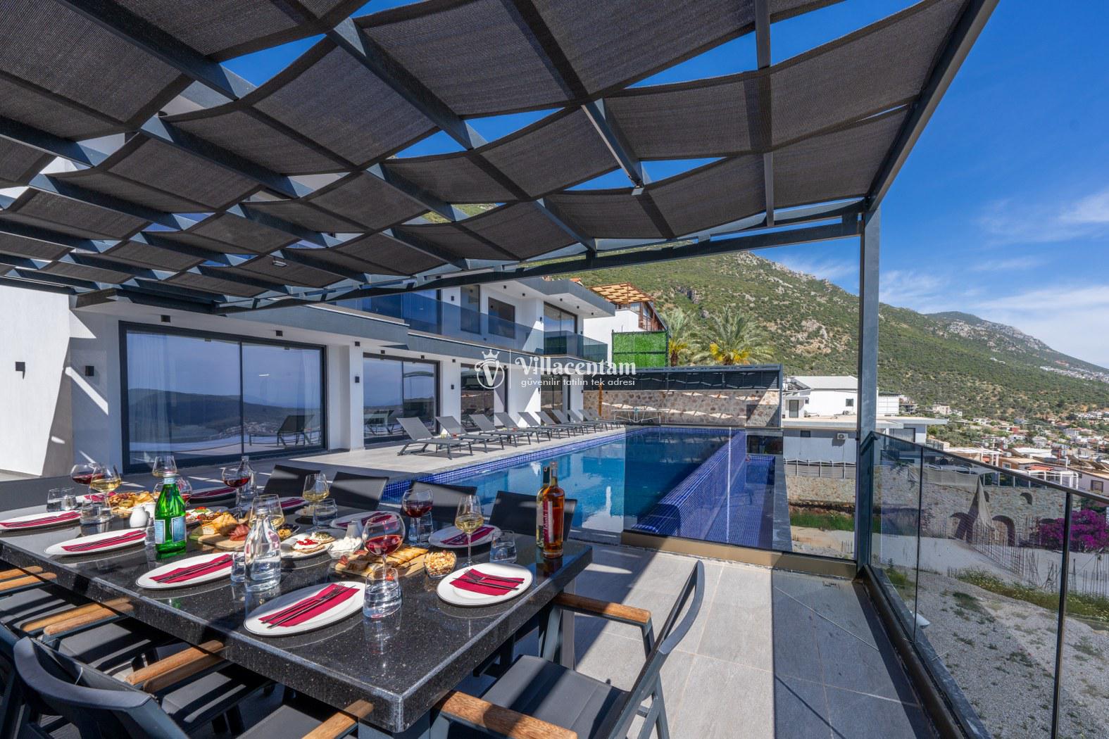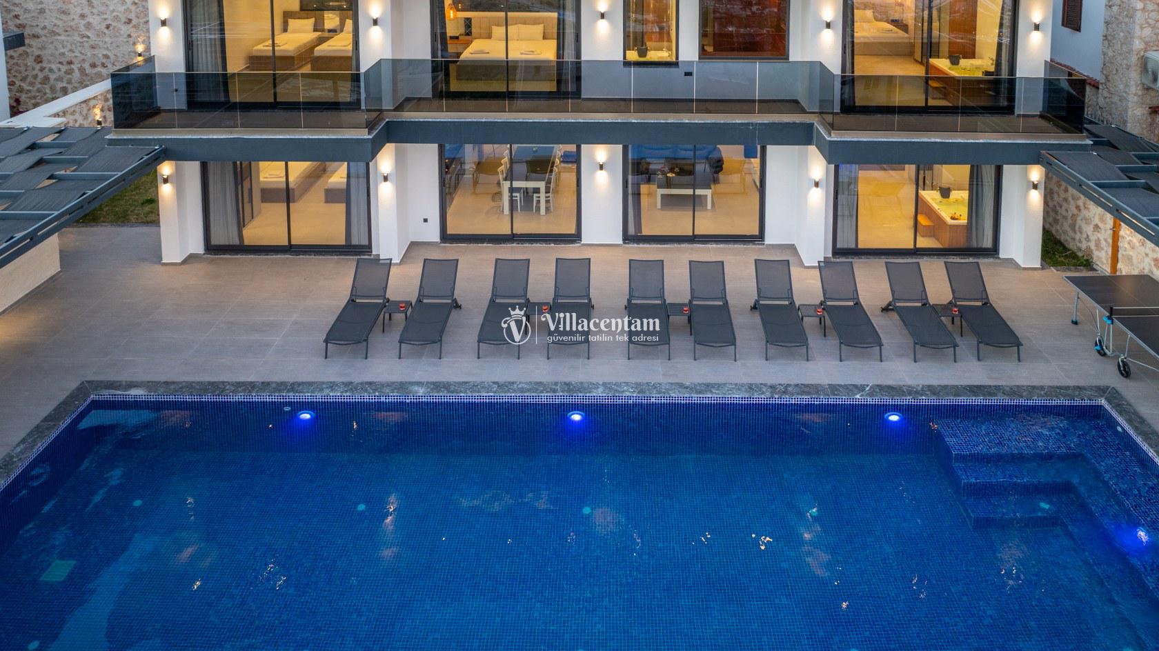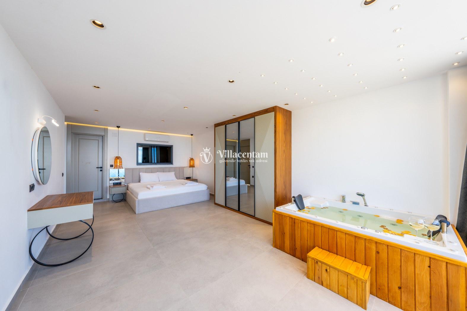 Villanın üst katında bulunan özel sauna ve jakuzili havuz, tatilinize hem rahatlatıcı hem de lüks bir atmosfer katar. Geniş teras alanı ise günün her anında panoramik manzaranın keyfini çıkarabileceğiniz huzurlu bir yaşam alanı sunar. Aynı villa sahibine ait bölgede bulunan Villa Elite 1 ve Villa Elite 2, birden fazla ailenin yan yana tatil planlaması için ideal seçenekler sunarak konaklama alternatiflerini genişletmektedir.