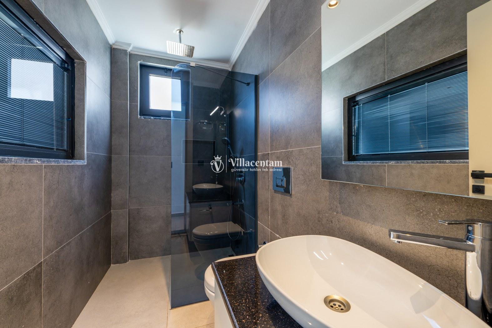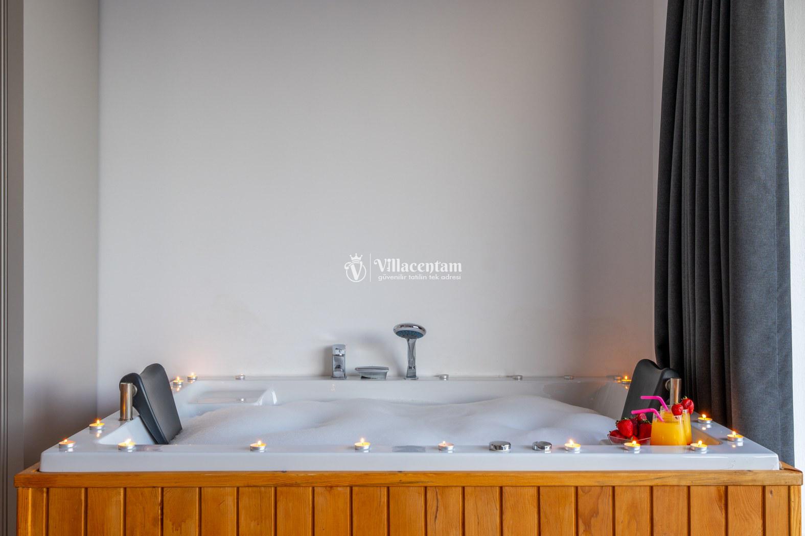 *Villalarda sıcak su için güneş enerjili su ısıtma sistemleri kullanılmaktadır. Çok yoğun sıcak su kullanımında, yoğunluğa ve su tankının büyüklüğüne bağlı olarak su tankında sıcak su tükenebilmekte ve tekrar suyun ısınması için belirli bir süre geçmesi gerekmektedir. Bu not sadece bu villa ile ilgili değil, tüm villalarımız için geçerli bir durumdur.