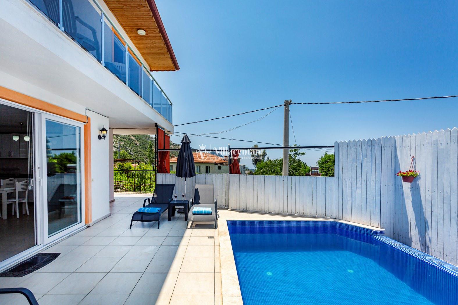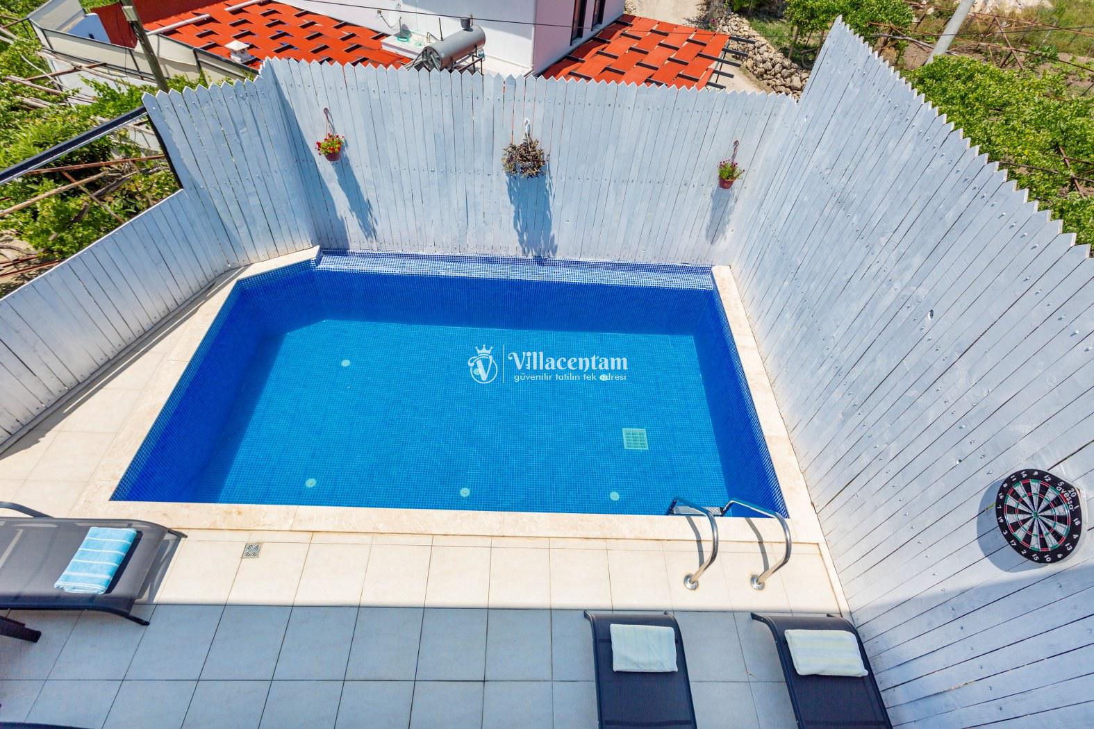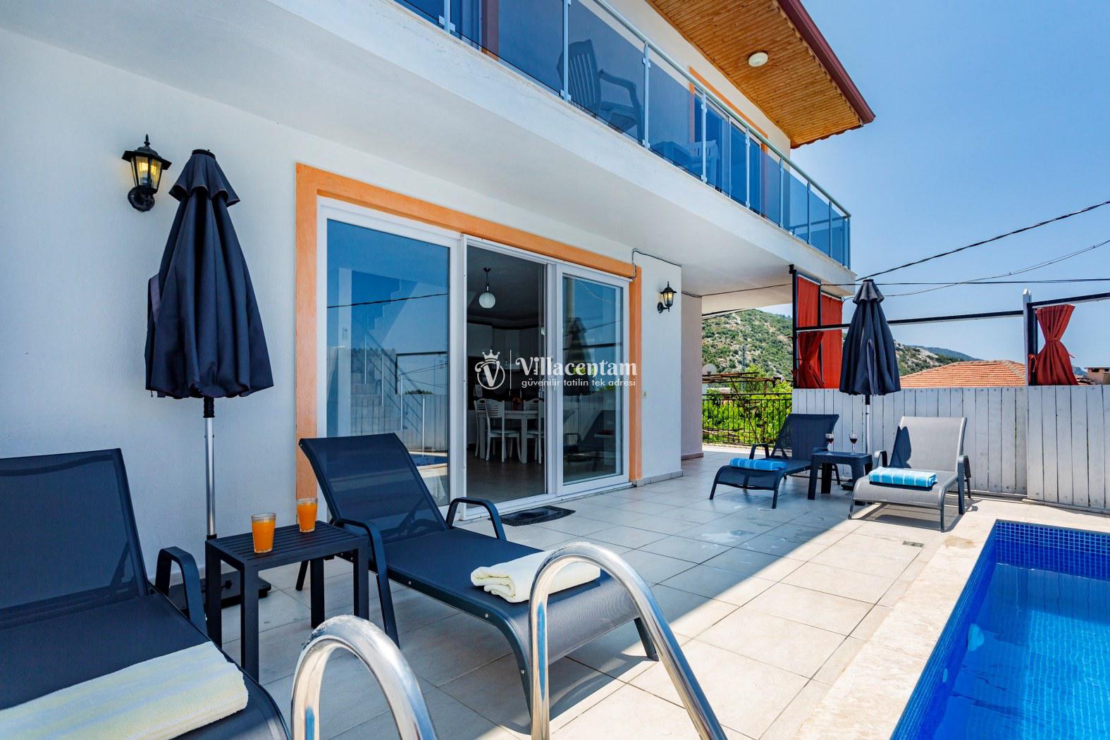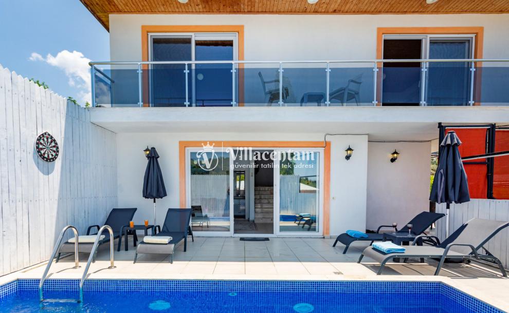 Kalkan İslamlar köyünde konumlanmakta olan panoramik deniz ve yemyeşil doğa manzaralı kiralık villalarımız arasında yer almaktadır. Şık ve konforlu bir şekilde dekore edilen yazlık villamızda 2 adet yatak odası bulunmakta olup, 4 kişi konaklayabilmektedir. Süit yatak odasının 1 tanesinin içerisinde jakuzi yer almaktadır. Havuz ve havuz terası korunaklı olan yazlık villamız dışarıdan gözükmemektedir. Her bir inca detayın düşünüldüğü villamızın balkonunda eğlenceli dakilar geçirebileceğiniz langırt yer almaktadır. Muhafazakar aileler, balayı çiftleri ve çekirdek aileler gönül rahatlığıyla tercih edebilirler. Sessiz sakin doğal ortamında tüm yılın vermiş olduğu yorgunluğu atacağınız ve sevdiklerinizle dilediğinizce hoş vakit geçirebileceğiniz muhteşem bir yazlık villada tatil için Villa Emin' i tercih edebilirsiniz.