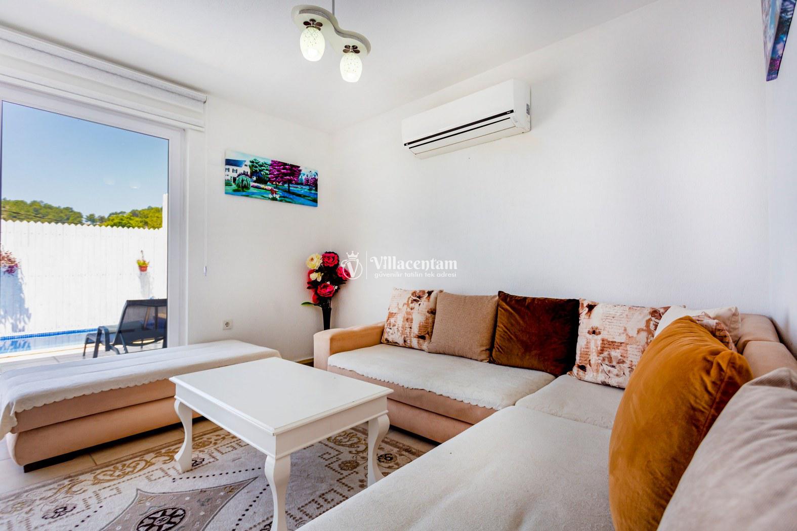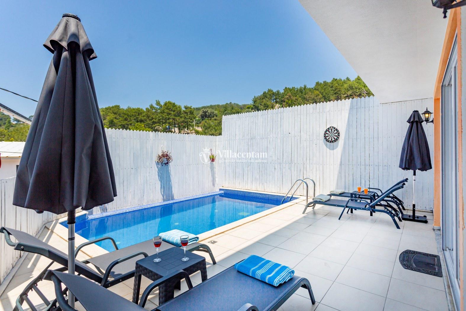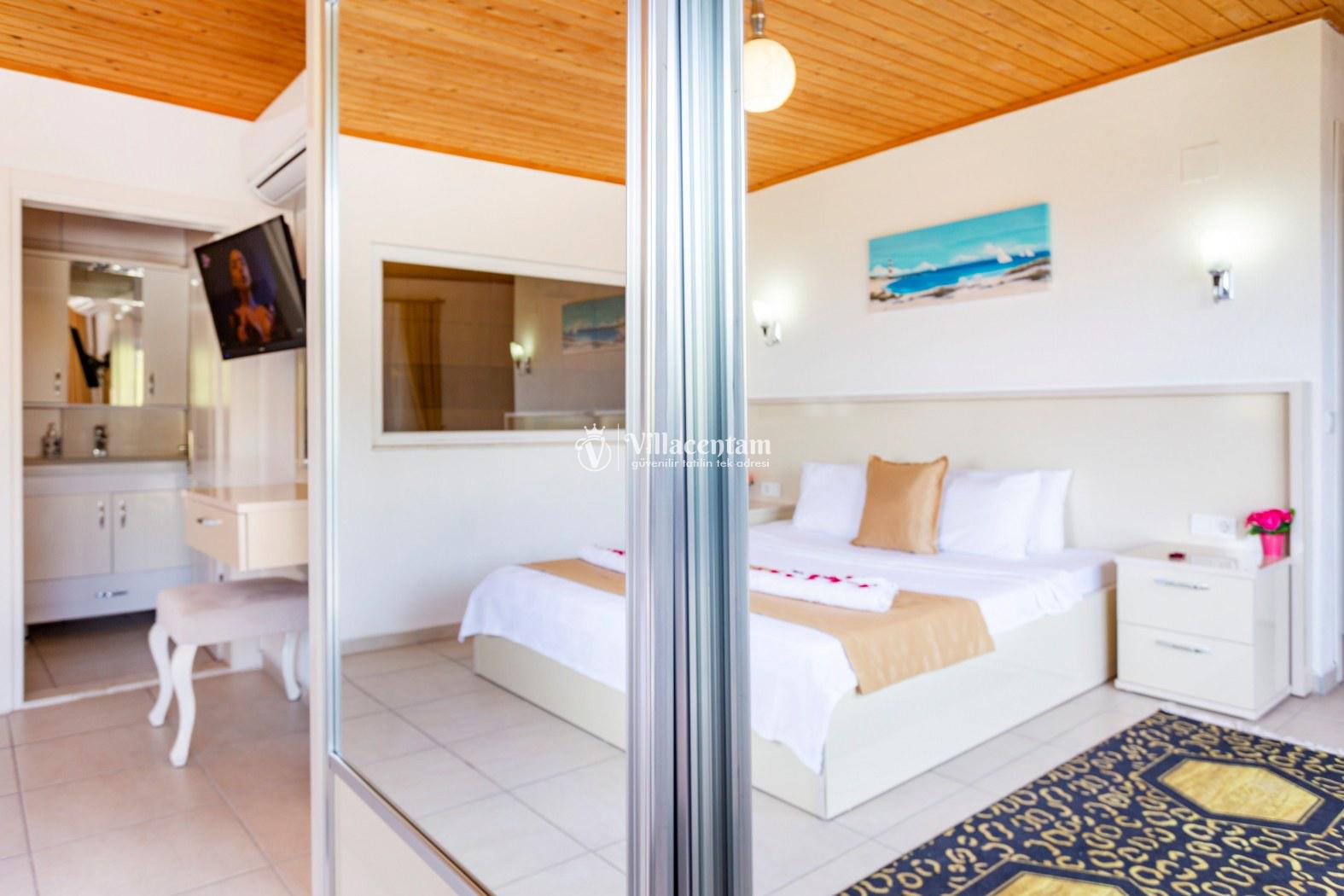 Kalkan İslamlar köyünde konumlanmakta olan panoramik deniz ve yemyeşil doğa manzaralı kiralık villalarımız arasında yer almaktadır. Şık ve konforlu bir şekilde dekore edilen yazlık villamızda 2 adet yatak odası bulunmakta olup, 4 kişi konaklayabilmektedir. Süit yatak odasının 1 tanesinin içerisinde jakuzi yer almaktadır. Havuz ve havuz terası korunaklı olan yazlık villamız dışarıdan gözükmemektedir. Her bir inca detayın düşünüldüğü villamızın balkonunda eğlenceli dakilar geçirebileceğiniz langırt yer almaktadır. Muhafazakar aileler, balayı çiftleri ve çekirdek aileler gönül rahatlığıyla tercih edebilirler. Sessiz sakin doğal ortamında tüm yılın vermiş olduğu yorgunluğu atacağınız ve sevdiklerinizle dilediğinizce hoş vakit geçirebileceğiniz muhteşem bir yazlık villada tatil için Villa Emin' i tercih edebilirsiniz.