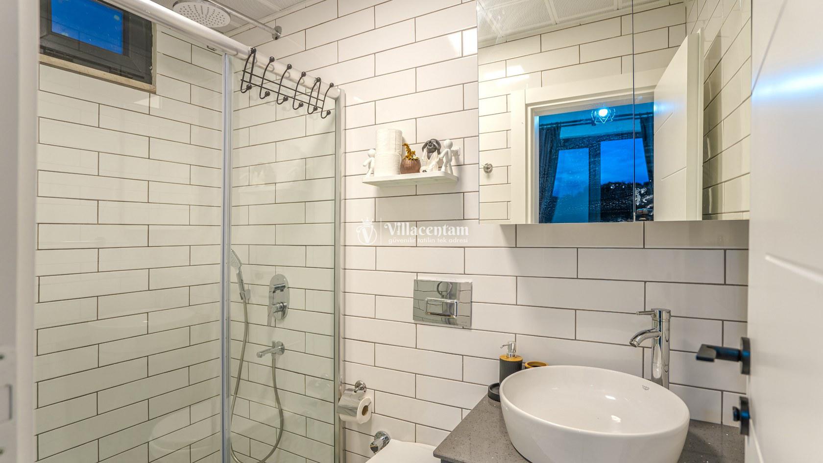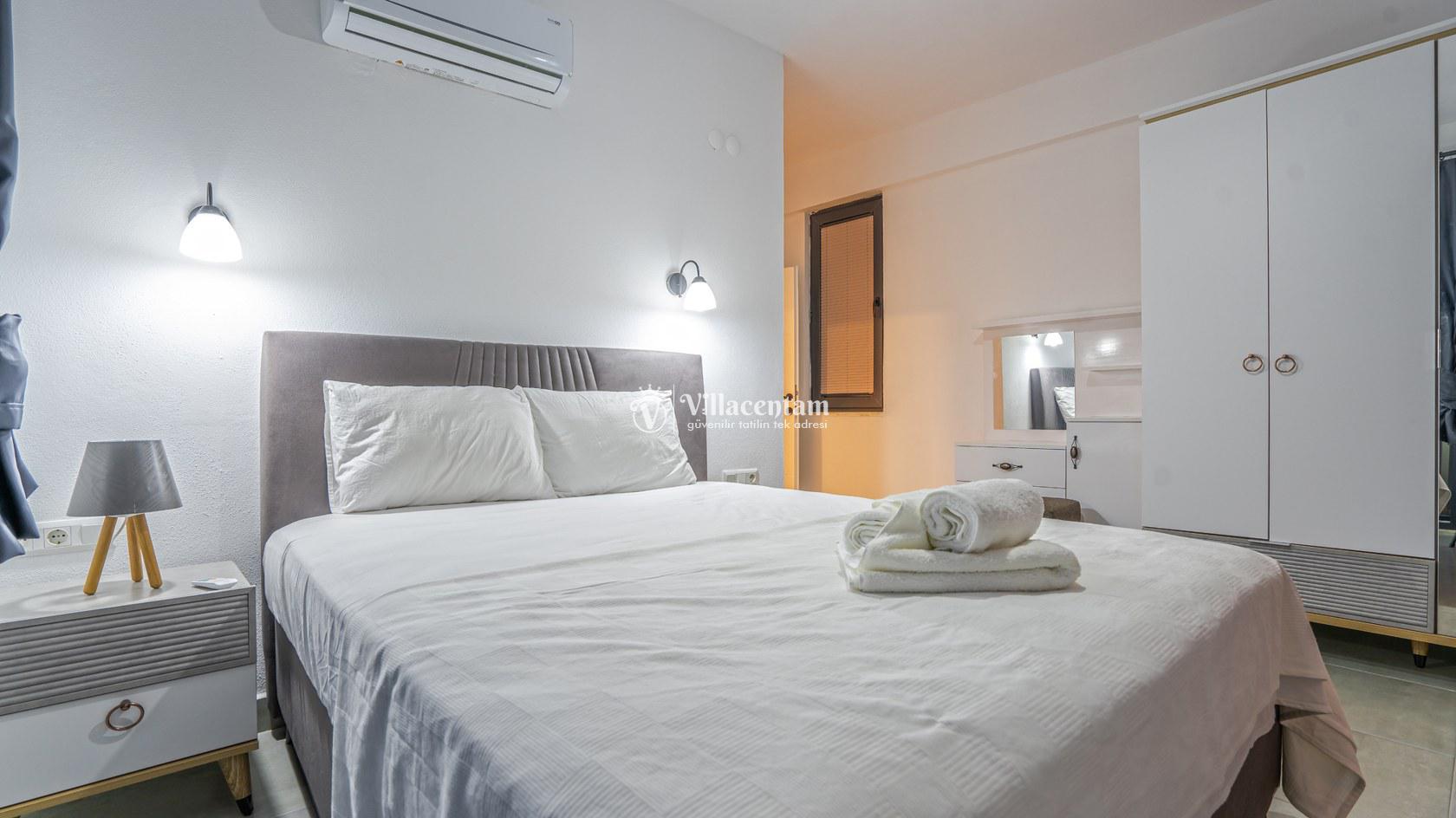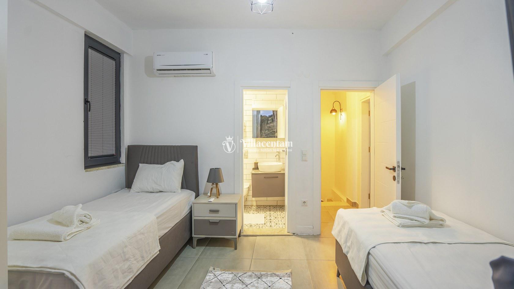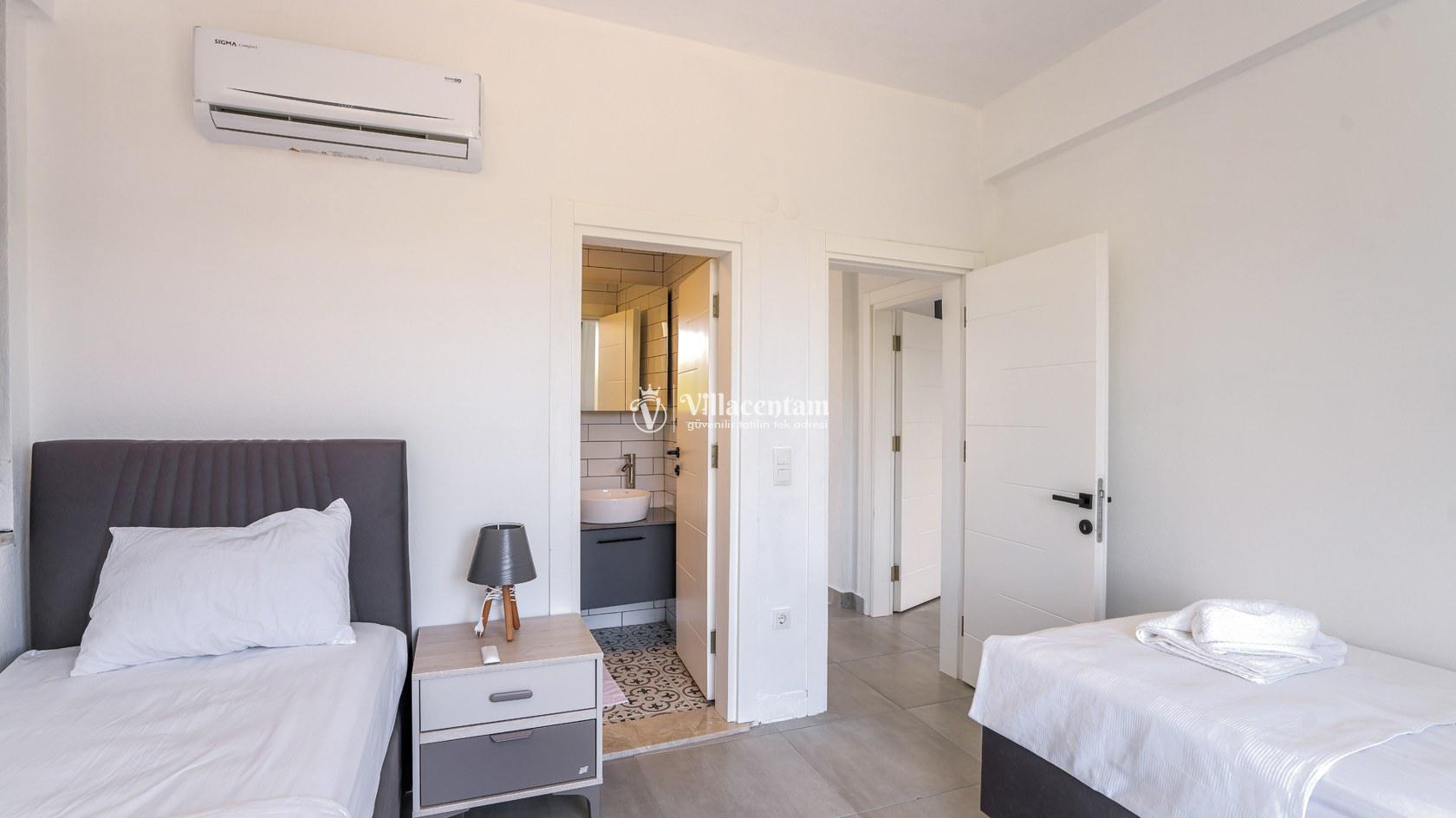 *Villalarda sıcak su için güneş enerjili su ısıtma sistemleri kullanılmaktadır. Çok yoğun sıcak su kullanımında, yoğunluğa ve su tankının büyüklüğüne bağlı olarak su tankında sıcak su tükenebilmekte ve tekrar suyun ısınması için belirli bir süre geçmesi gerekmektedir. Bu not sadece bu villa ile ilgili değil, tüm villalarımız için geçerli bir durumdur