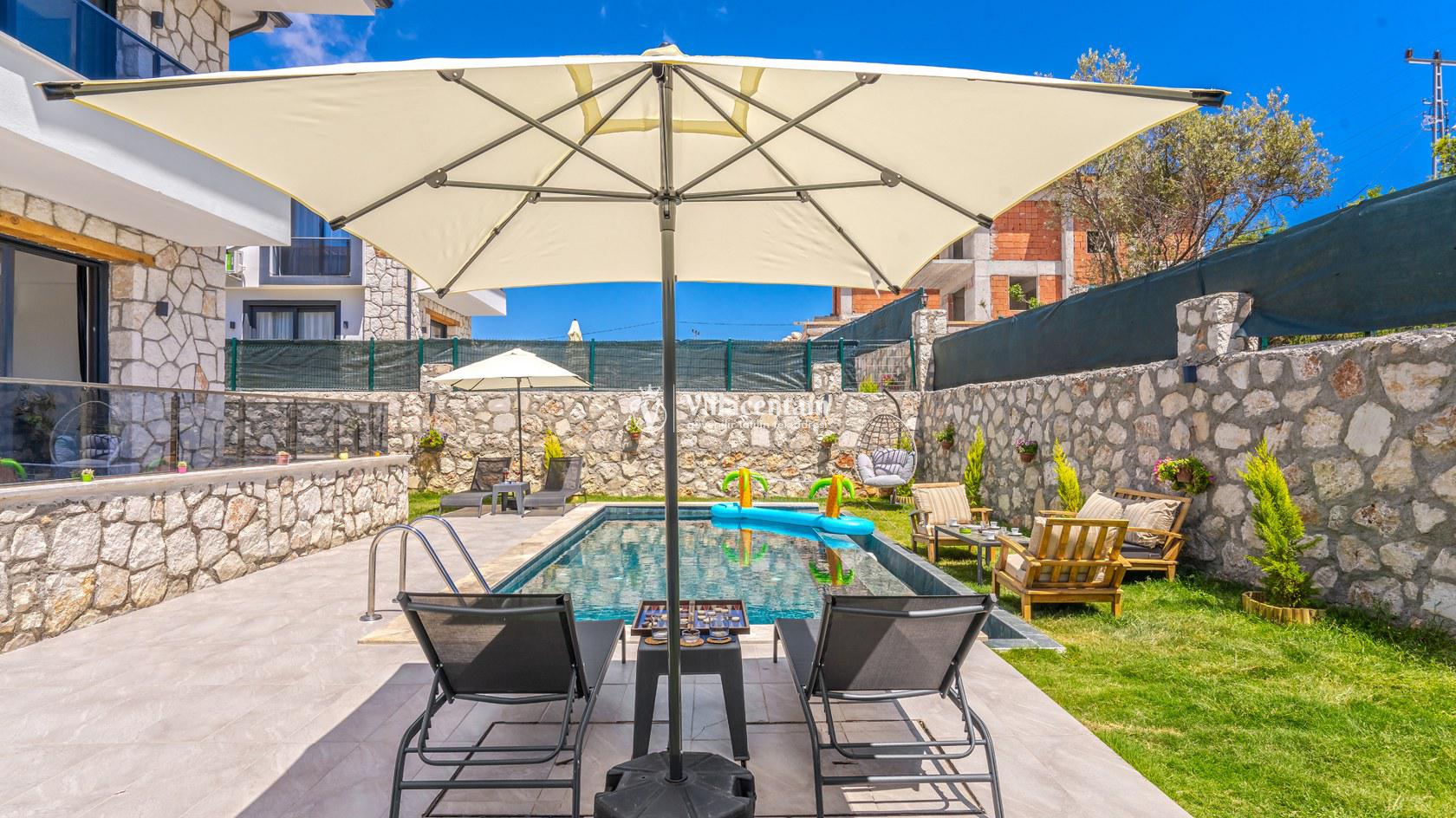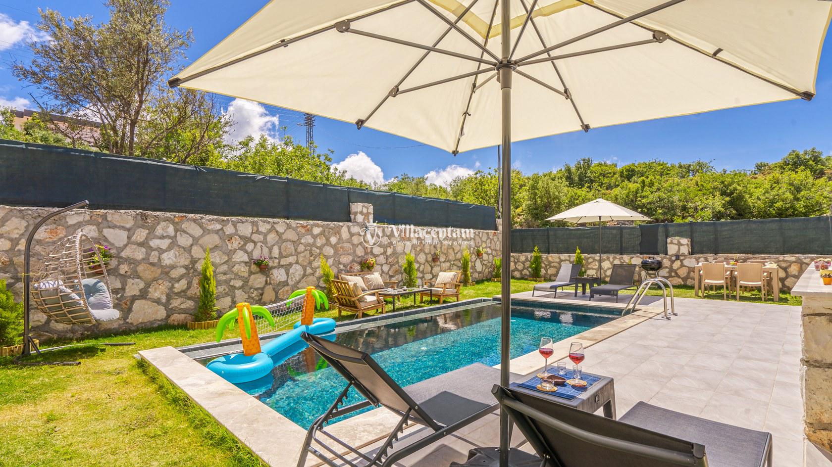 Villa Erdem 1, Kaş Çukurbağ mevkiinde konumlanan, doğa manzarası ve geniş bahçesiyle öne çıkan özel bir tatil villasıdır. 2 yatak odası ve 4 kişilik konaklama kapasitesiyle özellikle çekirdek aileler ve küçük arkadaş grupları için konforlu bir tatil imkânı sunar. Özel ve korunaklı yüzme havuzu, geniş bahçesi, masa tenisi ve salıncağı ile hem dinlenmek hem de keyifli vakit geçirmek isteyen misafirler için ideal bir atmosfer sağlar. Modern açık mutfağı, havuz terasına açılan ferah salonu ve özenle düşünülmüş donanımları sayesinde huzurlu ve rahat bir konaklama deneyimi sunar.